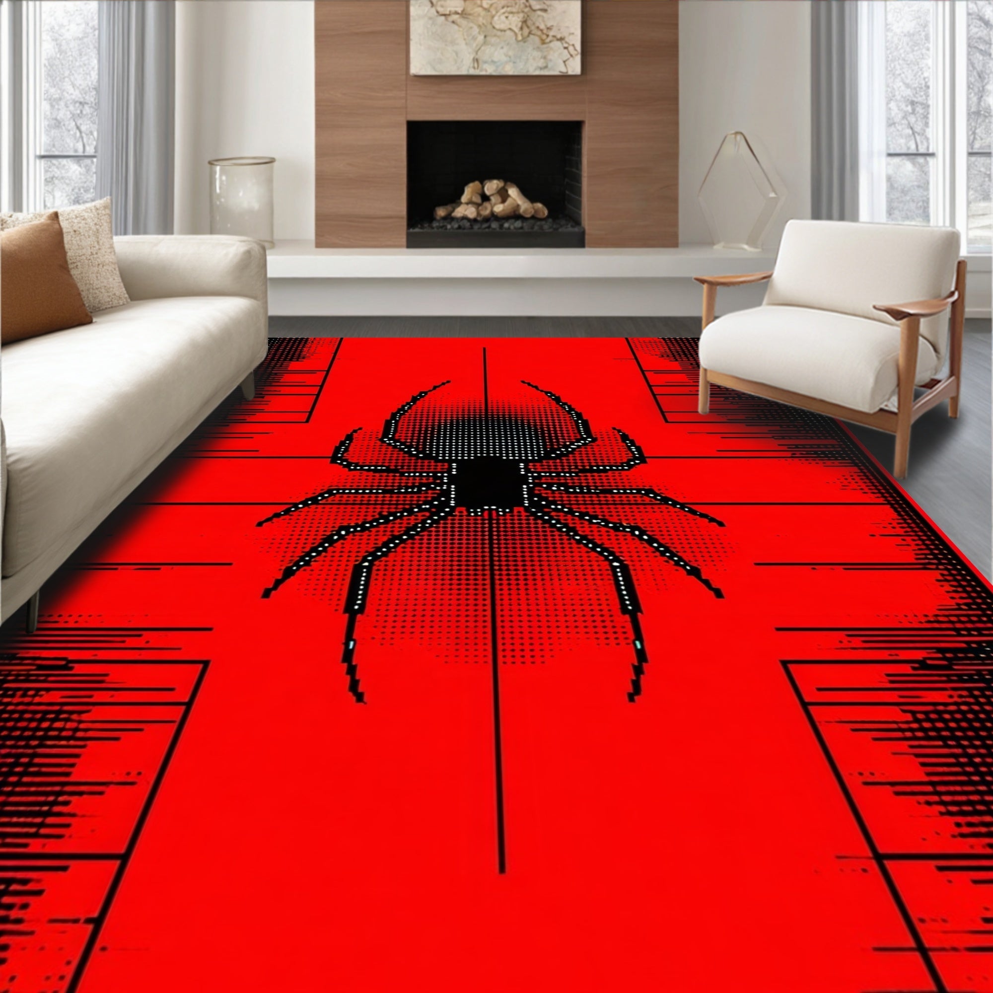 Flatwoven High Traffic Area Rug, Charming Bold Arachnid Aesthetic, Non Slip, Stain Resistant, Washable Area Rugs for Living Room, Bedroom (Red) Overview: