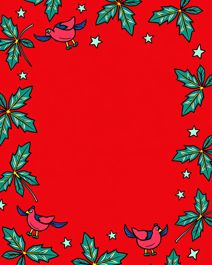 Charming Cardinal Birds with Holly Berry and Starry Sky Motif(Red)