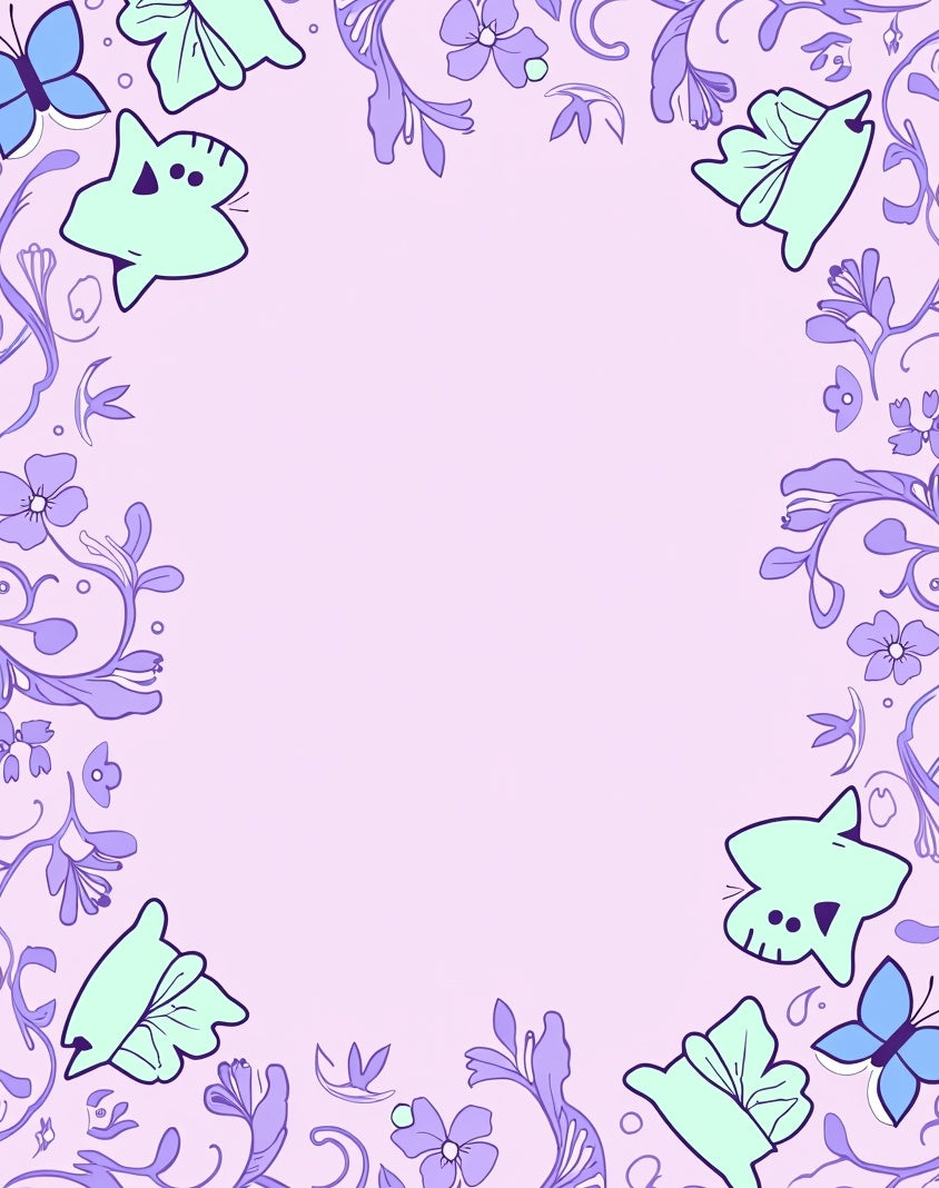 Charming Cartoon Cats Chasing Butterflies with Swirling Floral Vines(Pink)