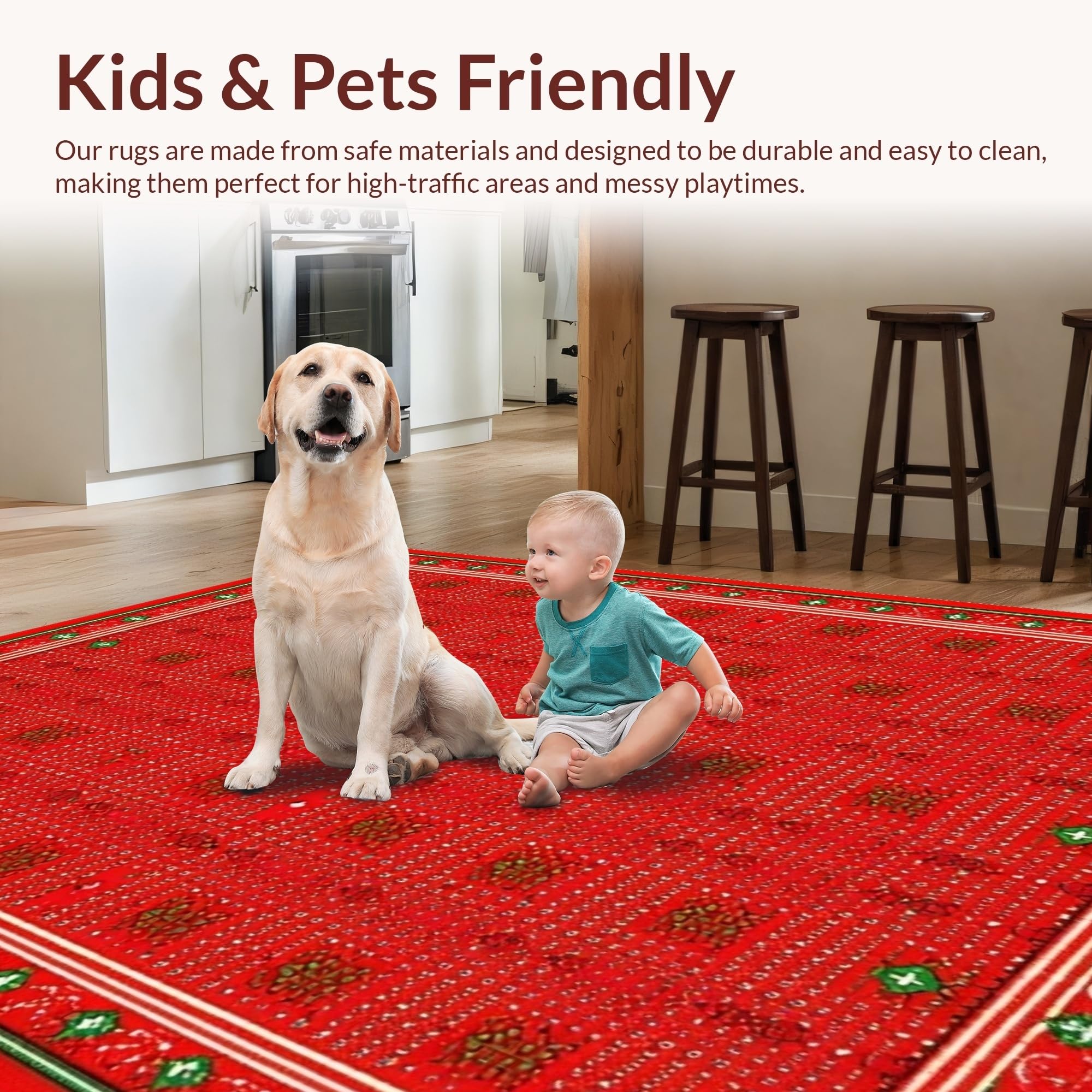 Ultra Soft Area Rug, Non Slip, Stain Resistant, Washable Area Rugs for Living Room, Bedroom, Charming Cartoonish Produce Imagery(Red) Overview:
