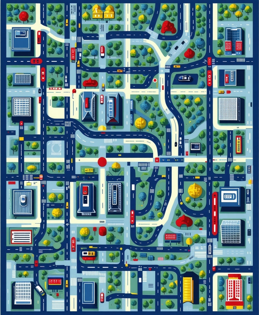 Flatwoven High Traffic Area Rug, Charming Centric Roadway Theme, Non Slip, Stain Resistant, Washable Area Rugs for Living Room, Bedroom (Blue) Overview:
