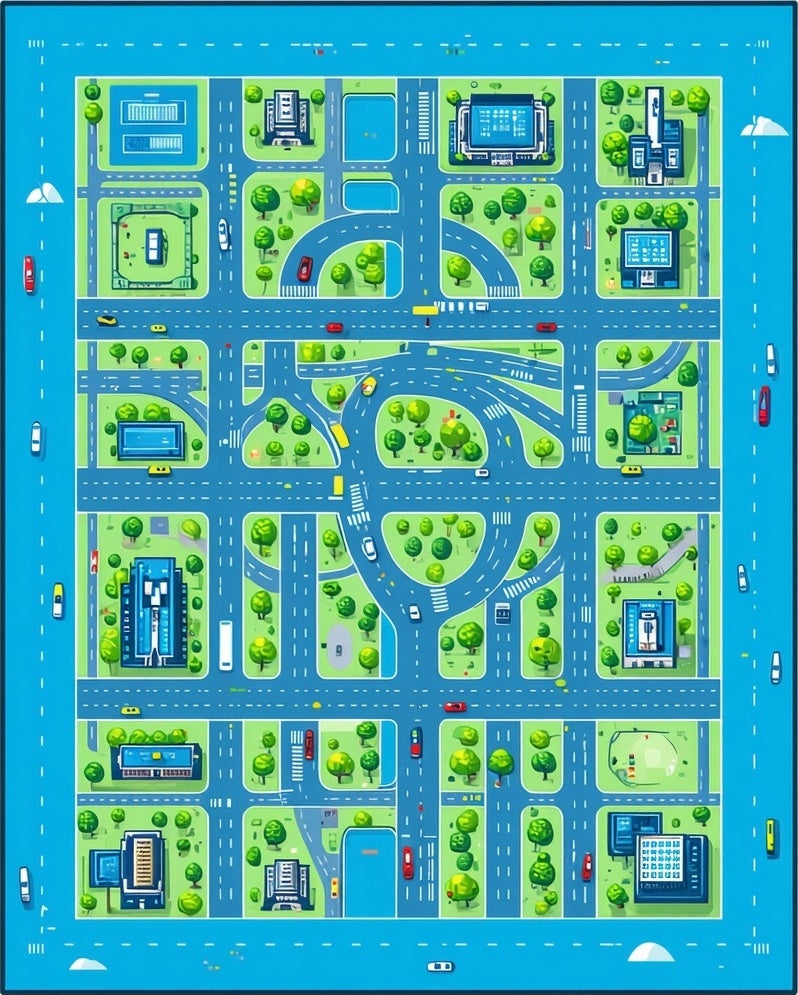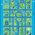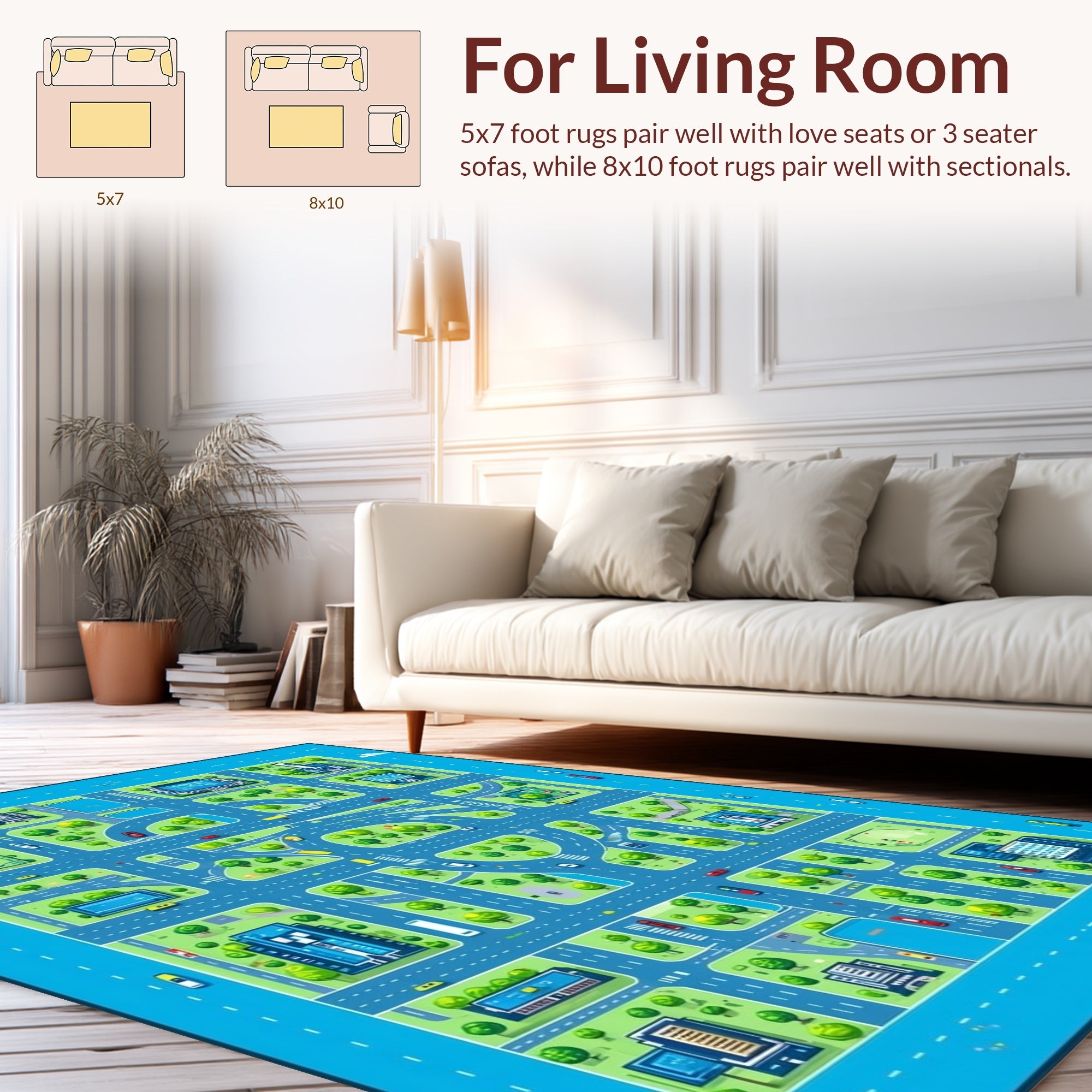 Flatwoven High Traffic Area Rug, Charming Friendly Urban Map Design, Non Slip, Stain Resistant, Washable Area Rugs for Living Room, Bedroom (Blue) Overview: