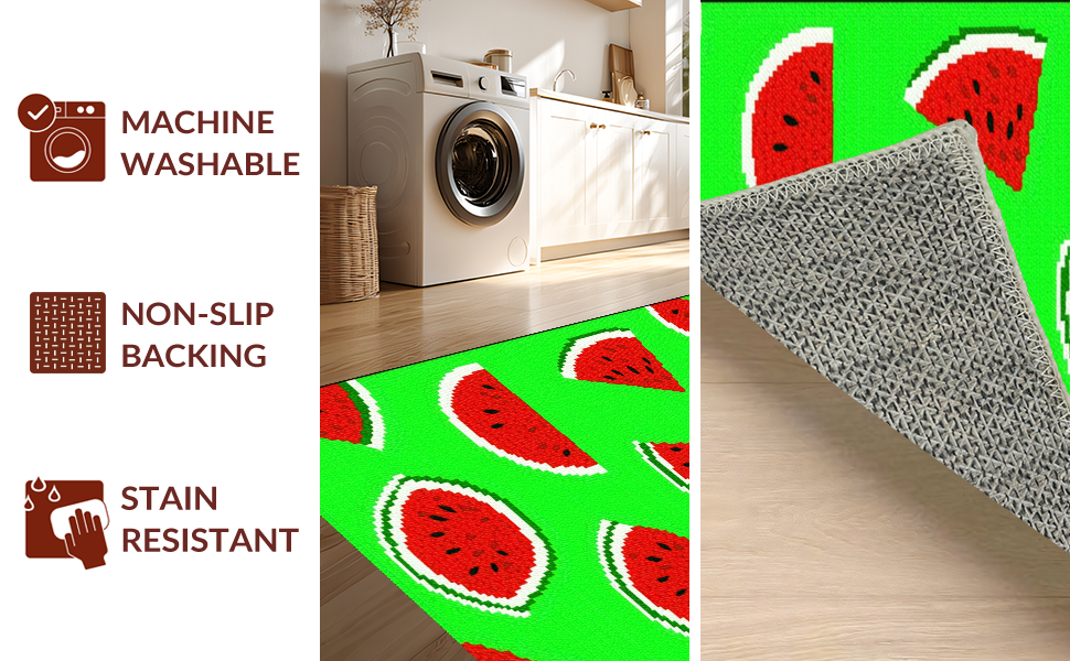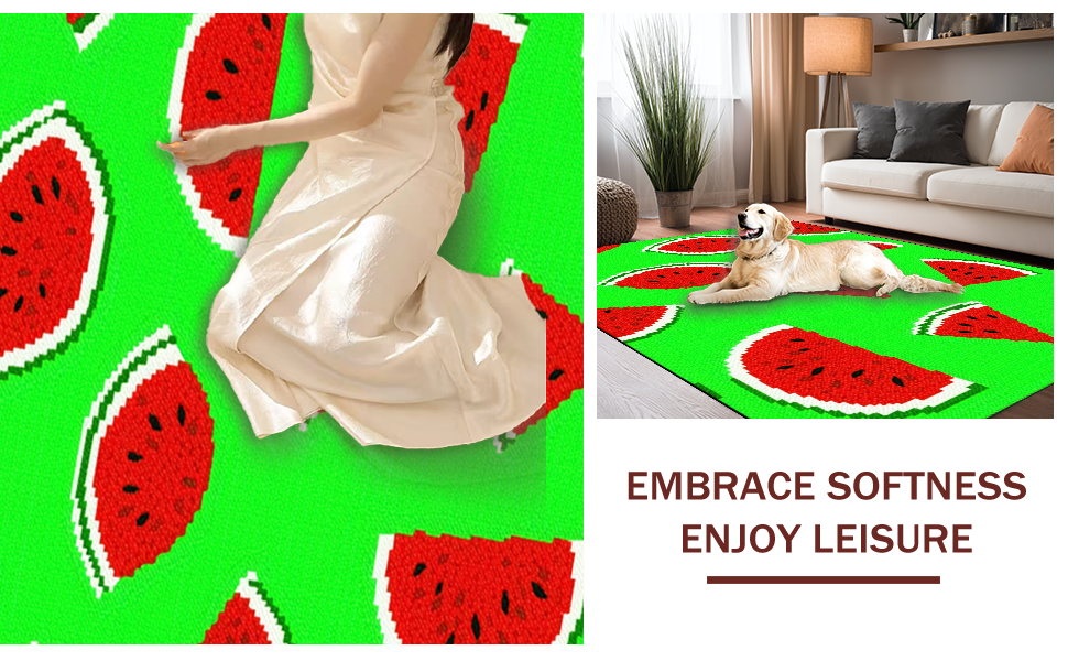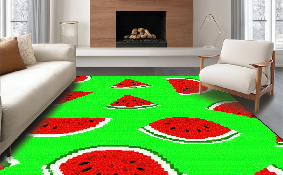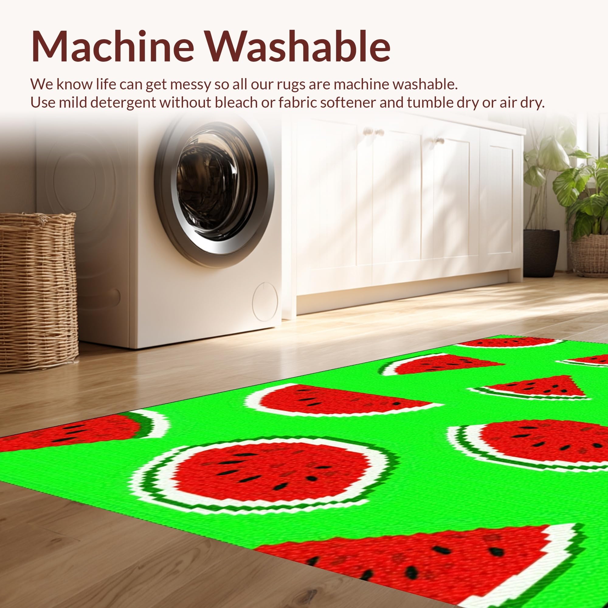 Ultra Soft Area Rug, Non Slip, Stain Resistant, Washable Area Rugs for Living Room, Bedroom, Charming Childlike Melon Imagery(Green) Overview: