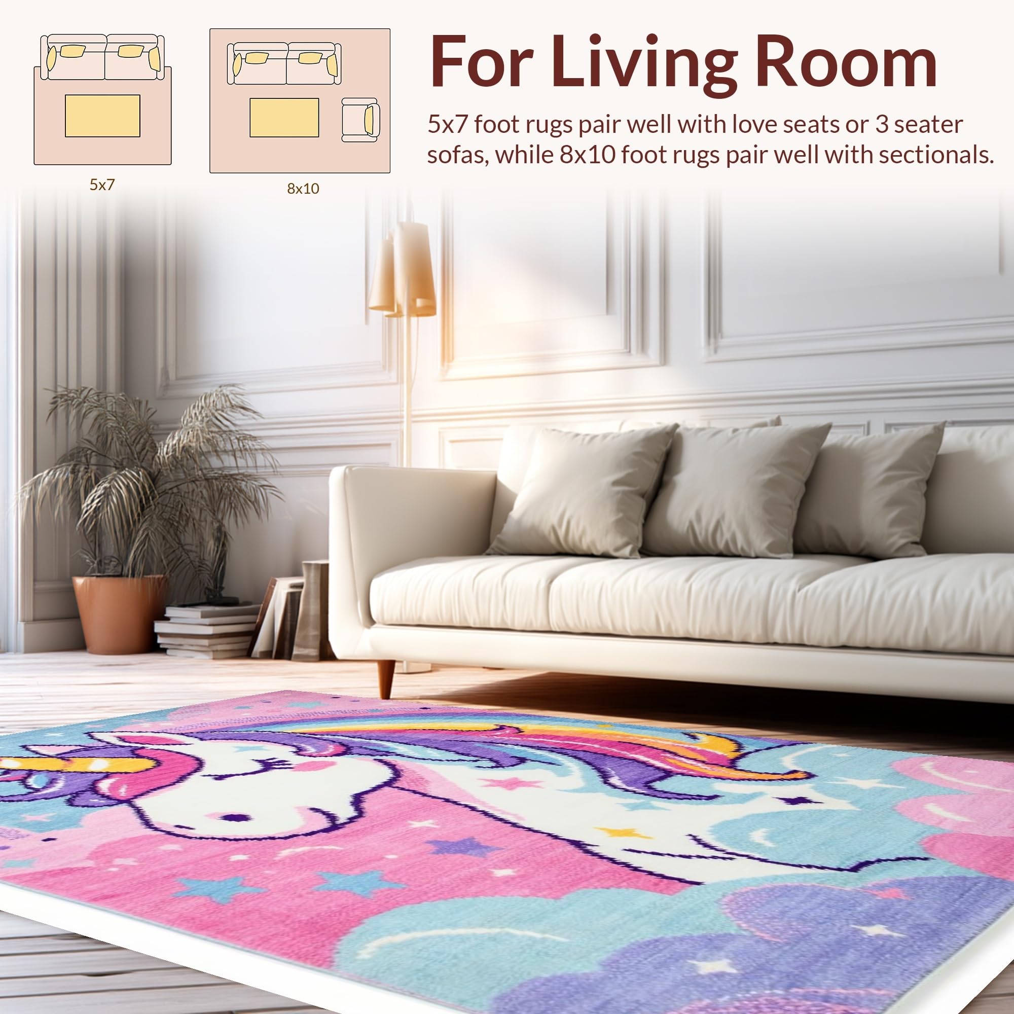 Ultra Soft Area Rug, Non Slip, Stain Resistant, Washable Area Rugs for Living Room, Bedroom, Charming Colorful Dreamy Aesthetic(Pink) Overview: