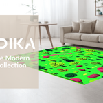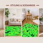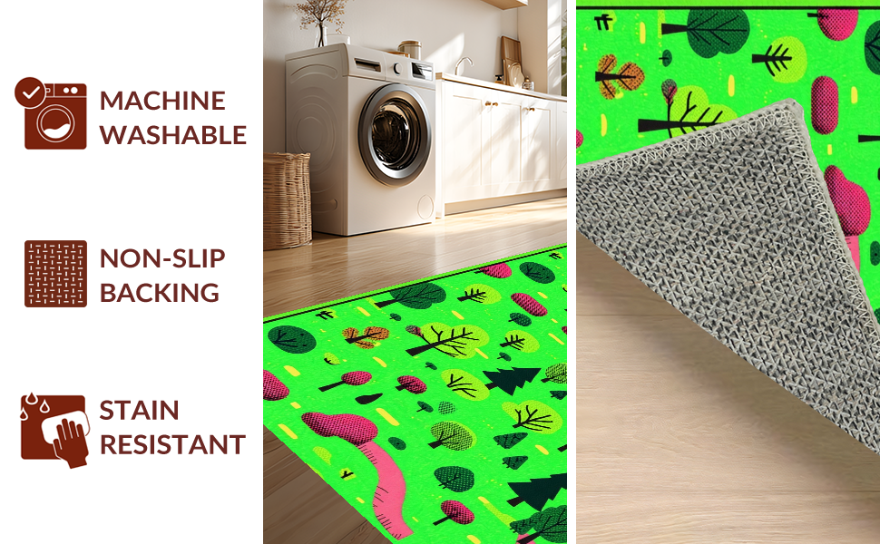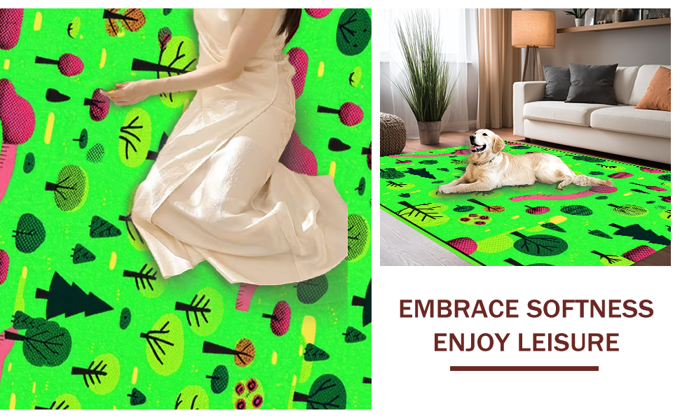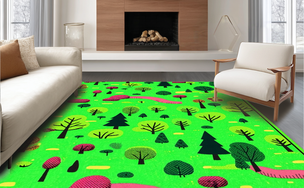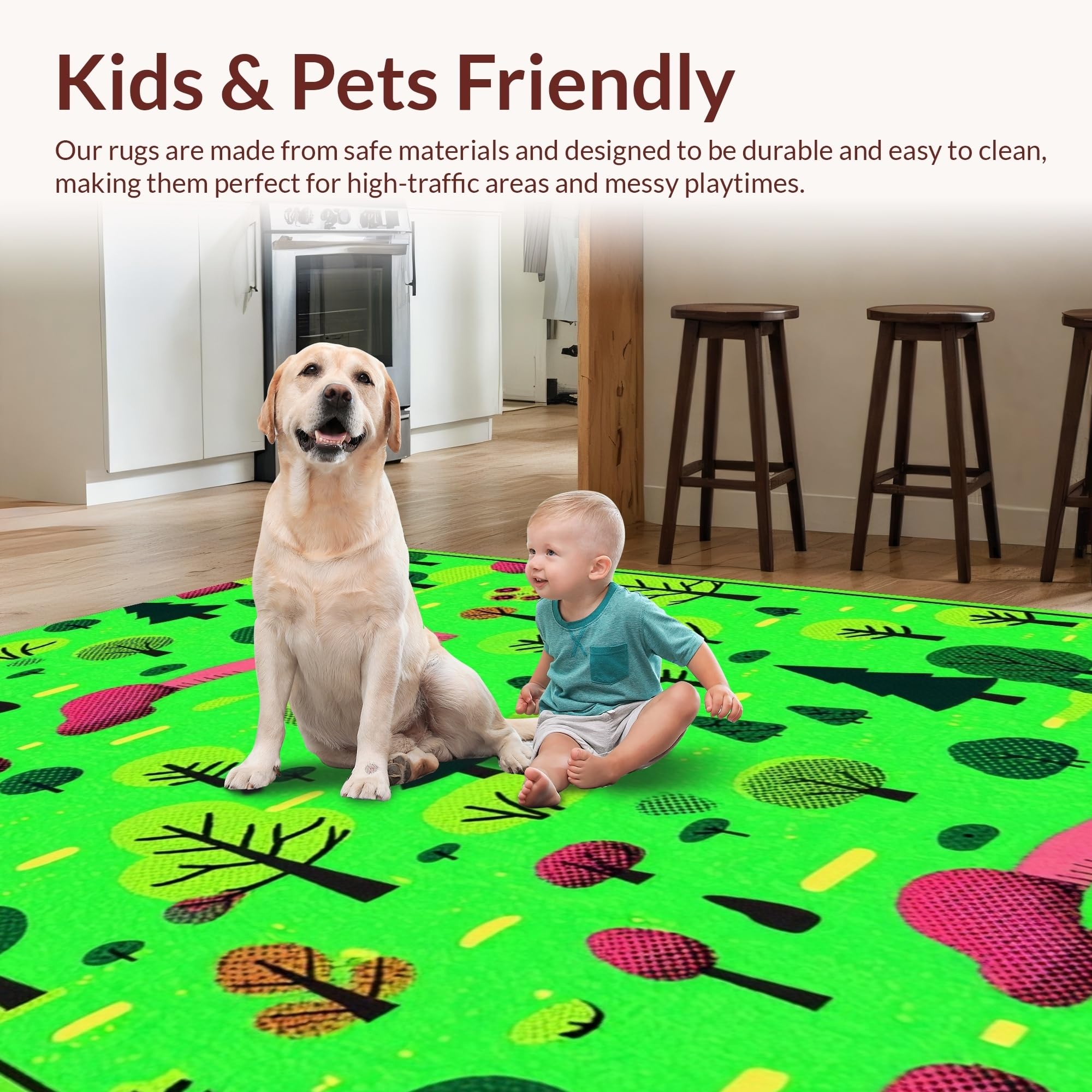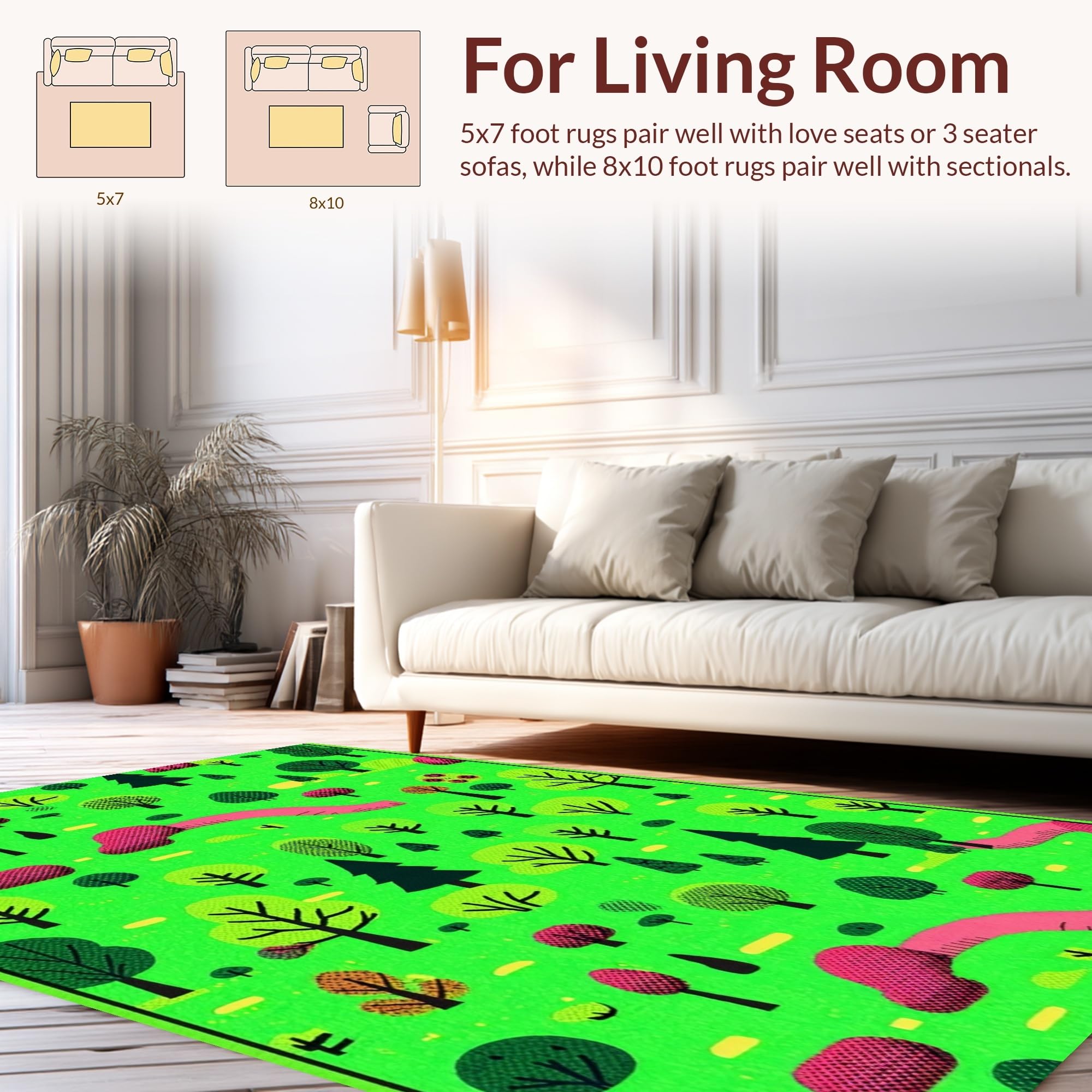 Ultra Soft Area Rug, Non Slip, Stain Resistant, Washable Area Rugs for Living Room, Bedroom, Charming Colorful Wildlife Illustration(Green) Overview: