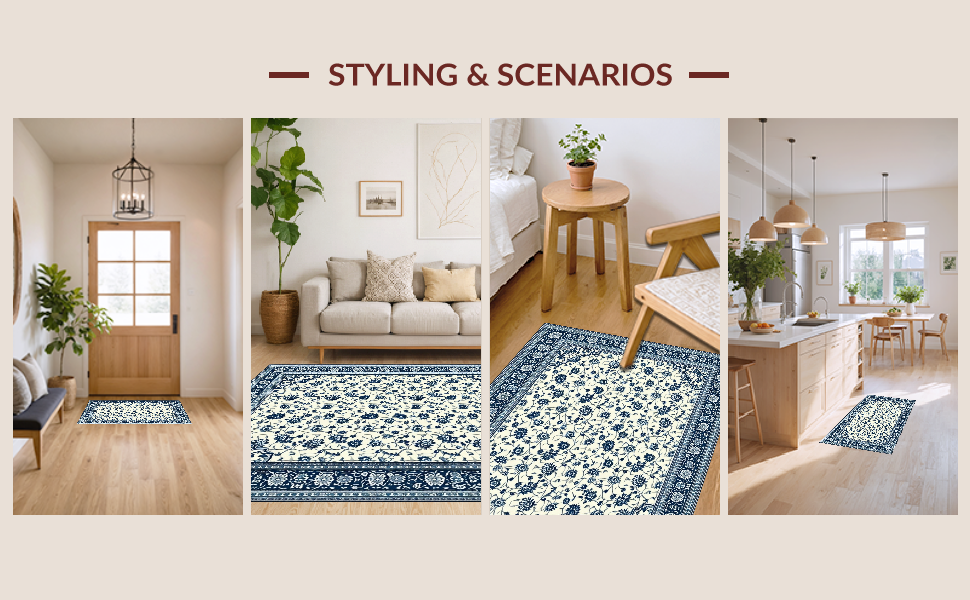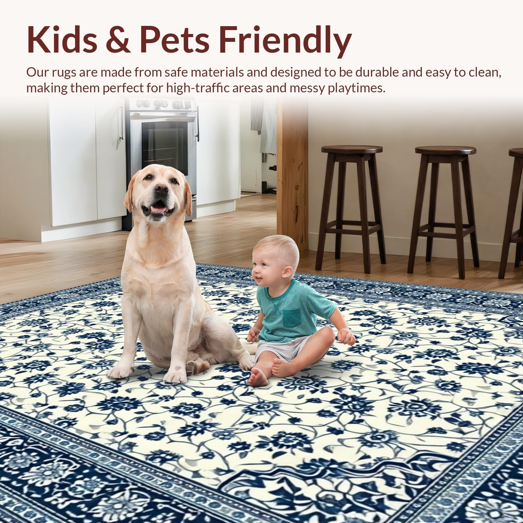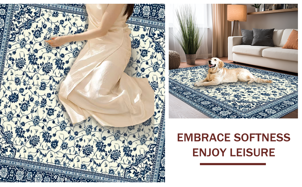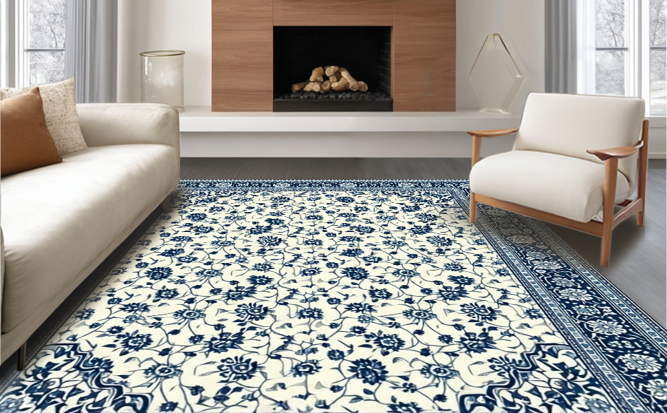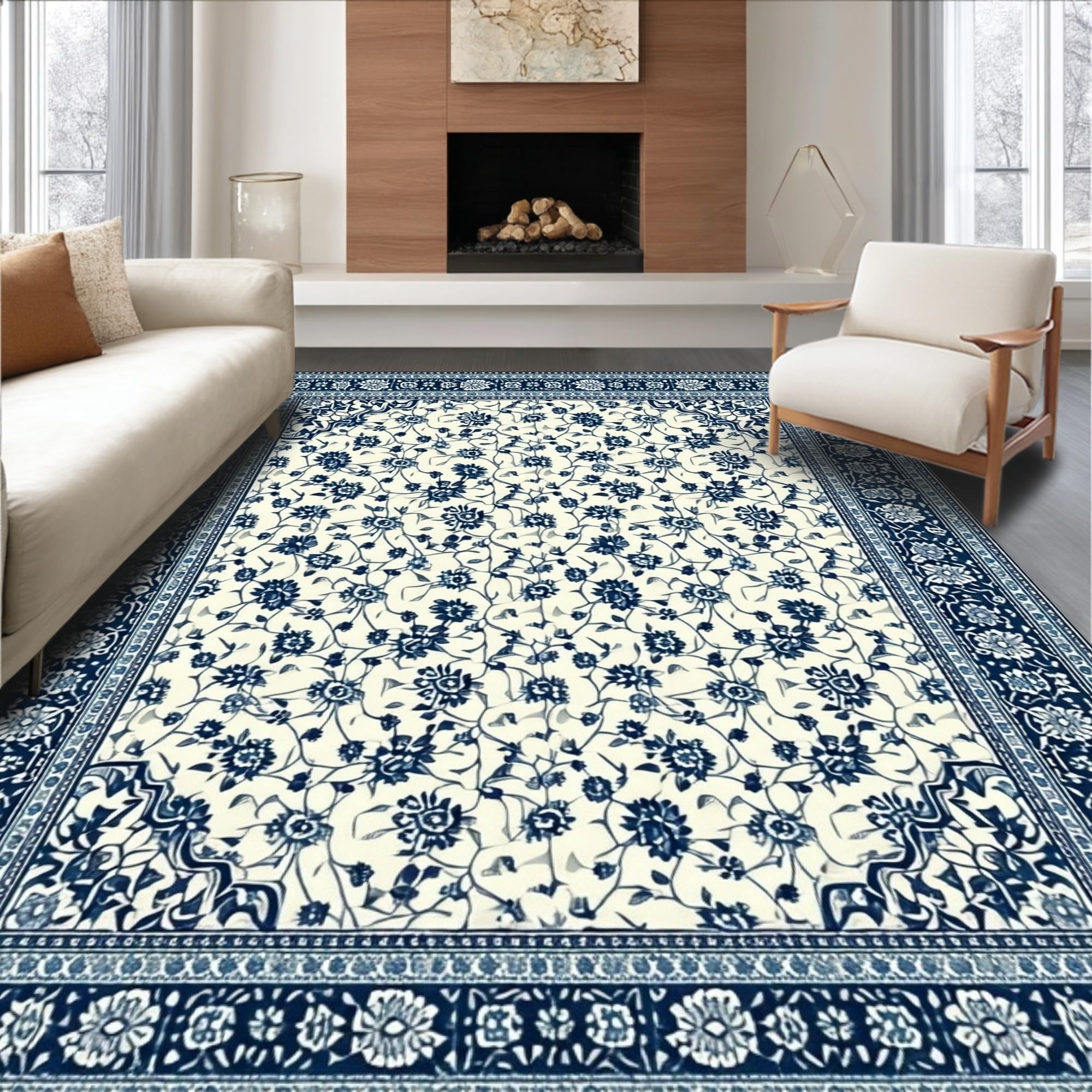 Ultra Soft Area Rug, Non Slip, Stain Resistant, Washable Area Rugs for Living Room, Bedroom, Charming Contemporary Floral Touch(White) Overview: