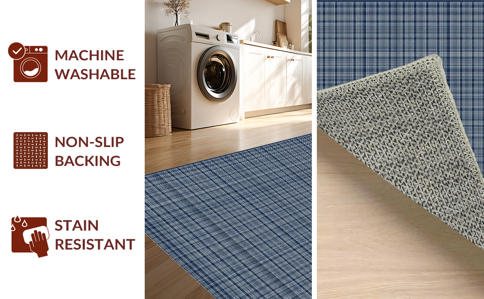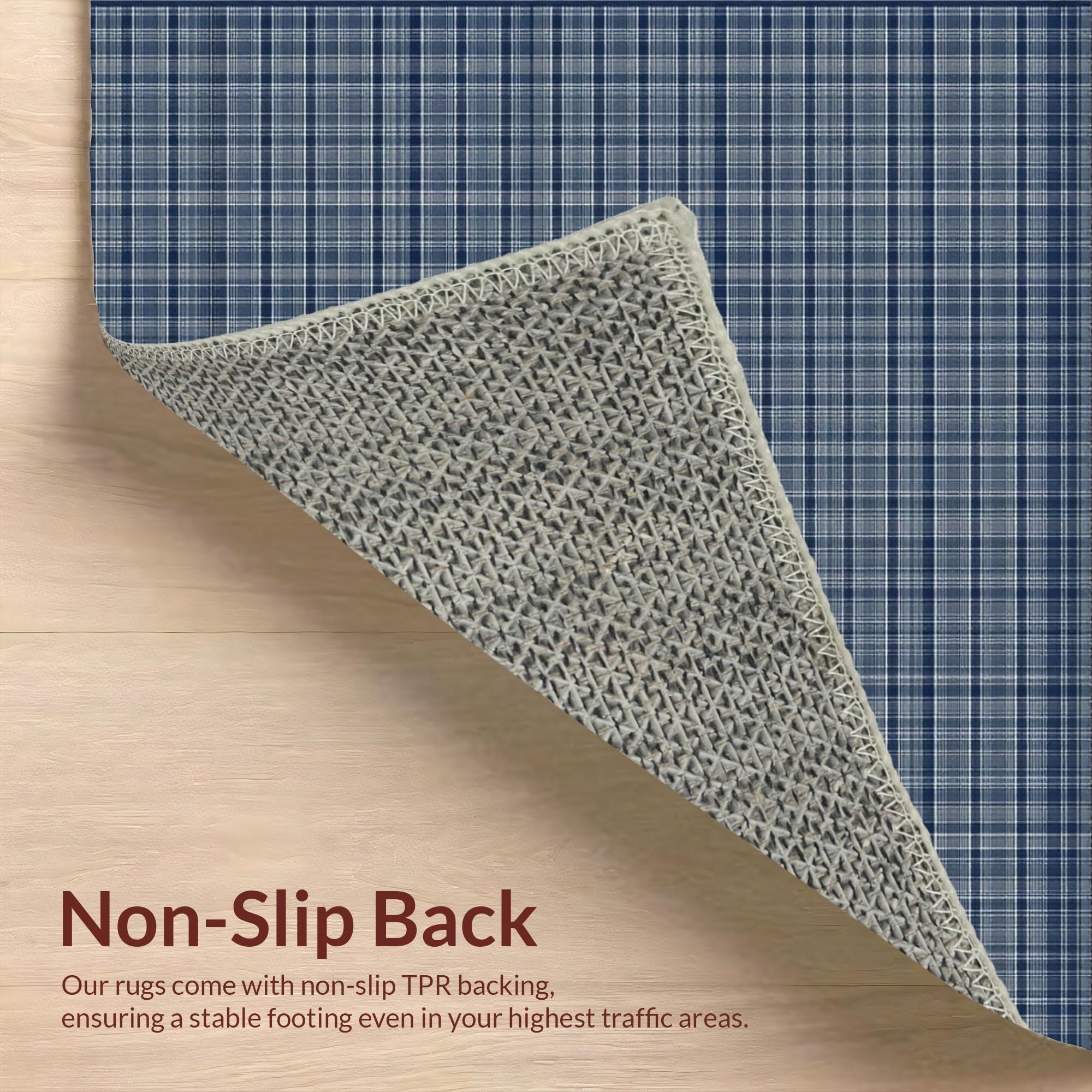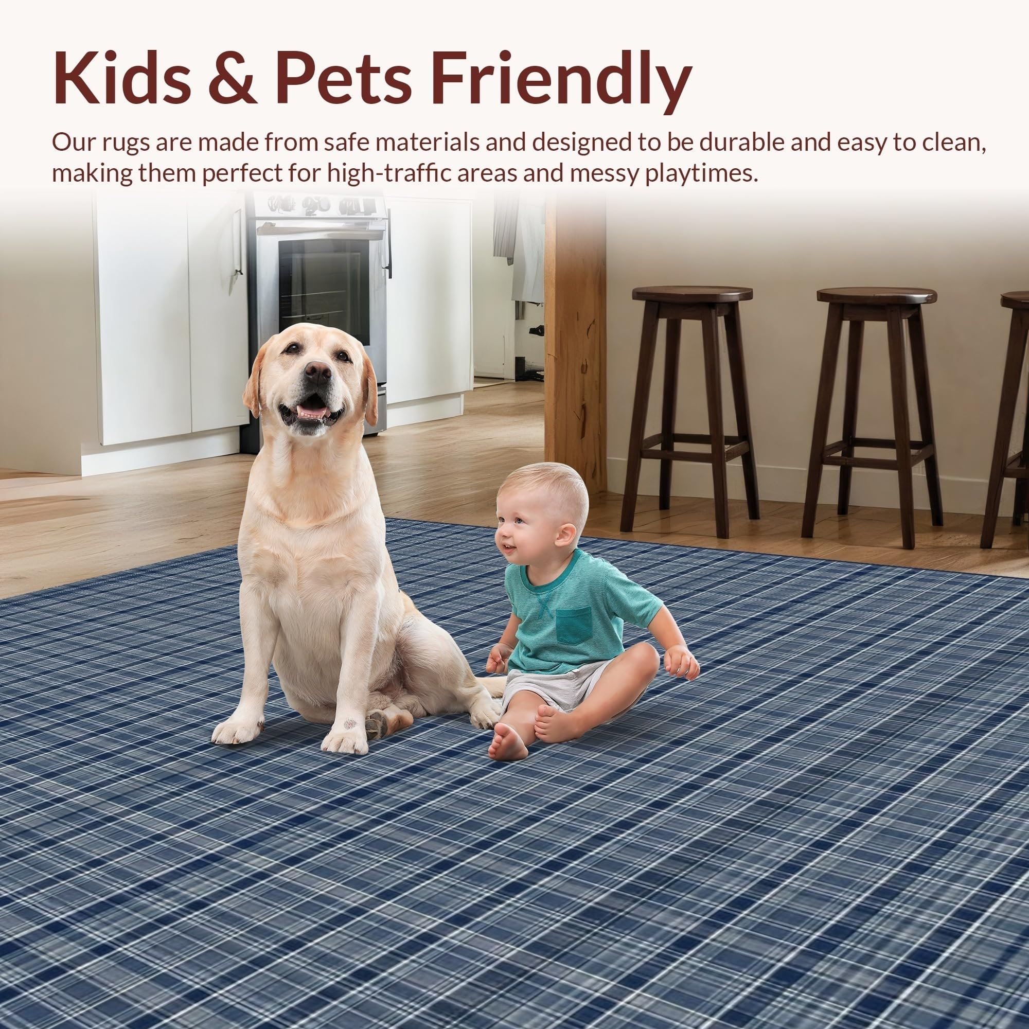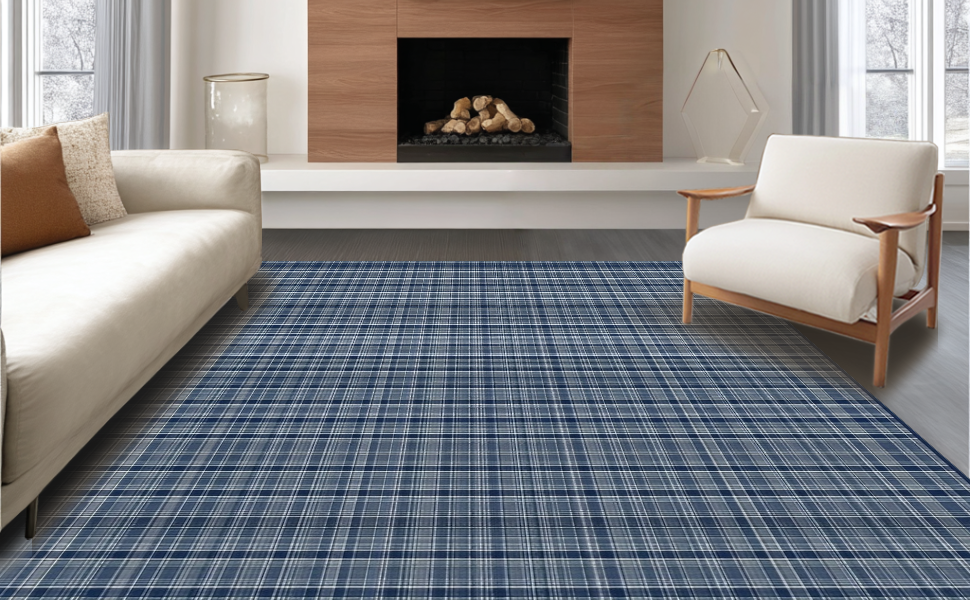 Ultra Soft Area Rug, Non Slip, Stain Resistant, Washable Area Rugs for Living Room, Bedroom, Charming Country Style Gingham Accent(Blue) Overview: