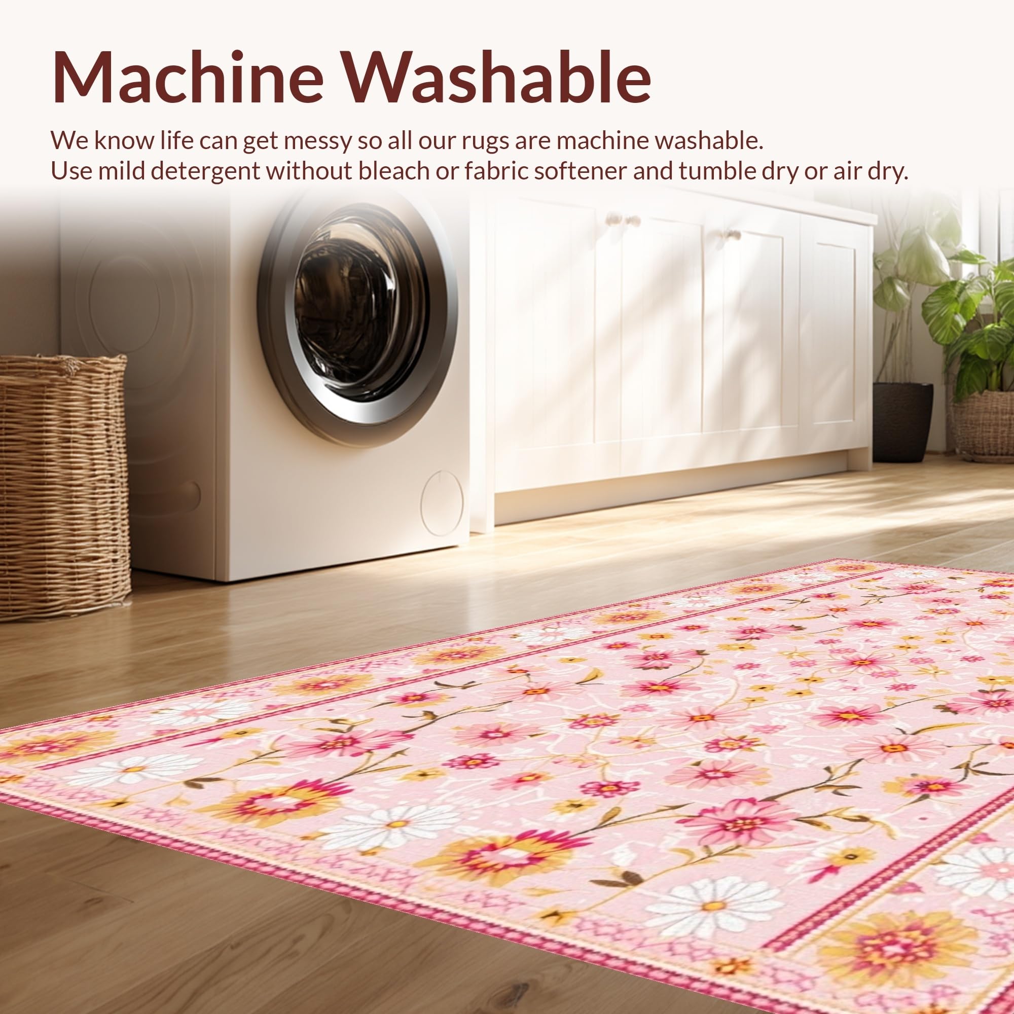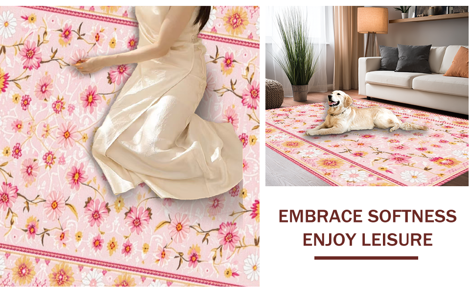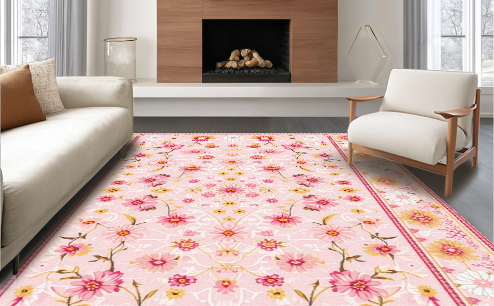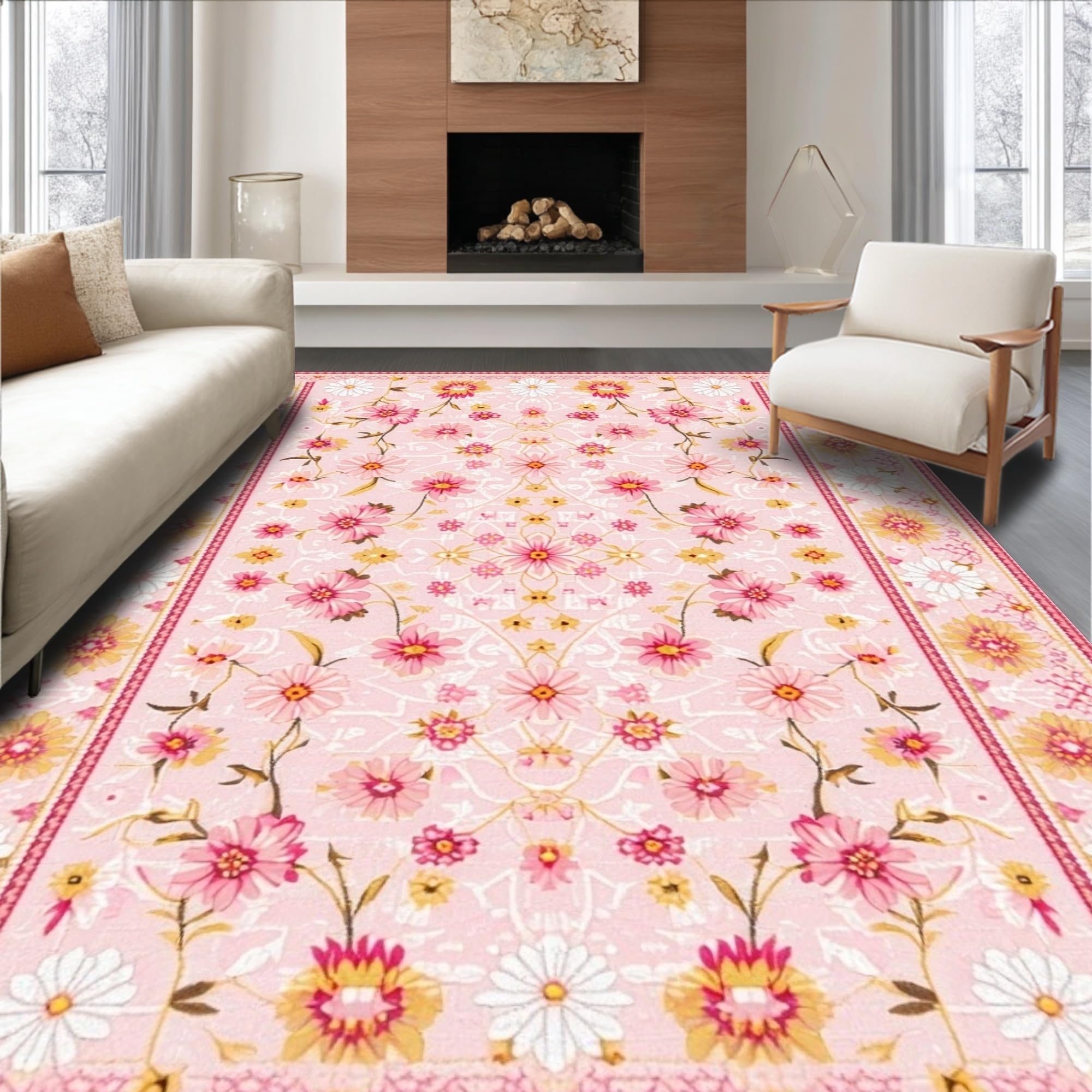 Ultra Soft Area Rug, Non Slip, Stain Resistant, Washable Area Rugs for Living Room, Bedroom, Charming Daisy Floral Delight(Pink) Overview: