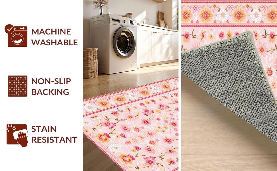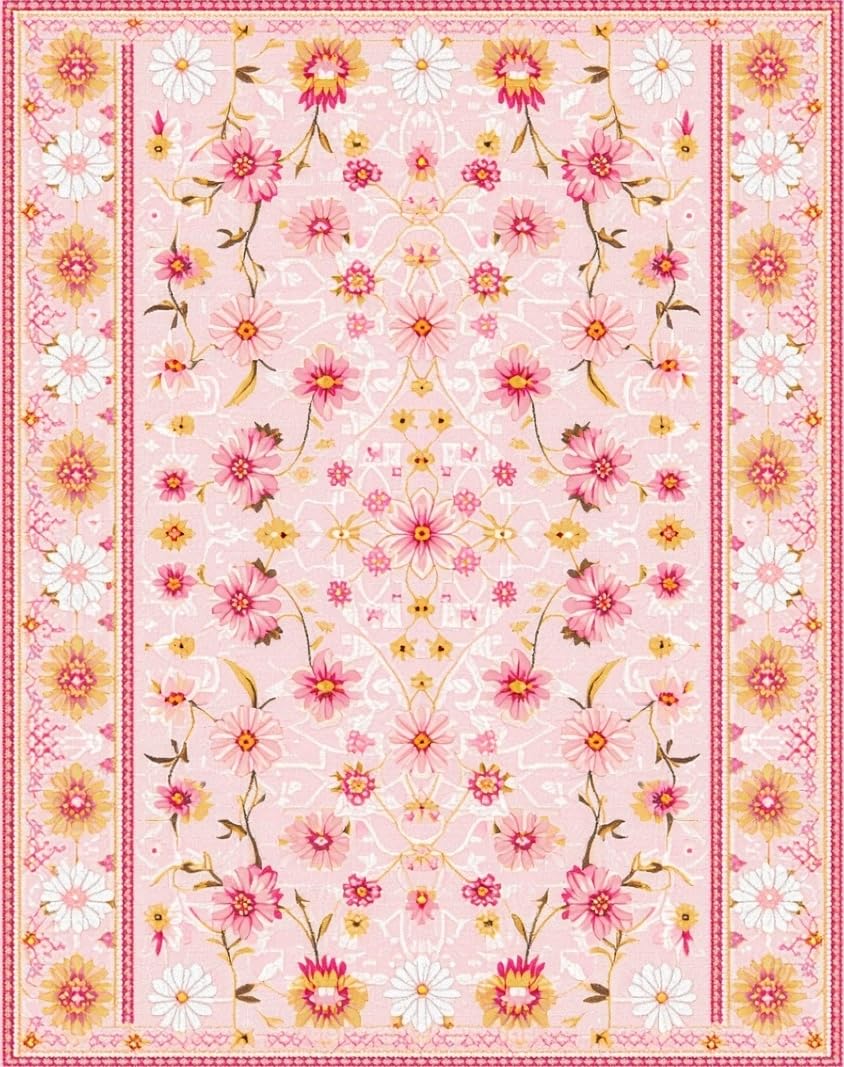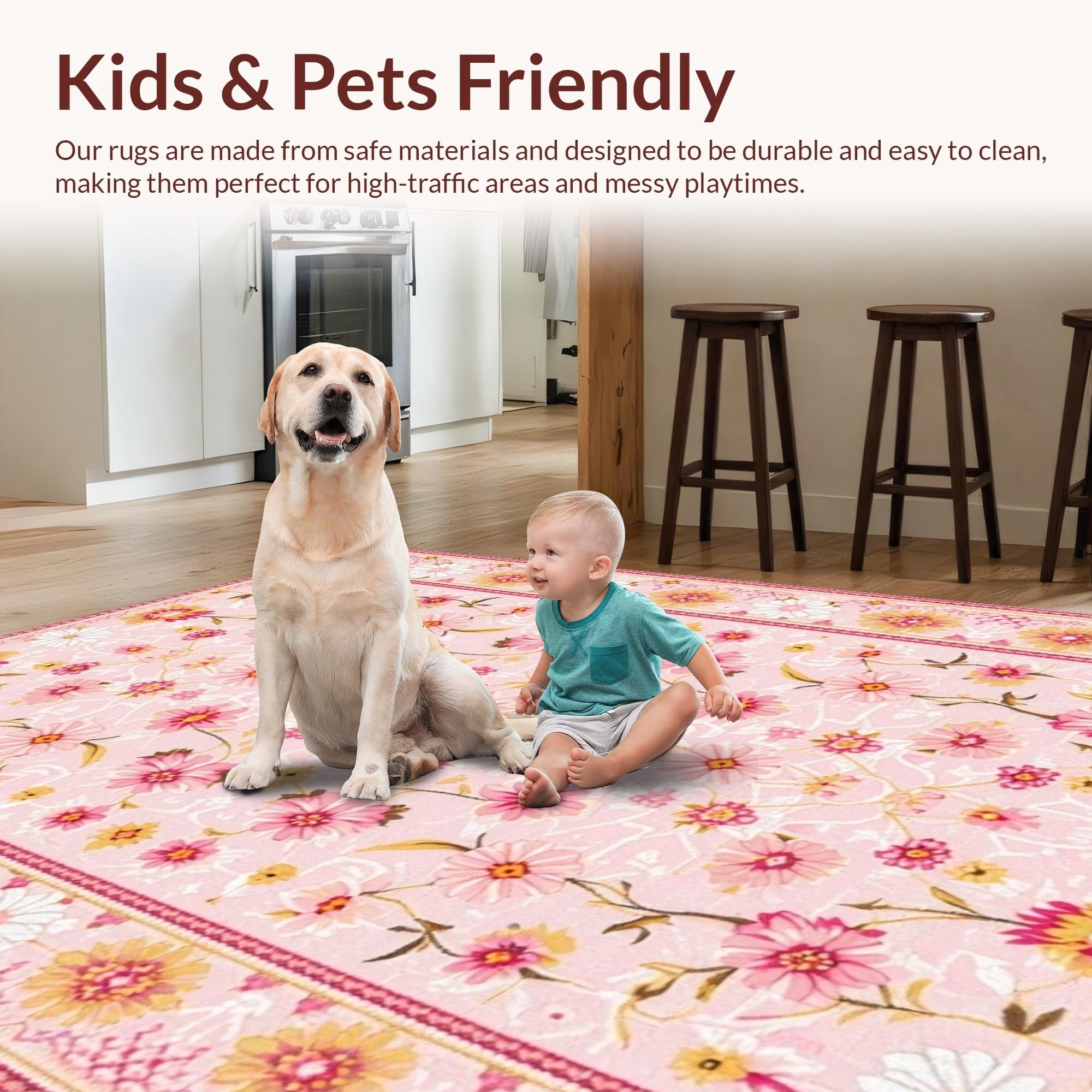Ultra Soft Area Rug, Non Slip, Stain Resistant, Washable Area Rugs for Living Room, Bedroom, Charming Daisy Floral Delight(Pink) Overview: