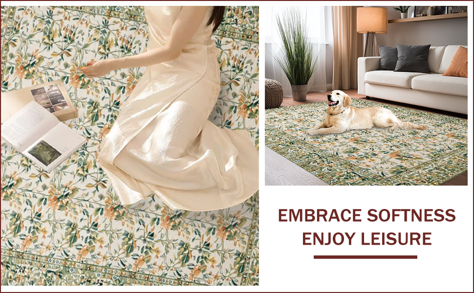 Ultra Soft Area Rug, Non Slip, Stain Resistant, Washable Area Rugs for Living Room, Bedroom, Charming Earthy Floral Motif(Ivory) Overview:
