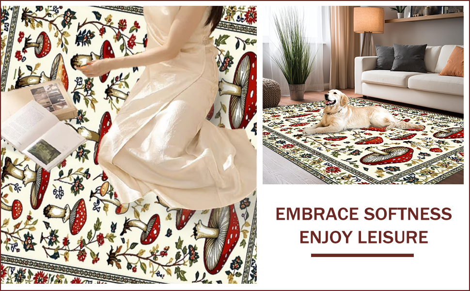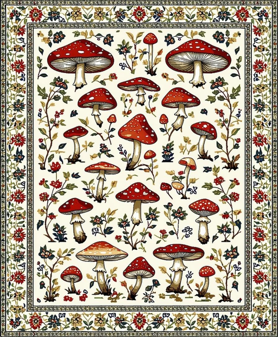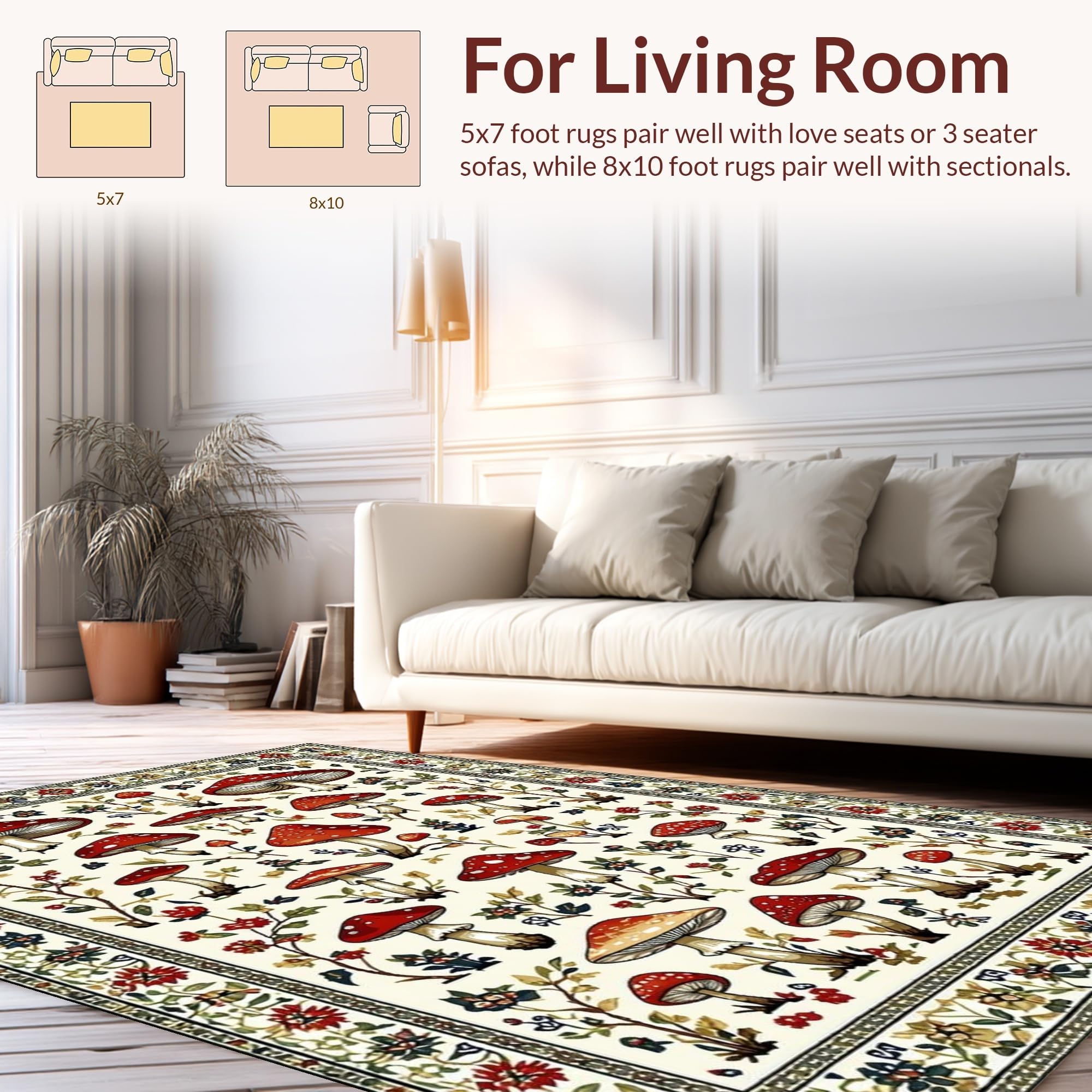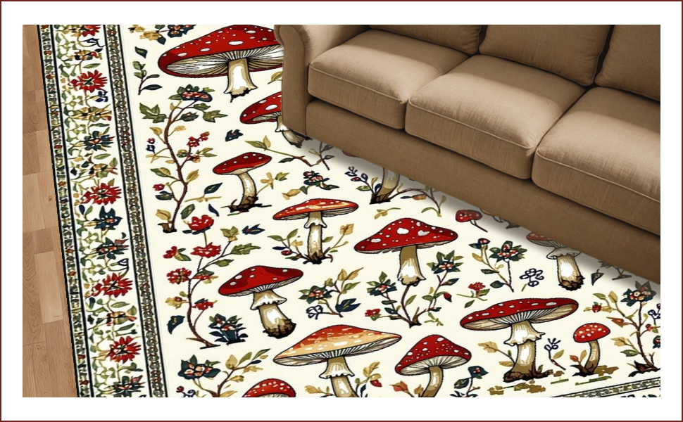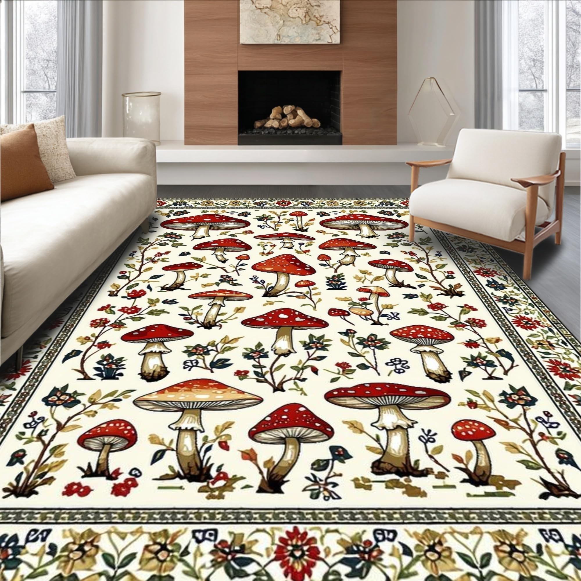Ultra Soft Area Rug, Non Slip, Stain Resistant, Washable Area Rugs for Living Room, Bedroom, Charming Earthy Mushroom Aesthetic(White) Overview: