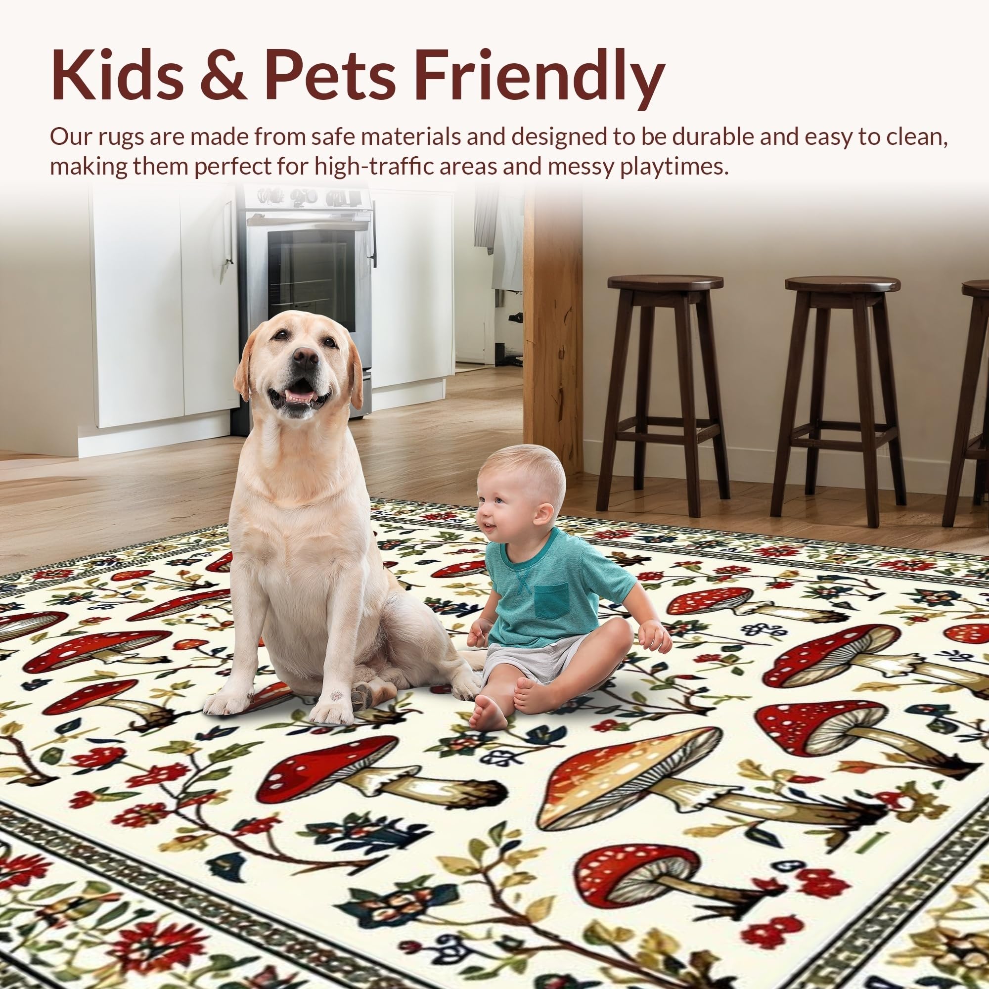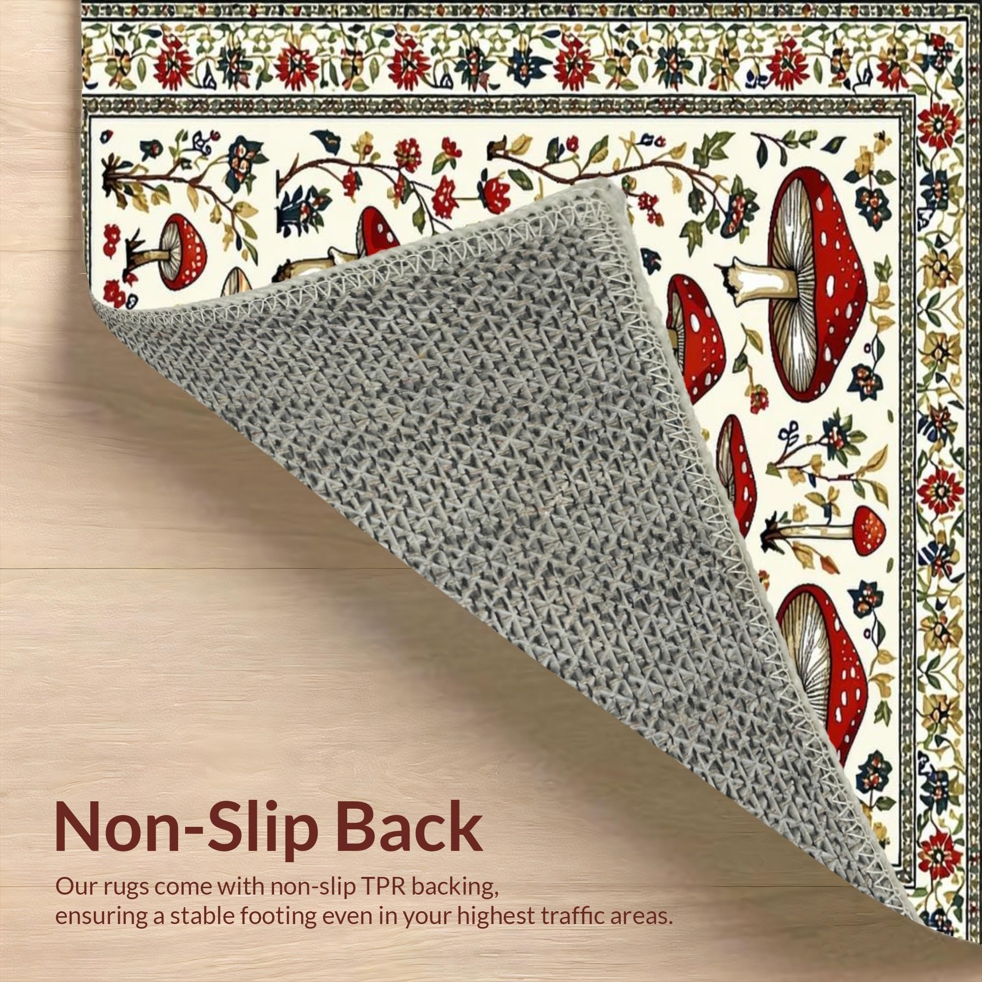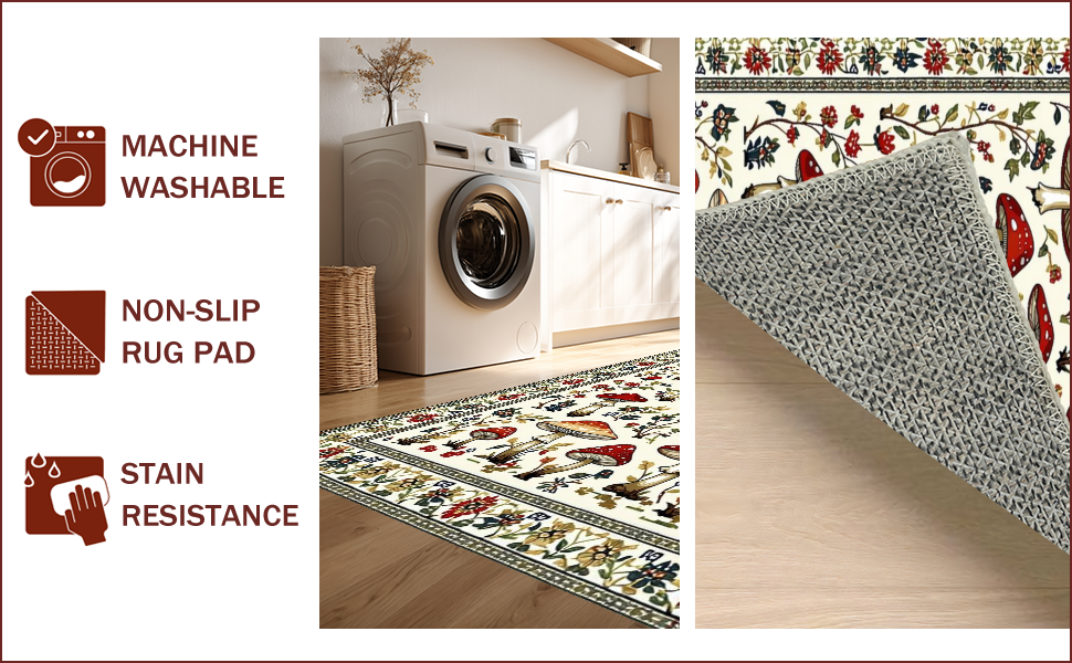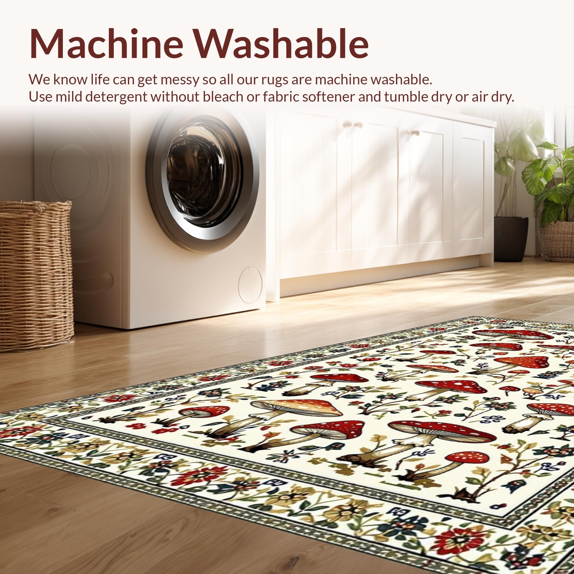 Ultra Soft Area Rug, Non Slip, Stain Resistant, Washable Area Rugs for Living Room, Bedroom, Charming Earthy Mushroom Aesthetic(White) Overview:
