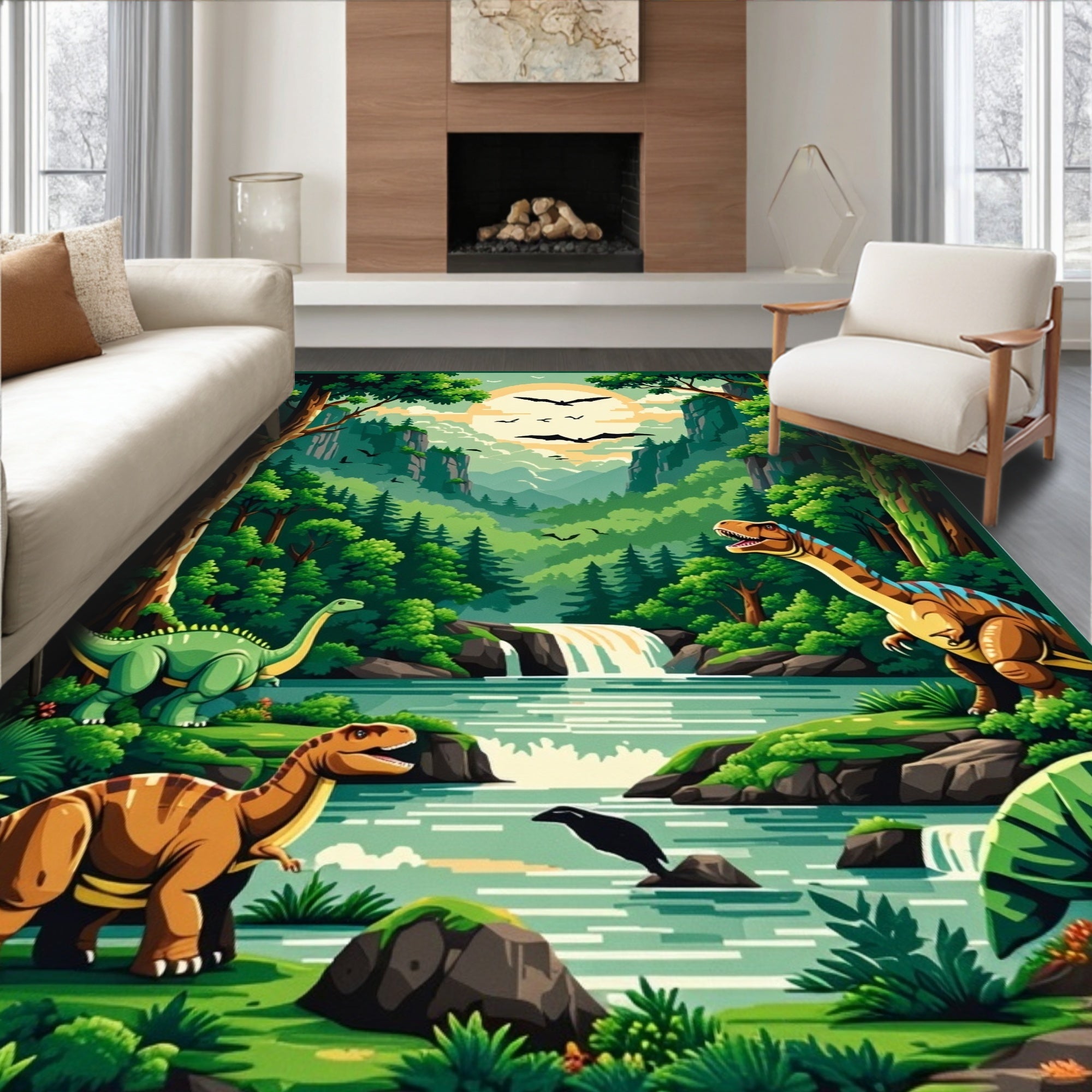 Flatwoven High Traffic Area Rug, Charming Earthy Toned Safari Scene, Non Slip, Stain Resistant, Washable Area Rugs for Living Room, Bedroom (Green) Overview: