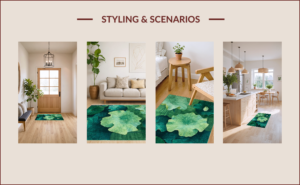 Ultra Soft Area Rug, Non Slip, Stain Resistant, Washable Area Rugs for Living Room, Bedroom, Charming Earthy Tones Floral Arrangement(Green) Overview: