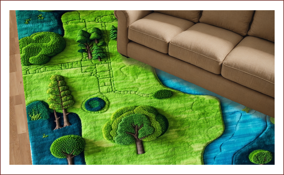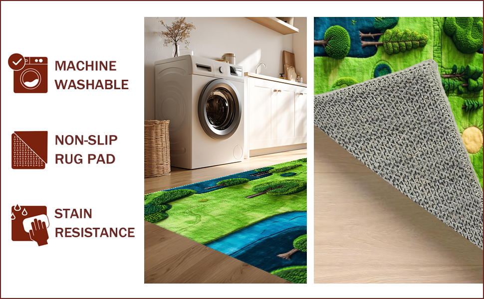 Ultra Soft Area Rug, Non Slip, Stain Resistant, Washable Area Rugs for Living Room, Bedroom, Charming Earthy World Map Design(Green) Overview: