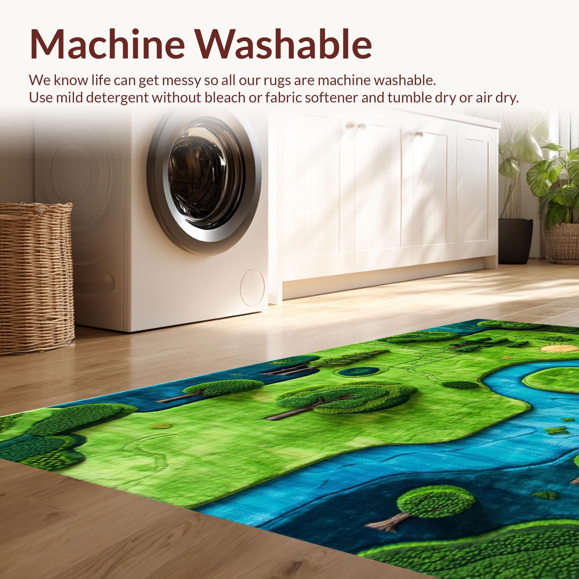 - Machine Washable: Our rugs can be easily thrown in the wash machine.