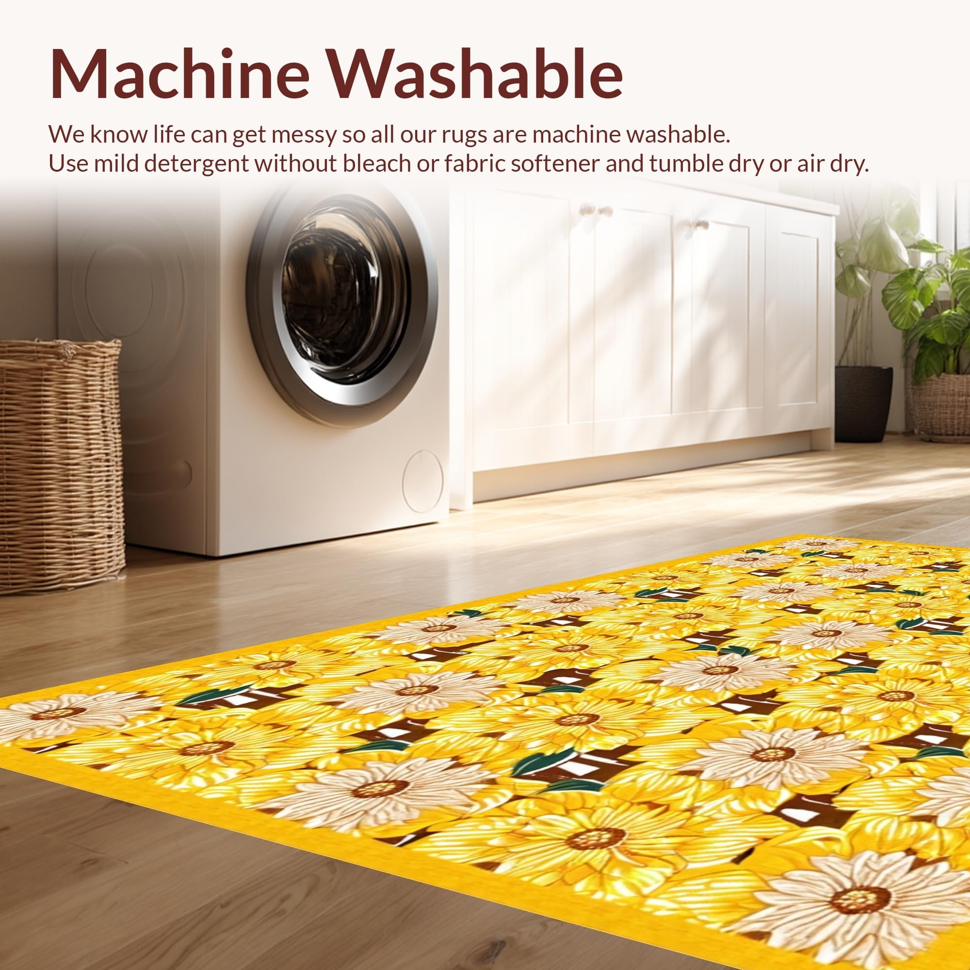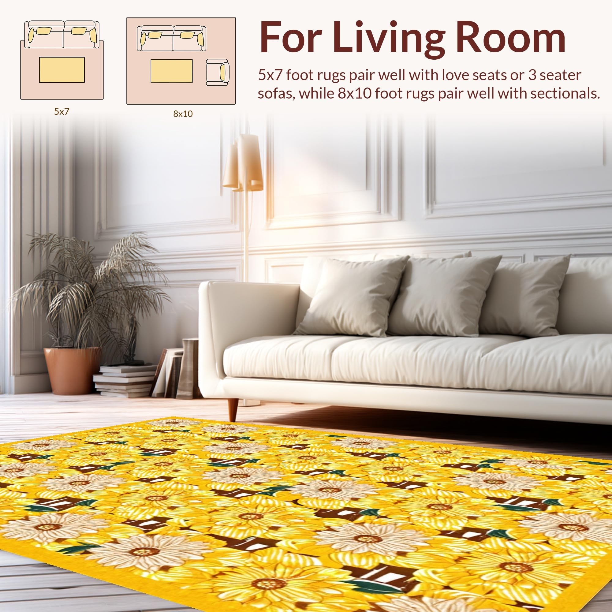Ultra Soft Area Rug, Non Slip, Stain Resistant, Washable Area Rugs for Living Room, Bedroom, Charming Eclectic Nature Design(Yellow) Overview: