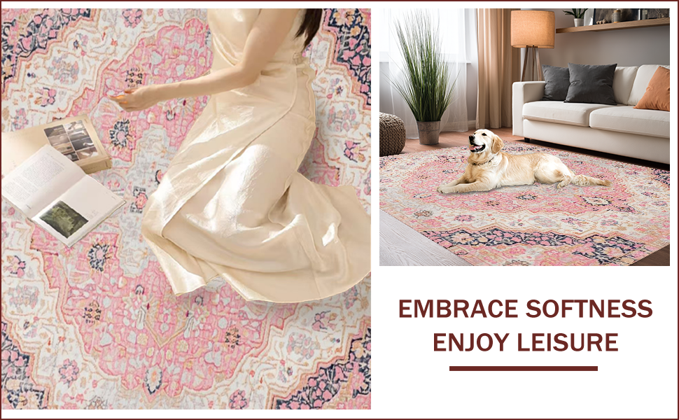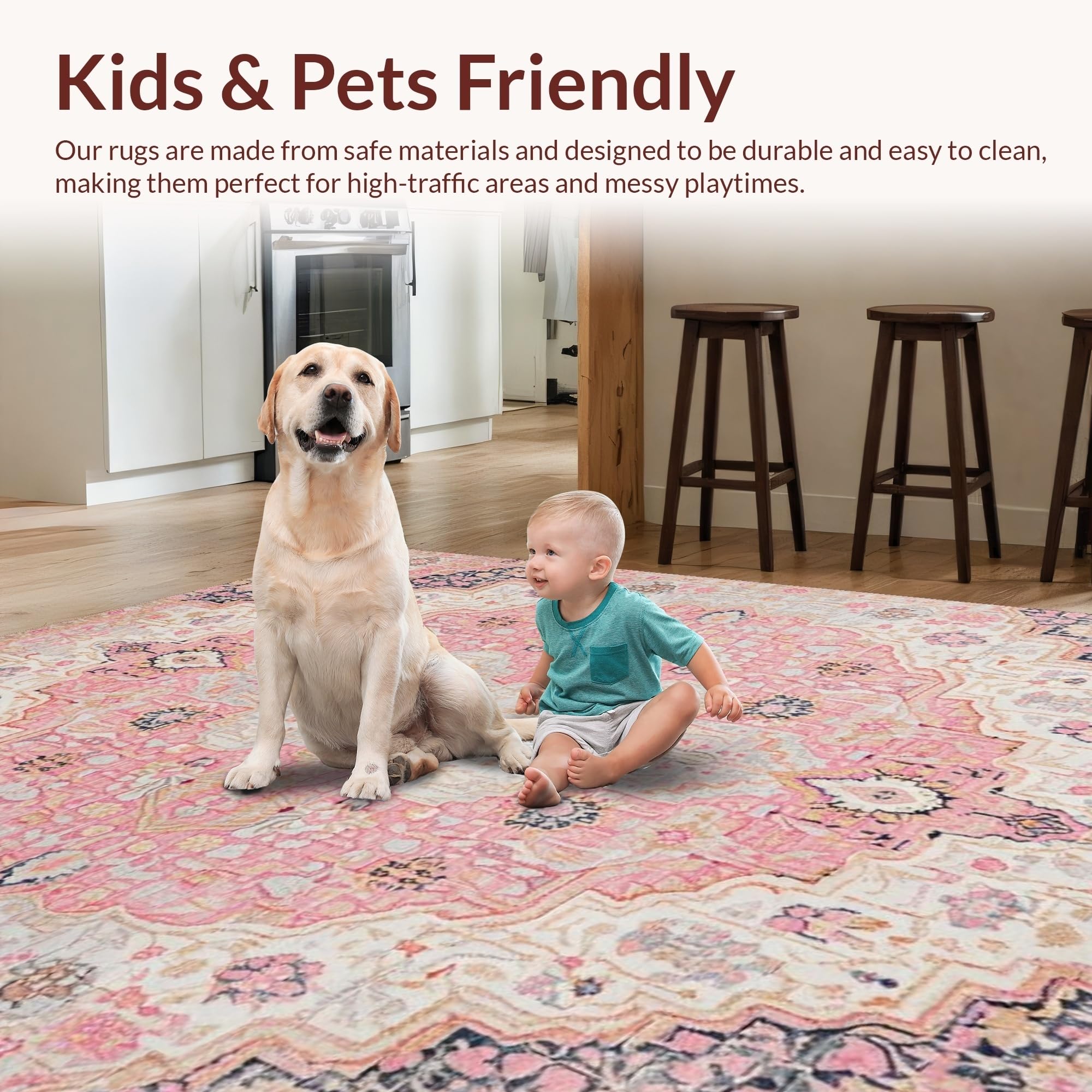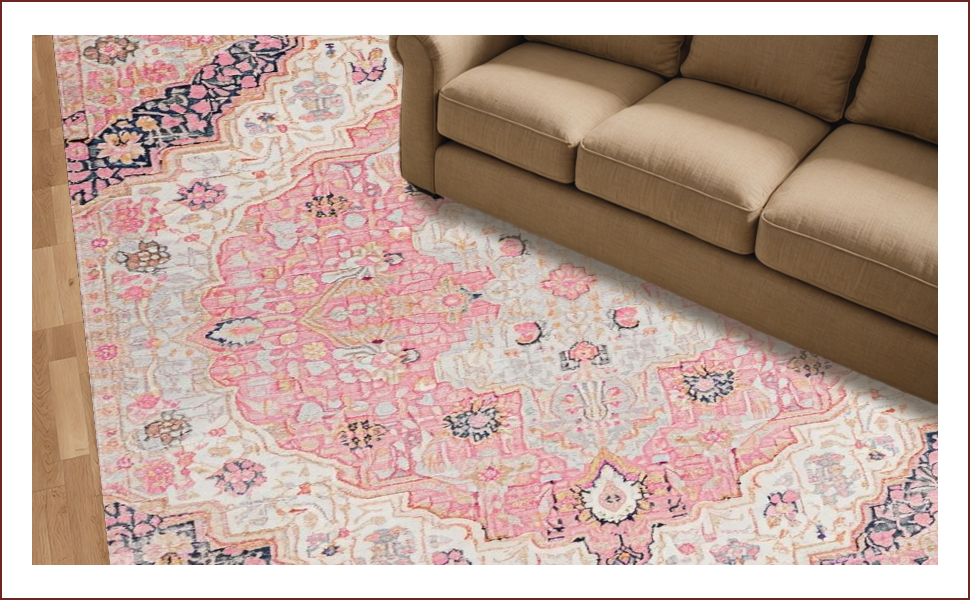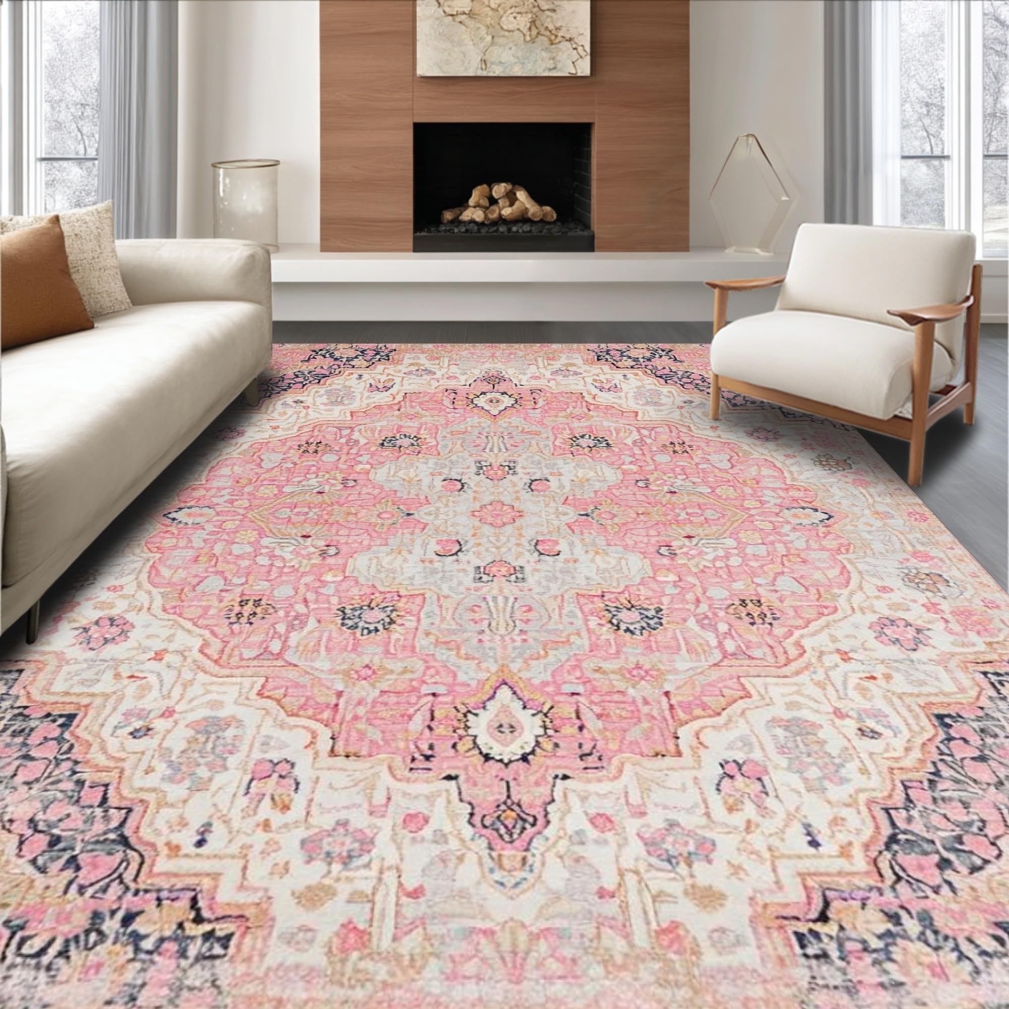 Ultra Soft Area Rug, Non Slip, Stain Resistant, Washable Area Rugs for Living Room, Bedroom, Charming Floral Boho Aesthetic(Pink) Overview: