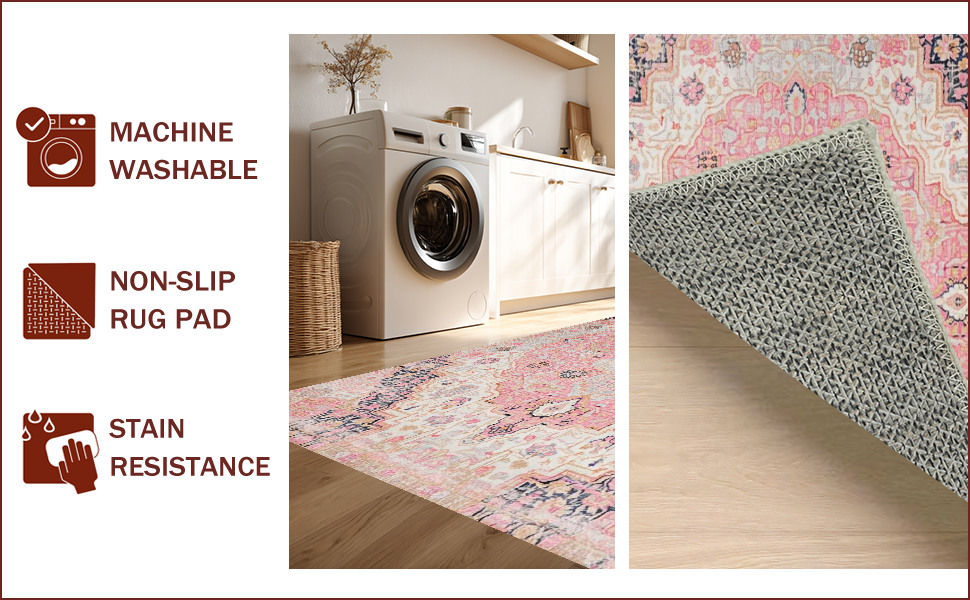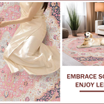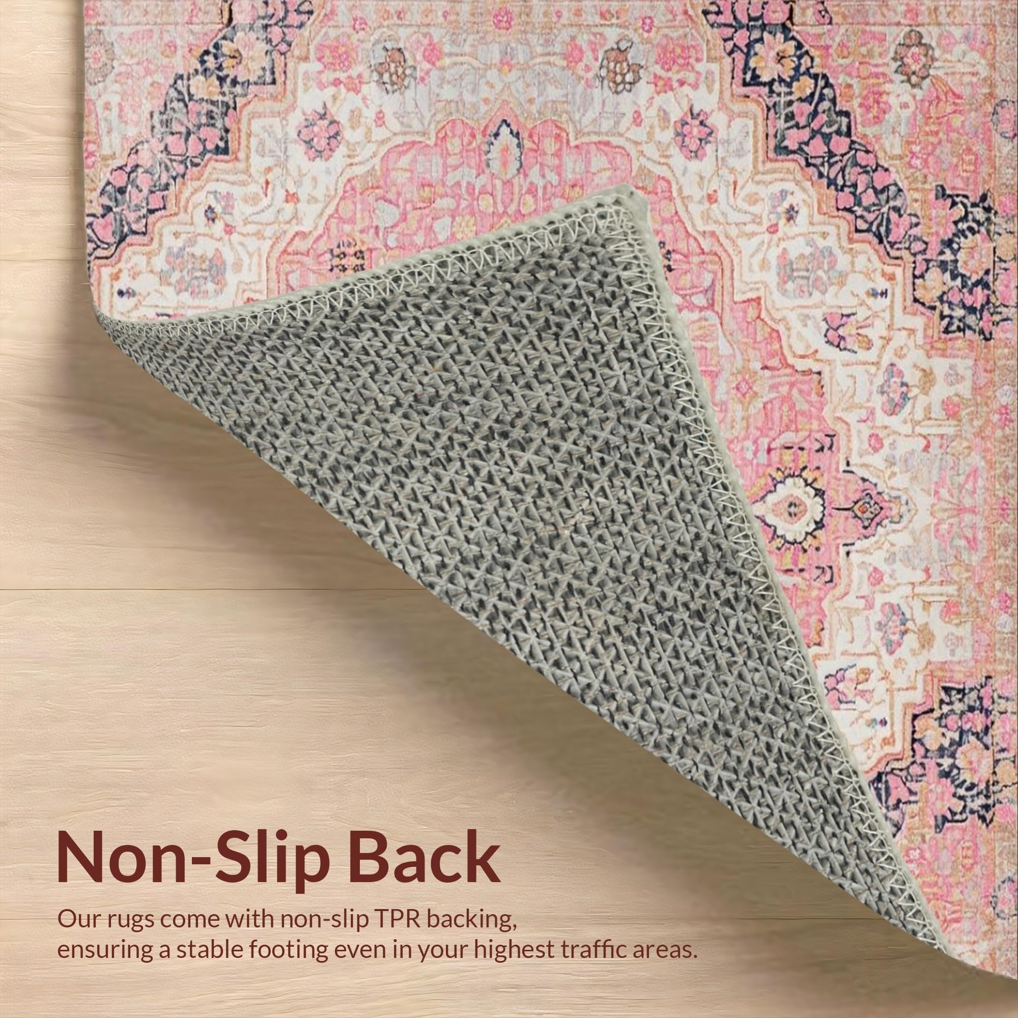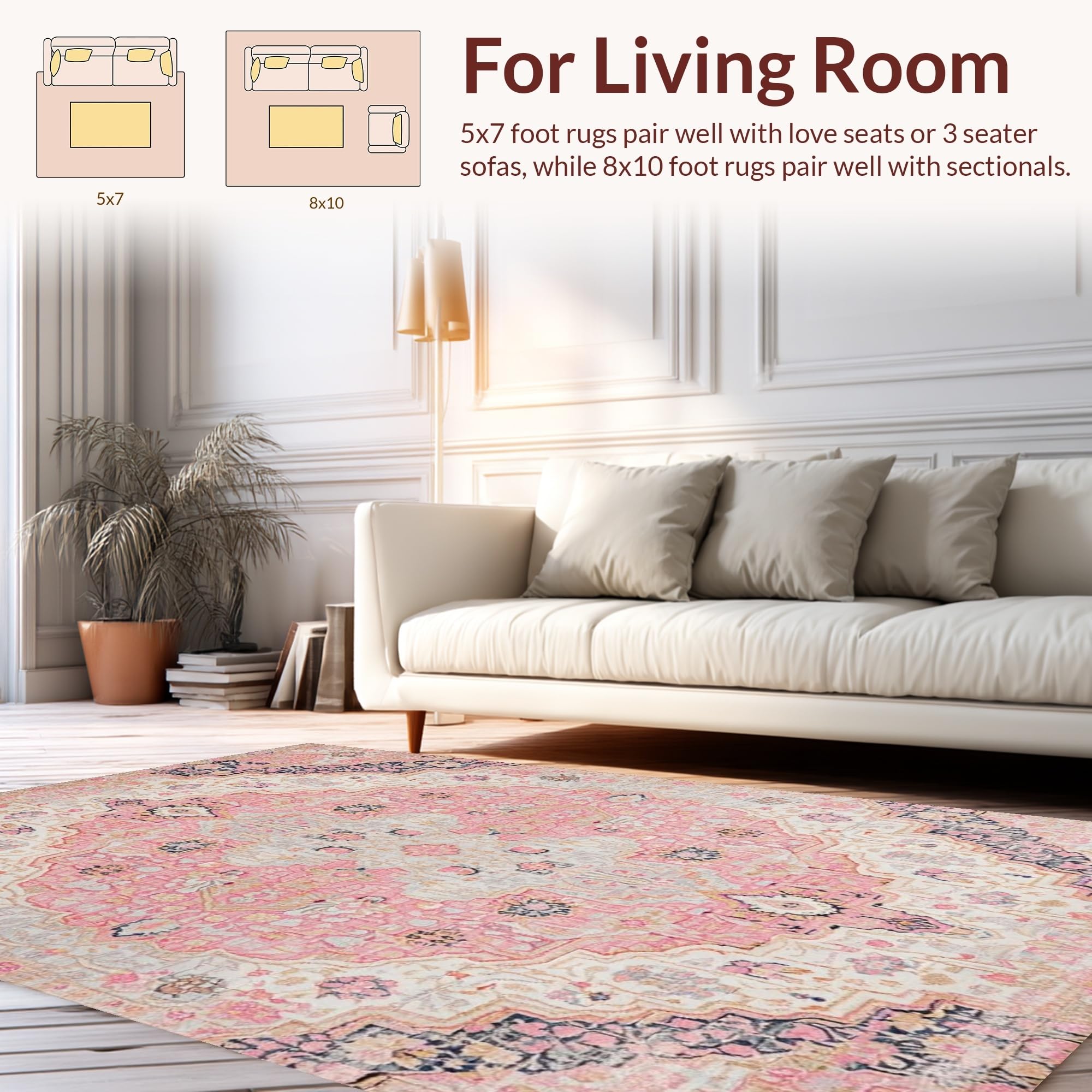 Ultra Soft Area Rug, Non Slip, Stain Resistant, Washable Area Rugs for Living Room, Bedroom, Charming Floral Boho Aesthetic(Pink) Overview: