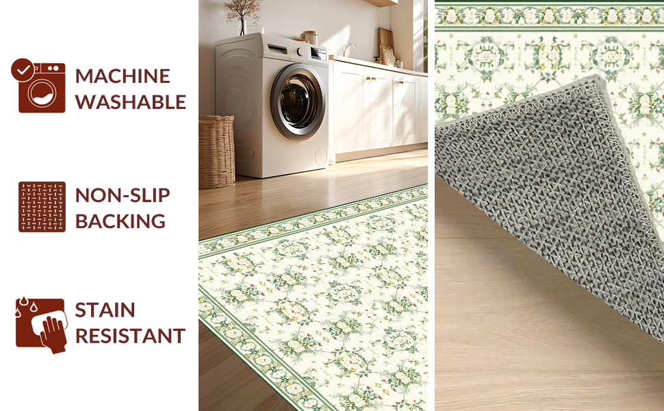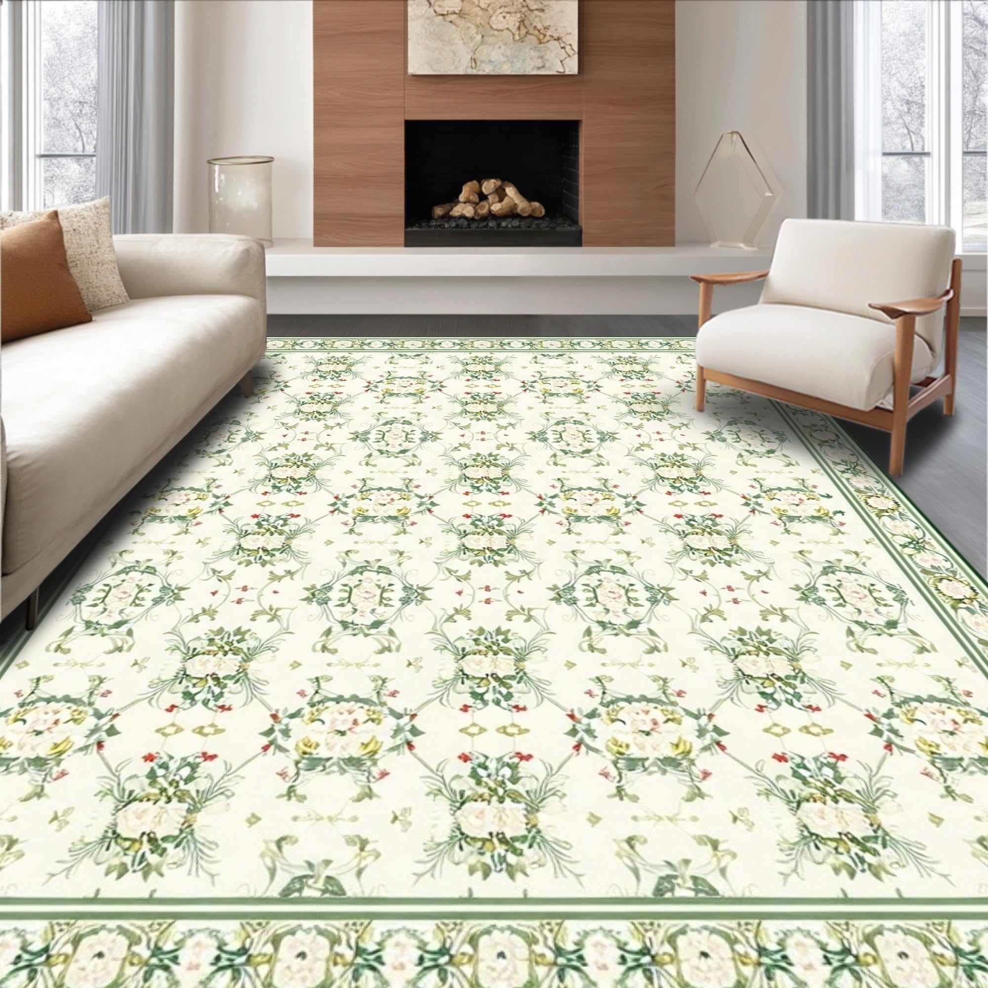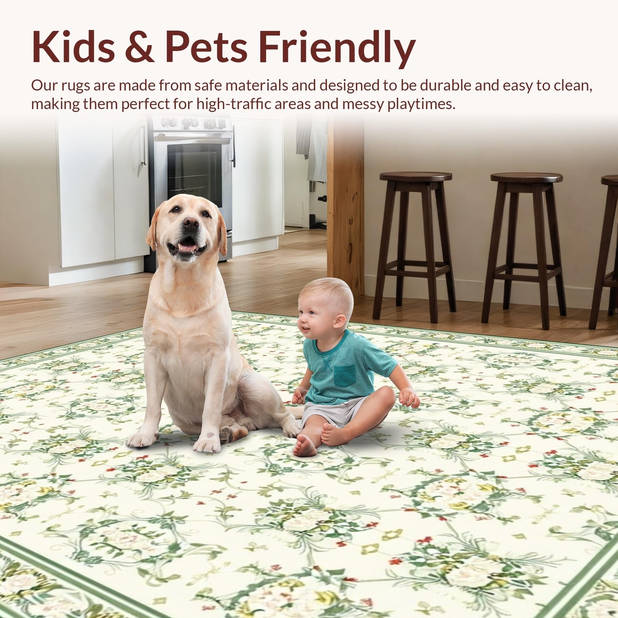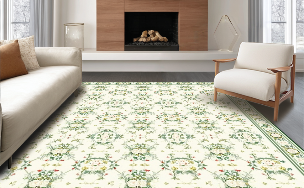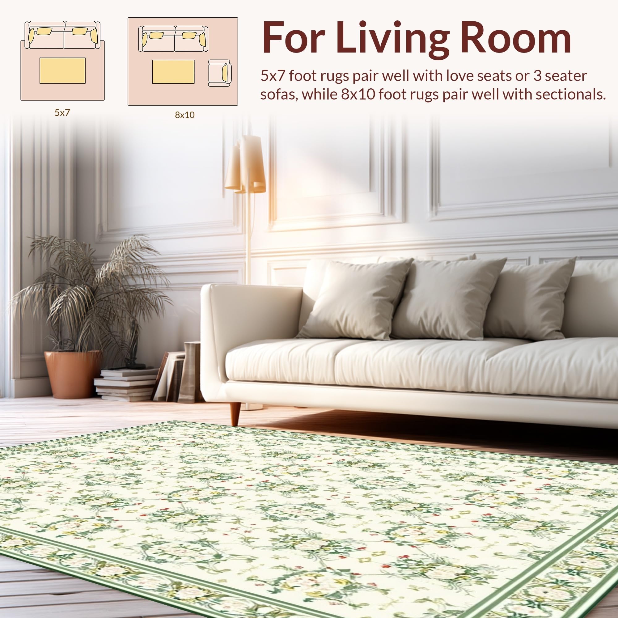 Ultra Soft Area Rug, Non Slip, Stain Resistant, Washable Area Rugs for Living Room, Bedroom, Charming Floral Country Aesthetic(Ivory) Overview: