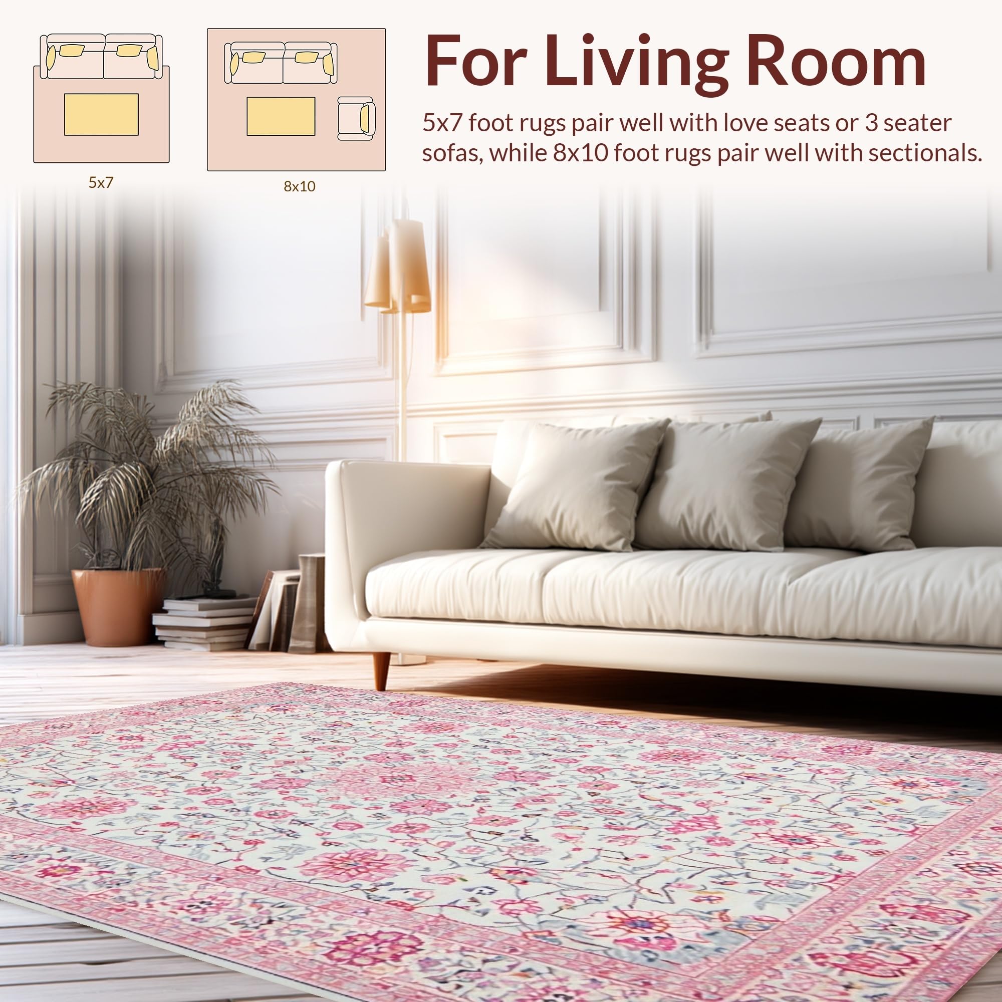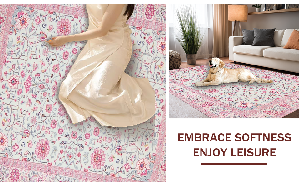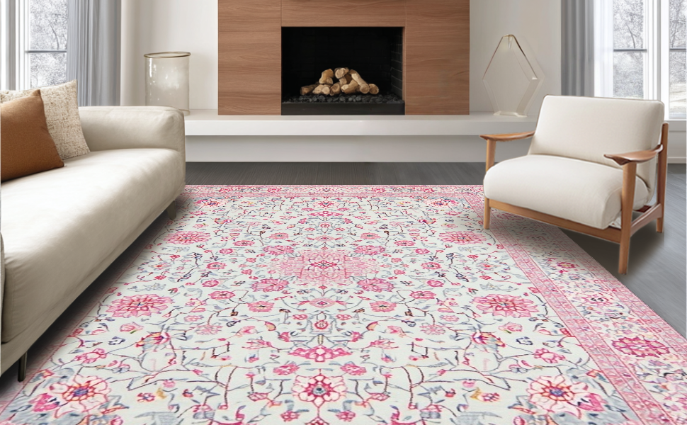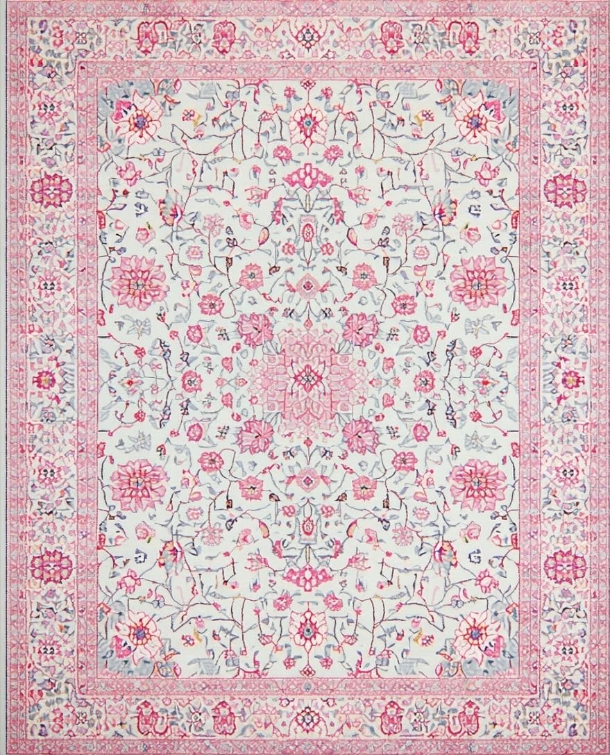 Ultra Soft Area Rug, Non Slip, Stain Resistant, Washable Area Rugs for Living Room, Bedroom, Charming Floral Medley Aesthetic(White) Overview:
