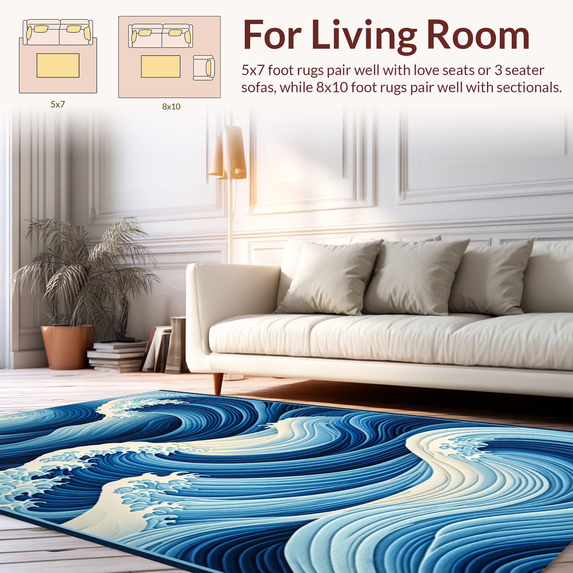Flatwoven High Traffic Area Rug, Charming Fluid Curved Texture, Non Slip, Stain Resistant, Washable Area Rugs for Living Room, Bedroom (Blue) Overview: