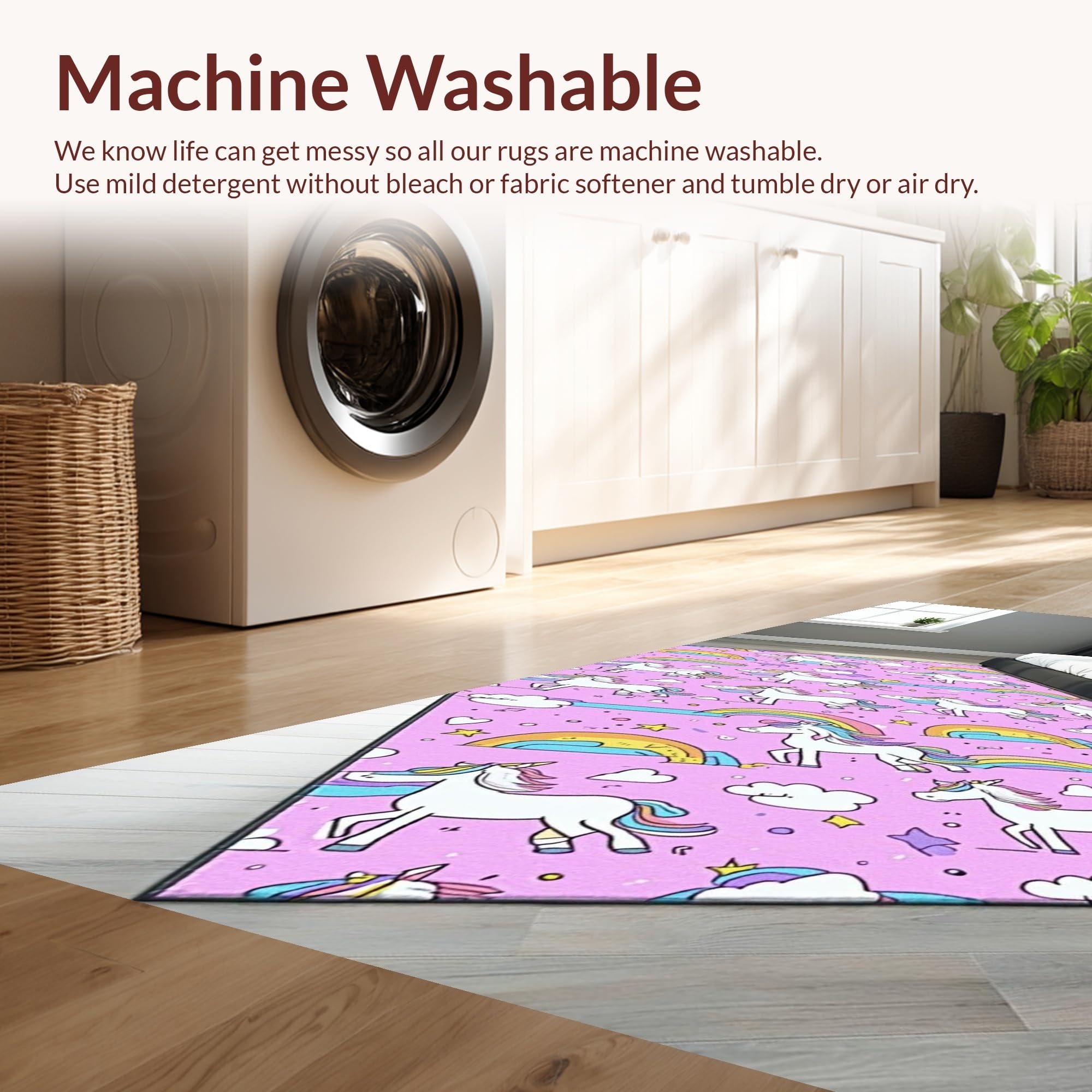 - Machine Washable: Our rugs can be easily thrown in the wash machine.