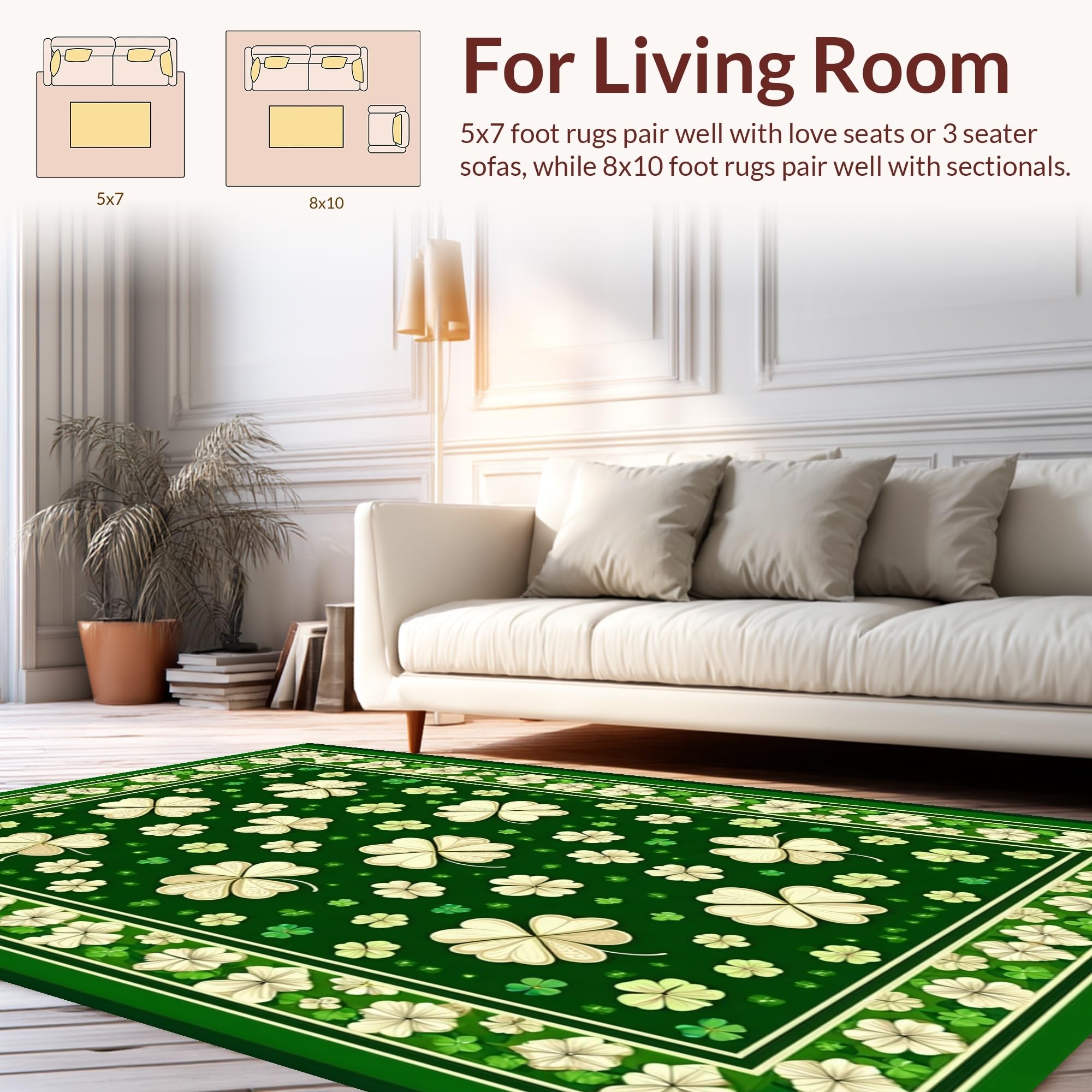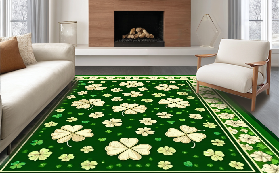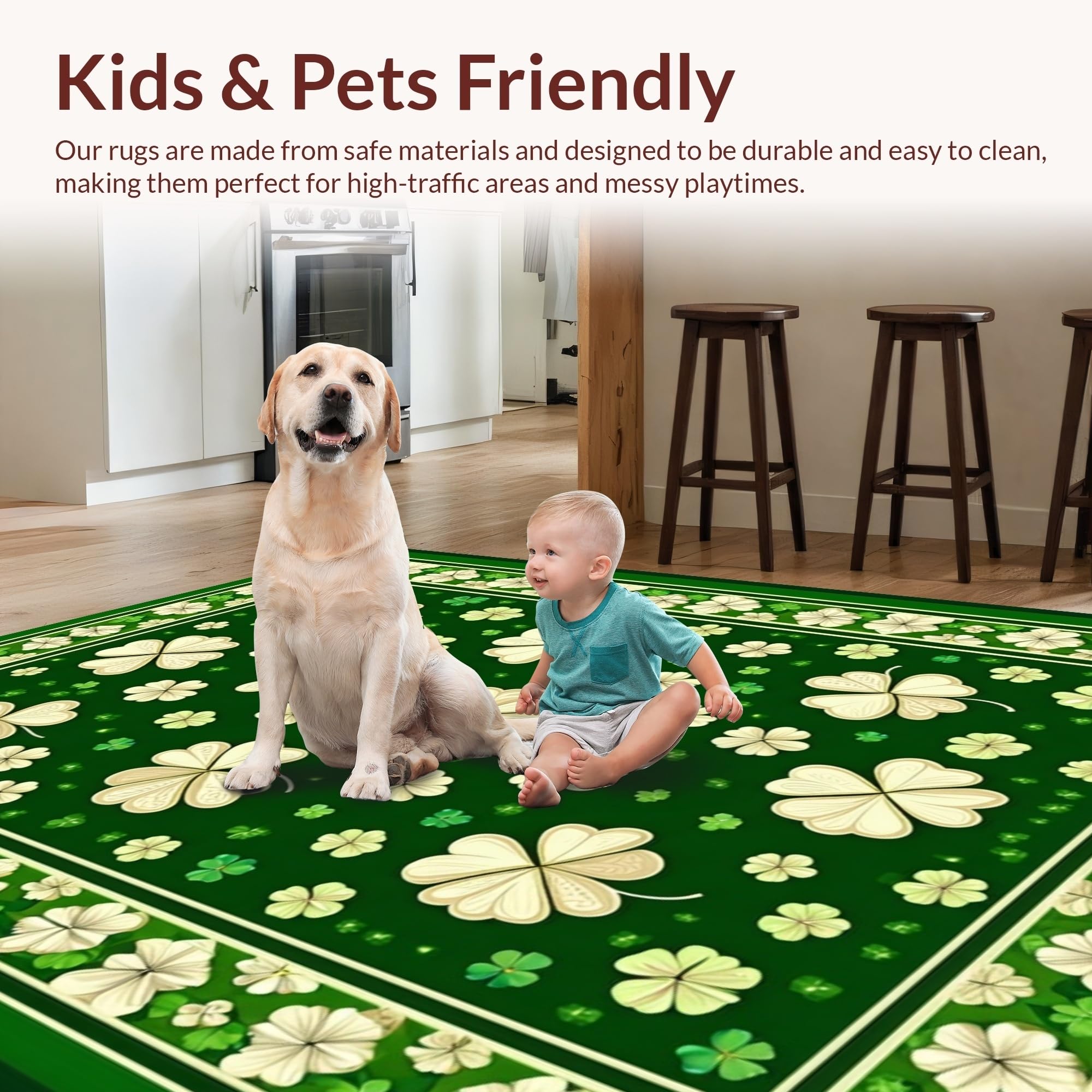 Ultra Soft Area Rug, Non Slip, Stain Resistant, Washable Area Rugs for Living Room, Bedroom, Charming Green Tiled Design(Green) Overview: