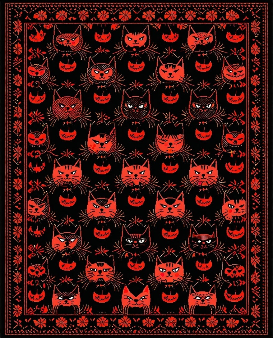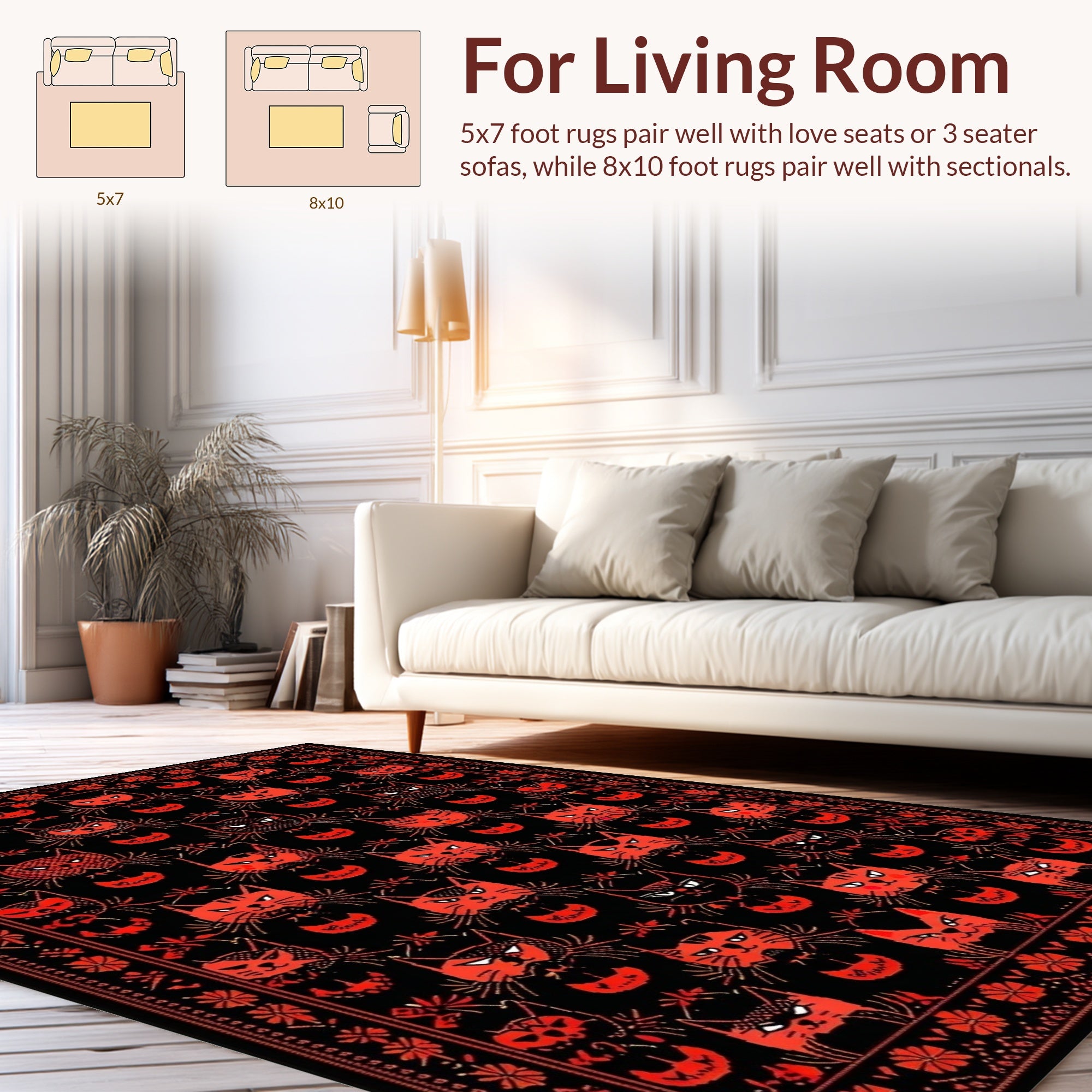 Flatwoven High Traffic Area Rug, Charming Halloween Cat, Non Slip, Stain Resistant, Washable Area Rugs for Living Room, Bedroom (Black) Overview: