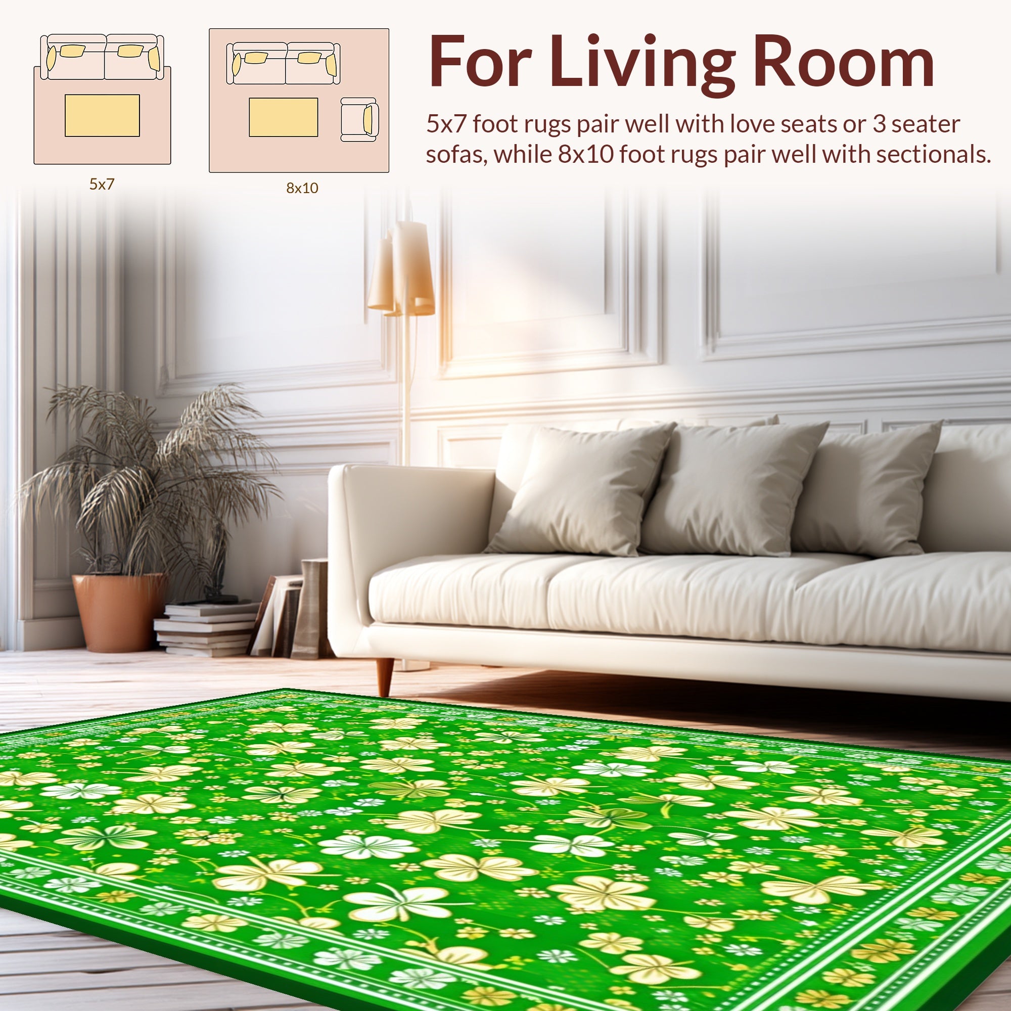 Flatwoven High Traffic Area Rug, Charming Irish Heritage Design, Non Slip, Stain Resistant, Washable Area Rugs for Living Room, Bedroom (Green) Overview: