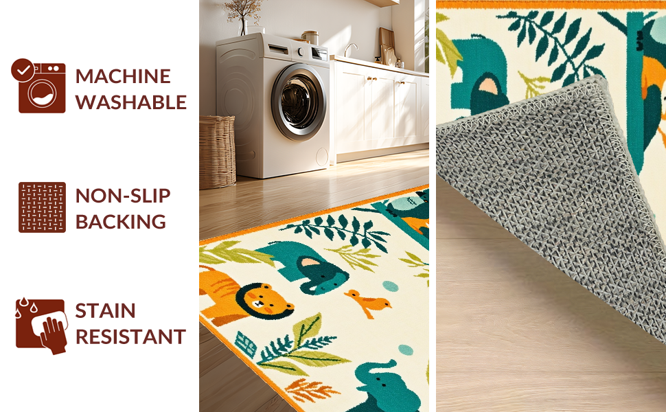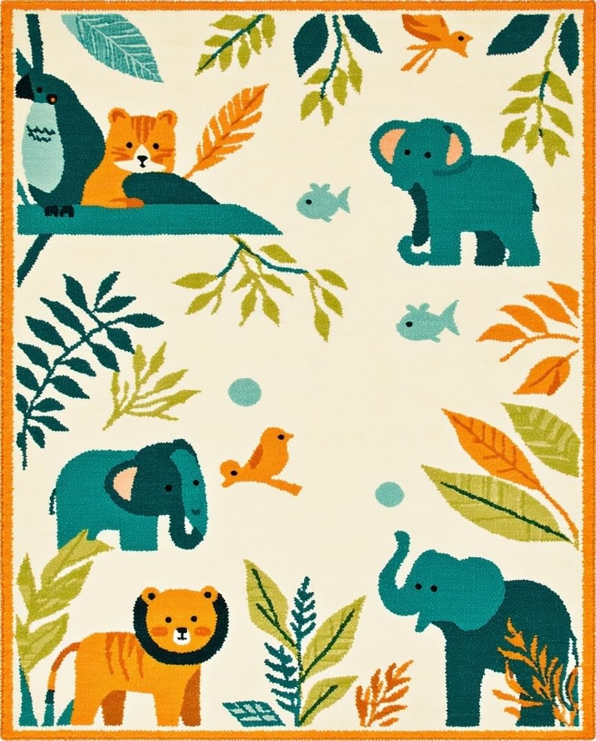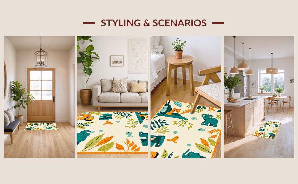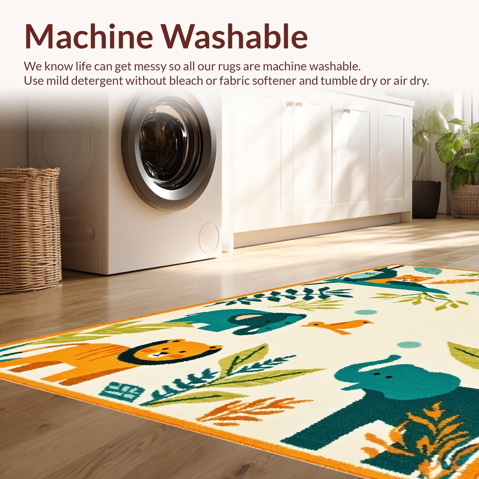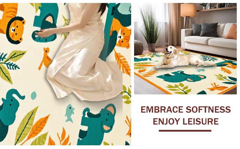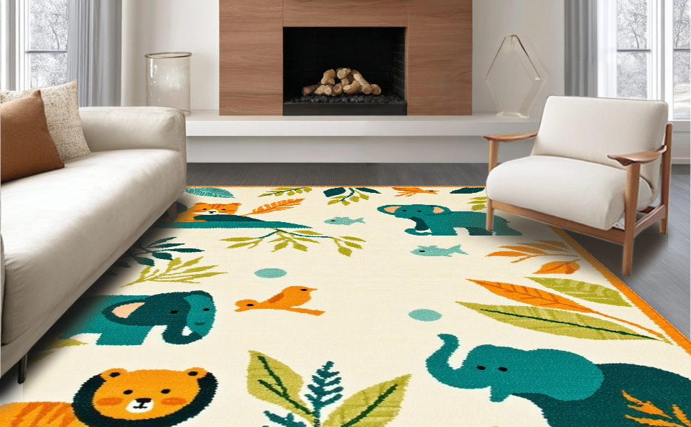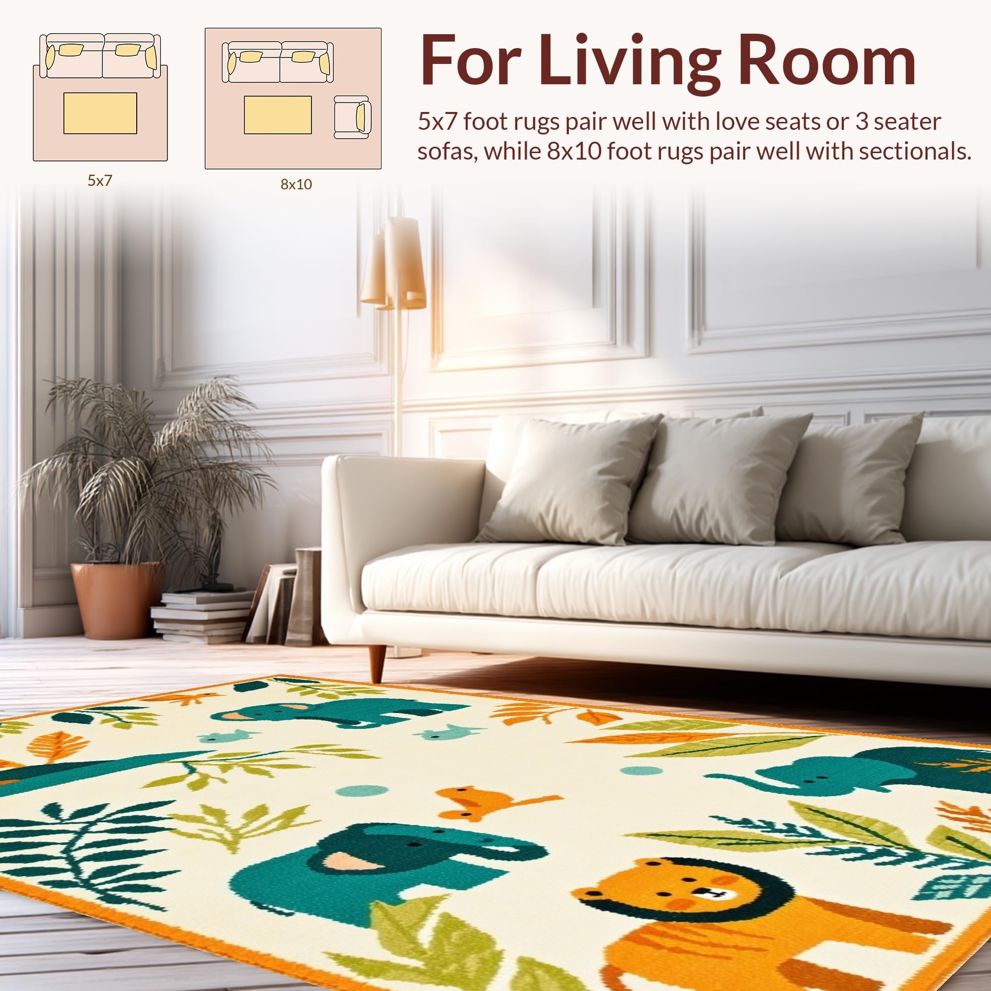 Ultra Soft Area Rug, Non Slip, Stain Resistant, Washable Area Rugs for Living Room, Bedroom, Charming Kids Wildlife Aesthetic(Beige) Overview: