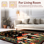 Flatwoven High Traffic Area Rug, Charming Moth Graphic Accents, Non Slip, Stain Resistant, Washable Area Rugs for Living Room, Bedroom (Black) Overview: