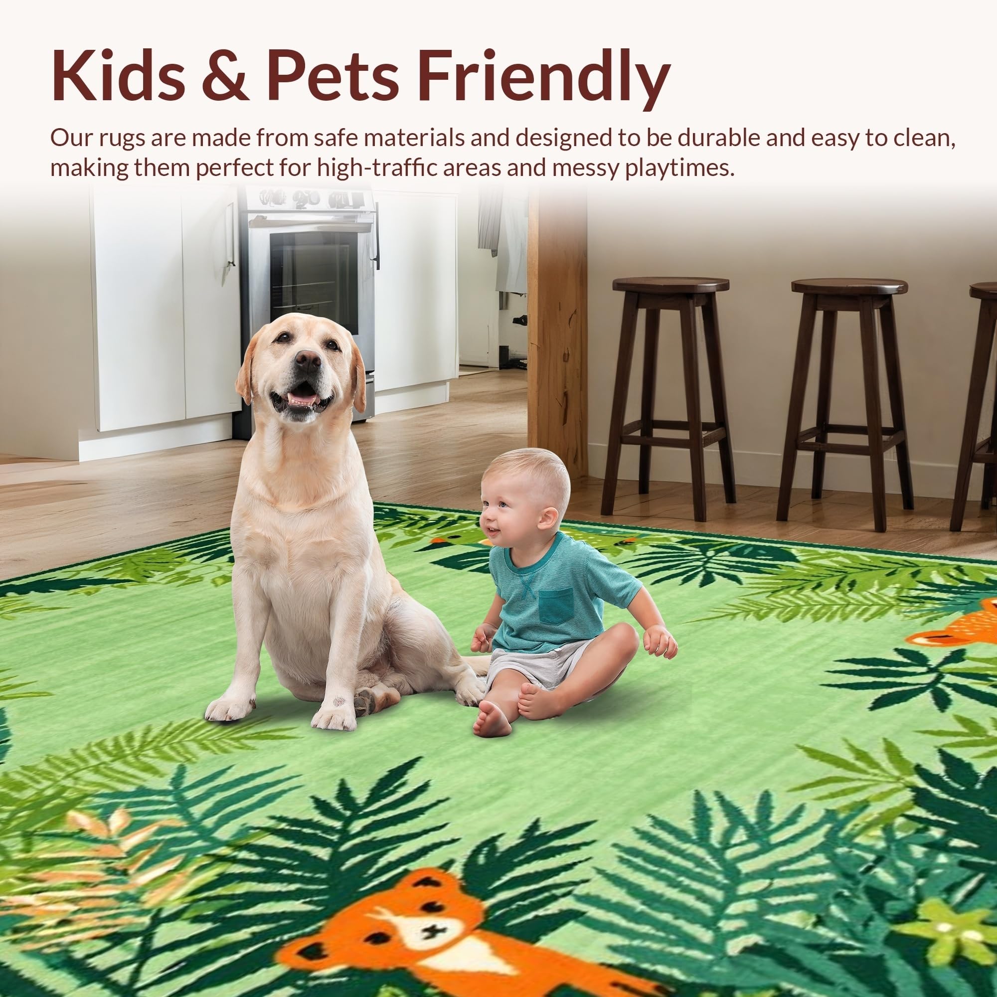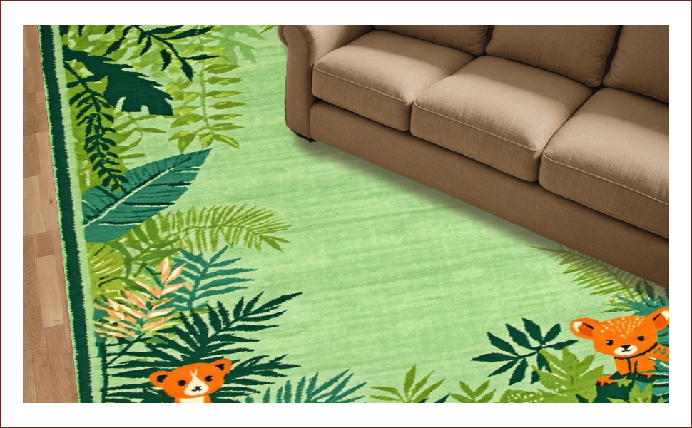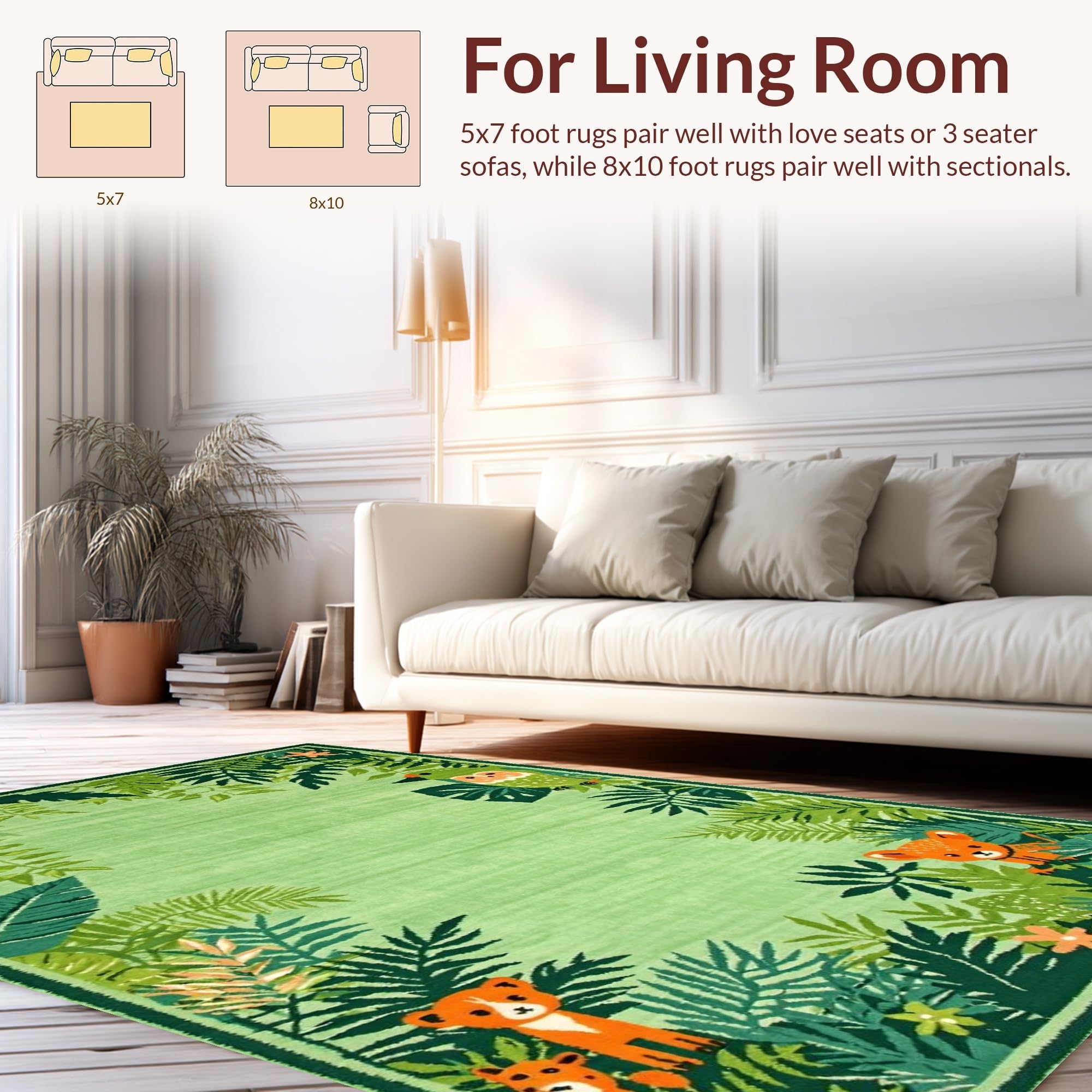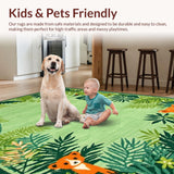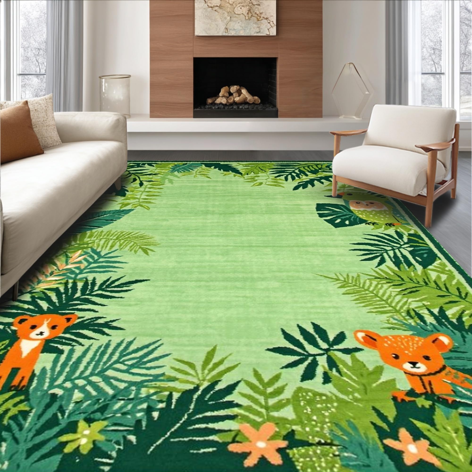 Ultra Soft Area Rug, Non Slip, Stain Resistant, Washable Area Rugs for Living Room, Bedroom, Charming Multicolor Safari Theme(Green) Overview: