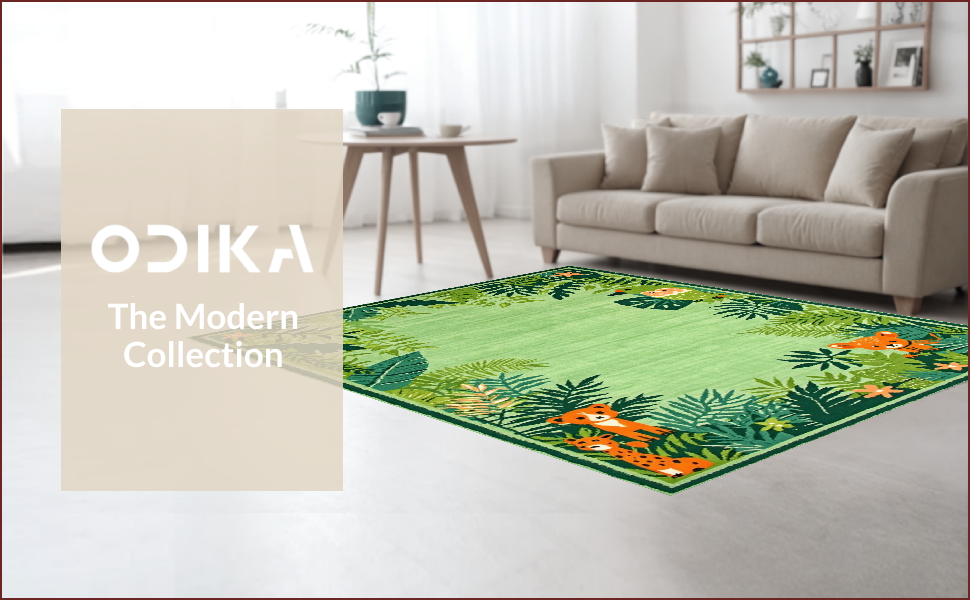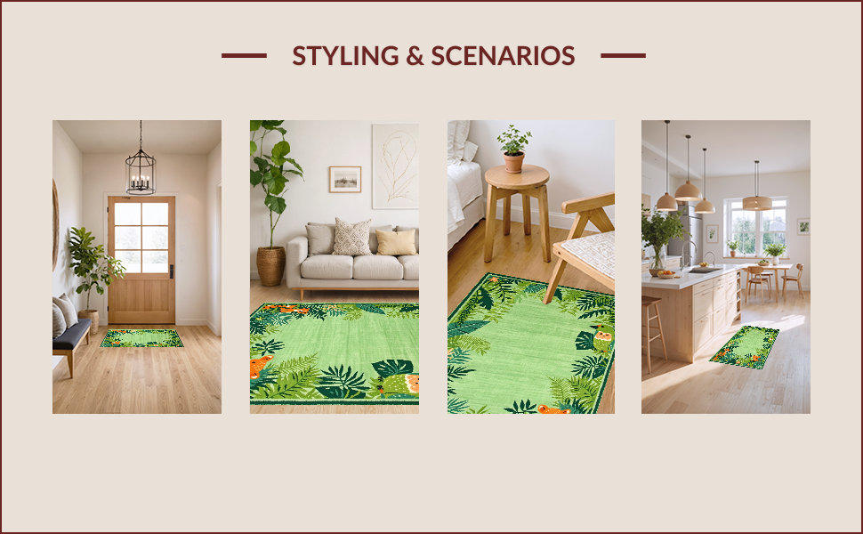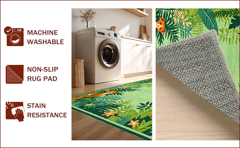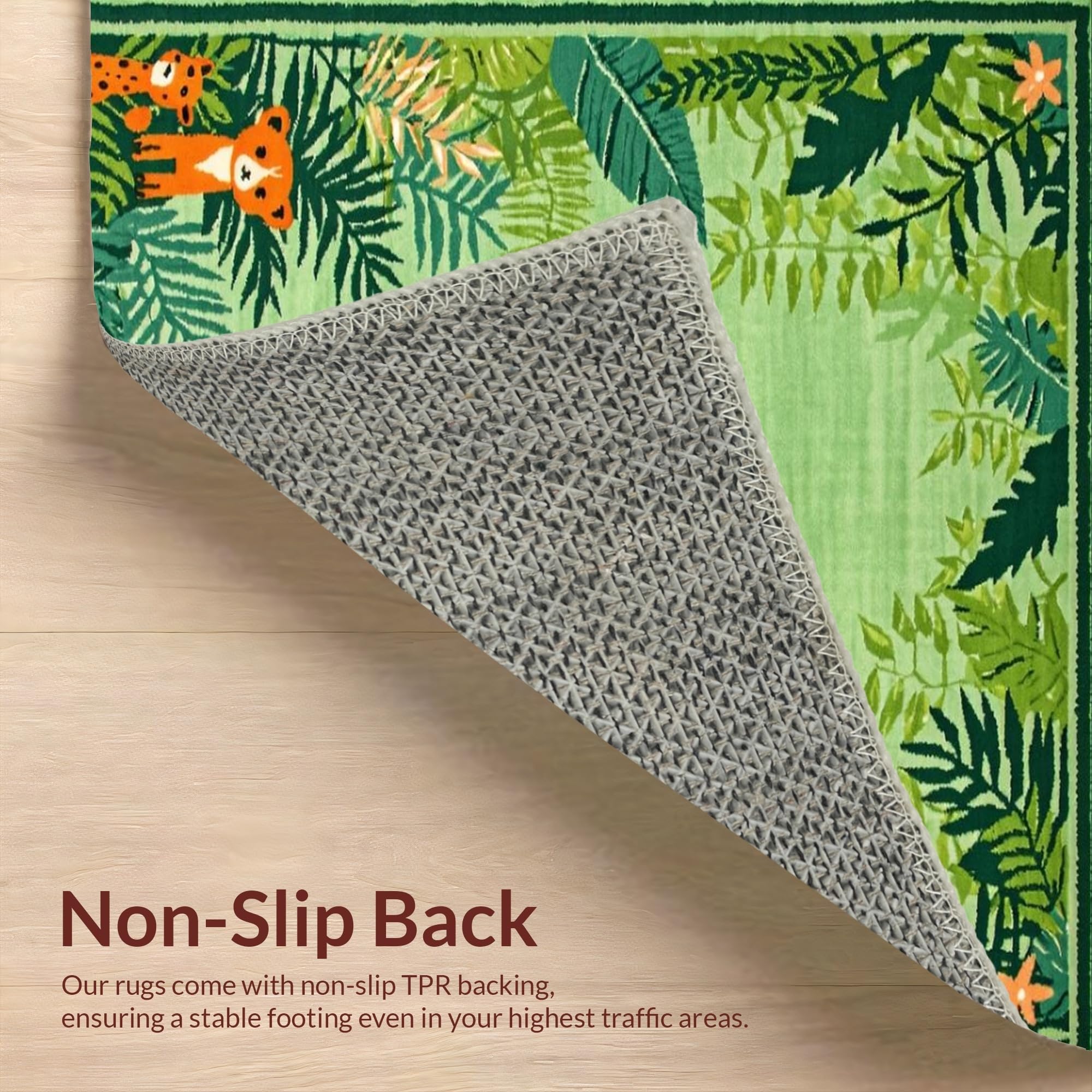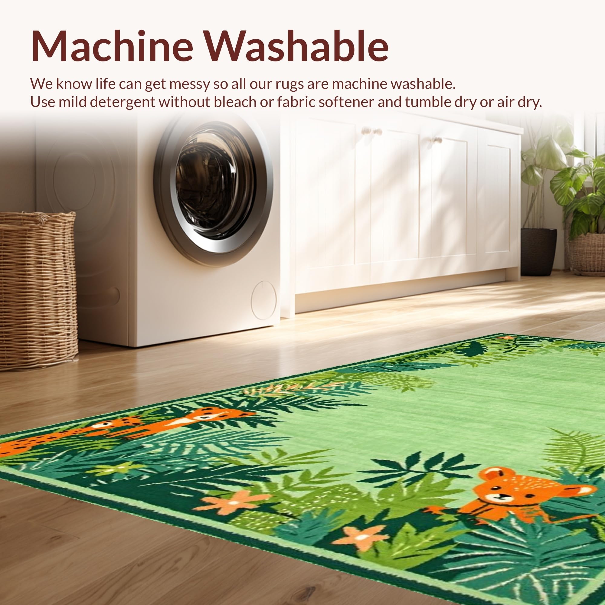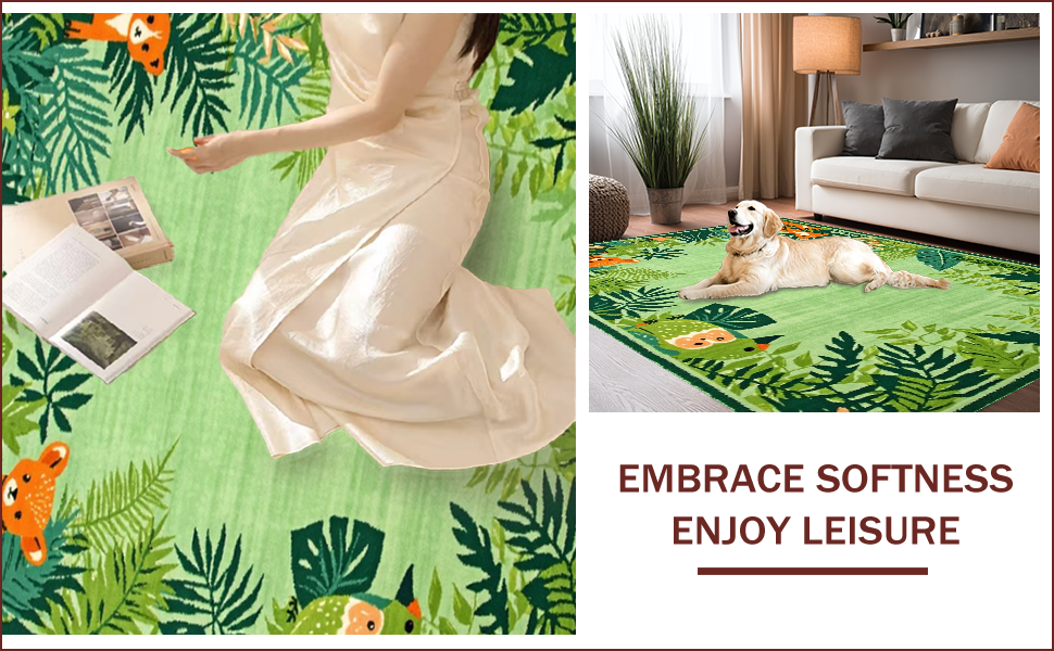 Ultra Soft Area Rug, Non Slip, Stain Resistant, Washable Area Rugs for Living Room, Bedroom, Charming Multicolor Safari Theme(Green) Overview: