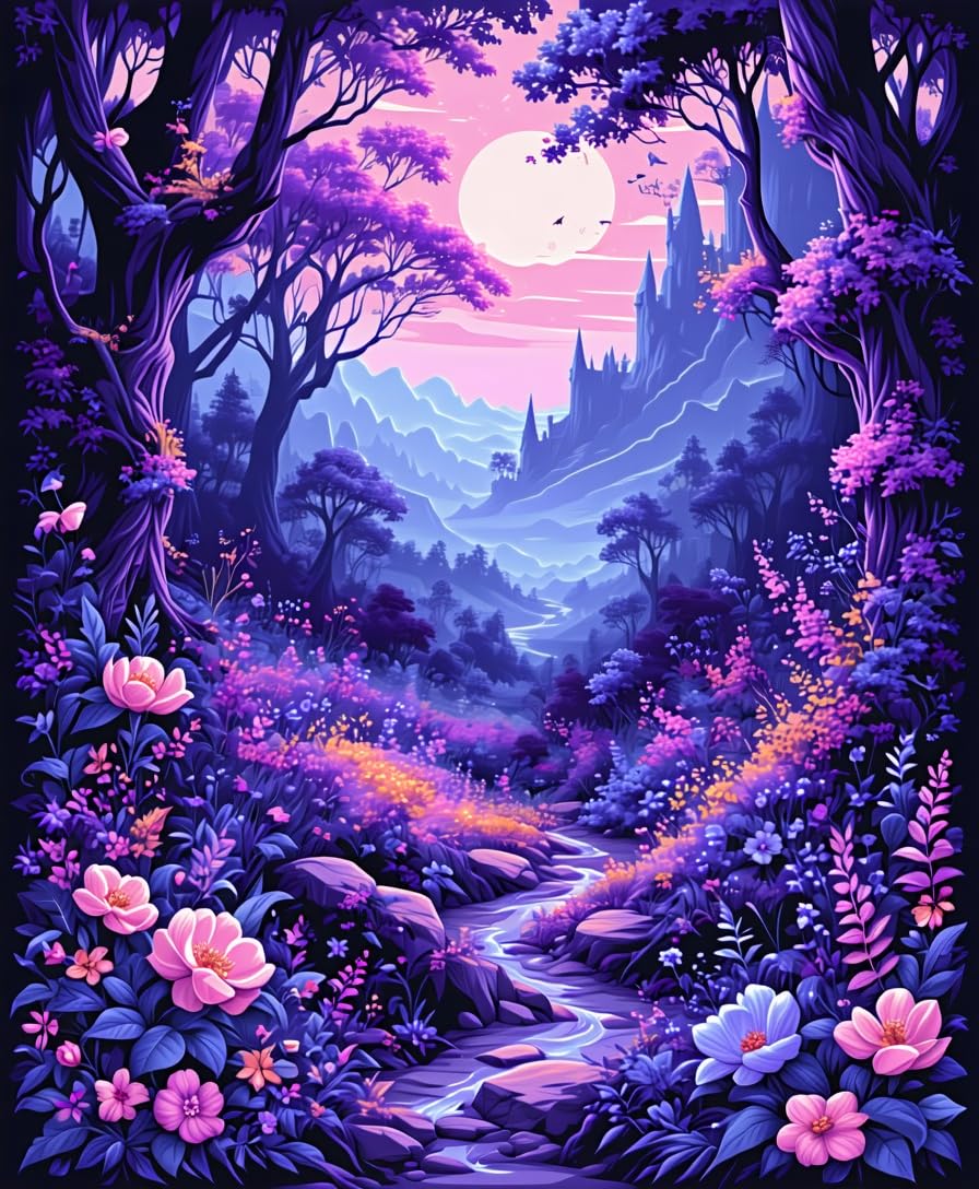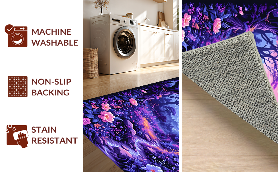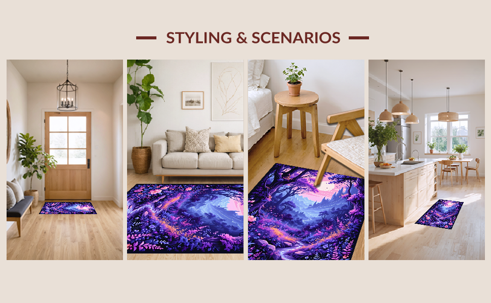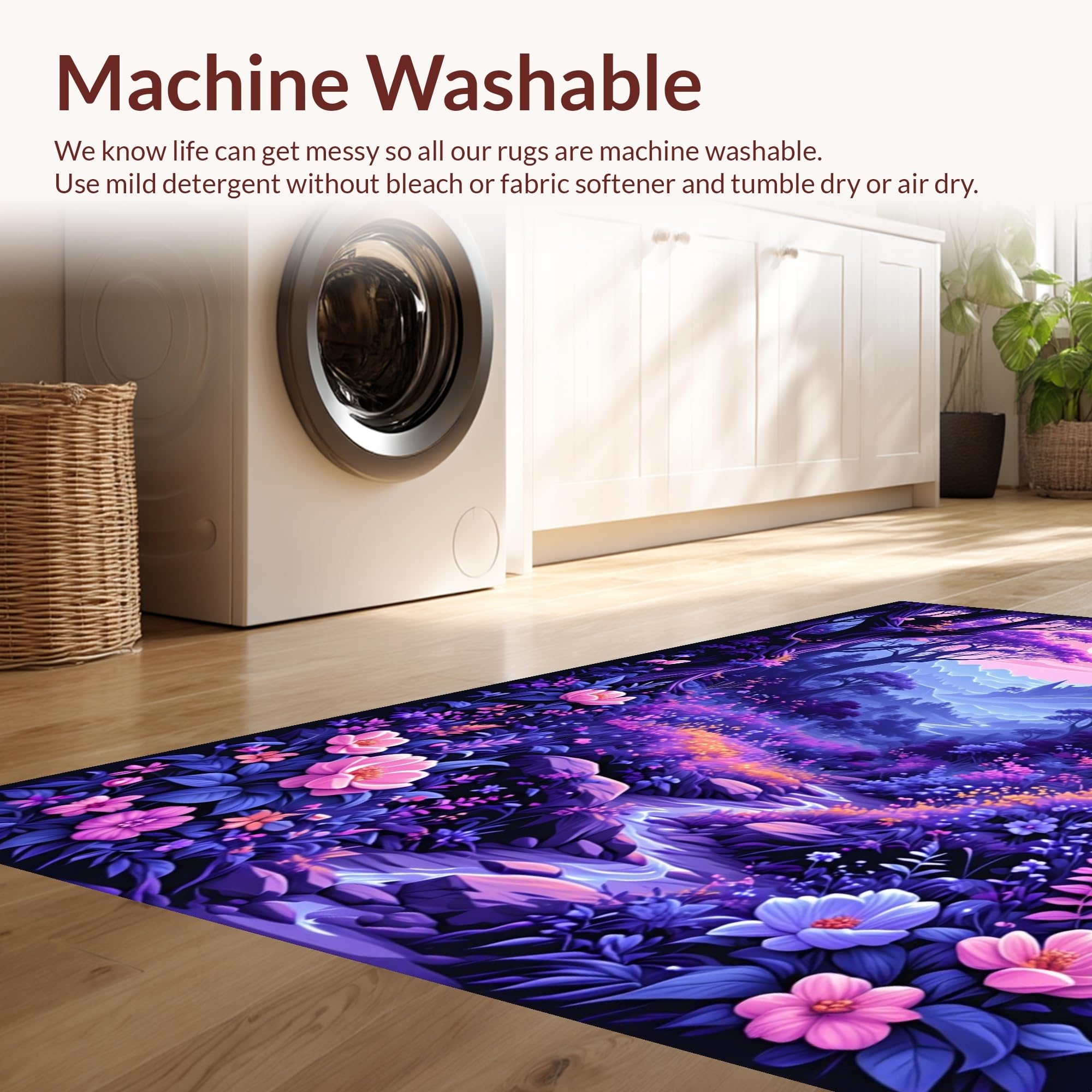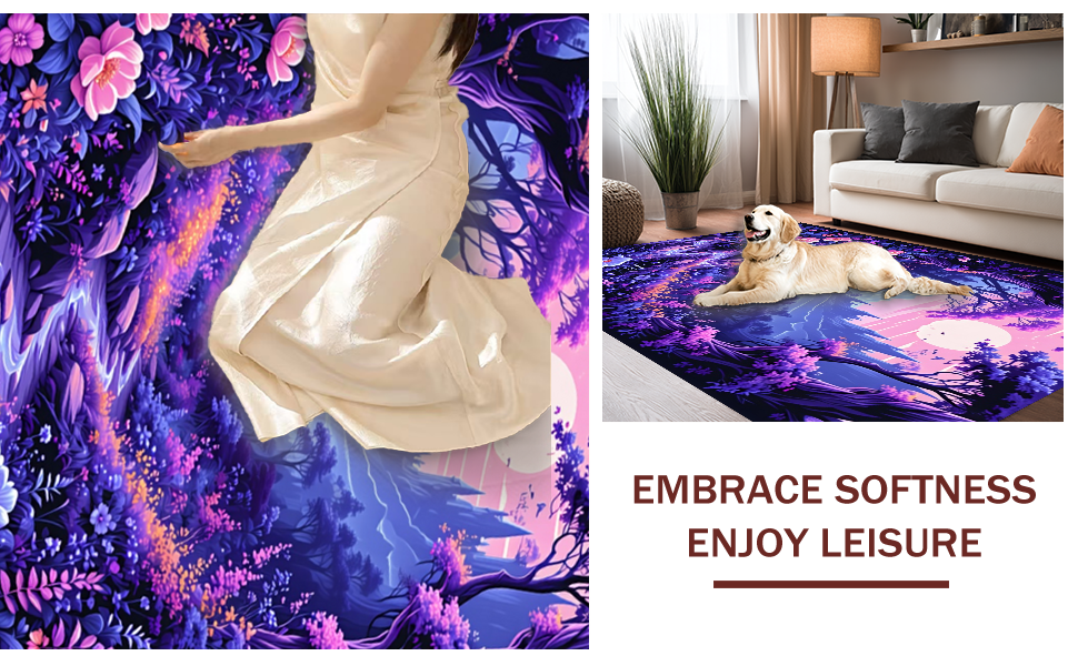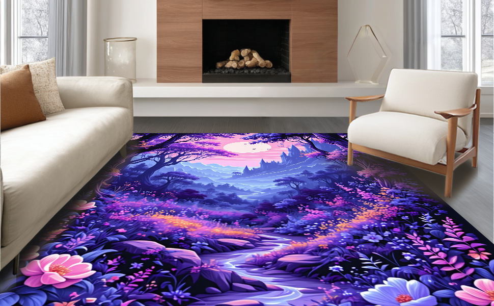 Ultra Soft Area Rug, Non Slip, Stain Resistant, Washable Area Rugs for Living Room, Bedroom, Charming Mythical Landscape Design(Purple) Overview: