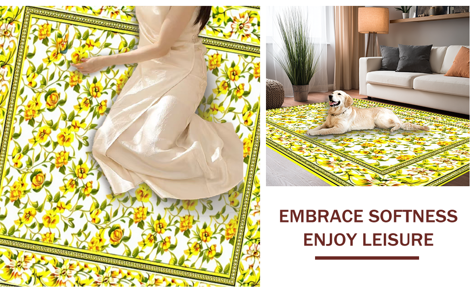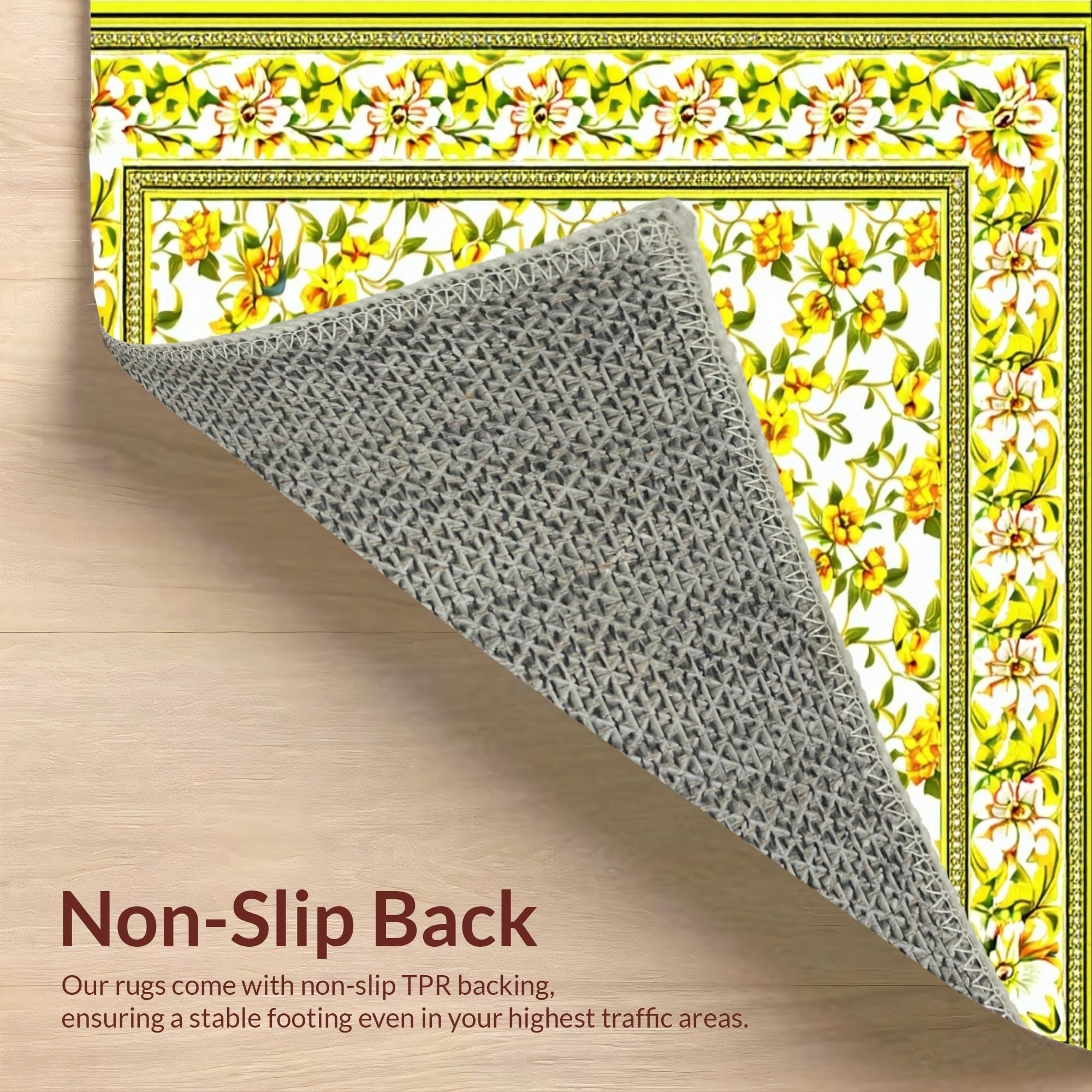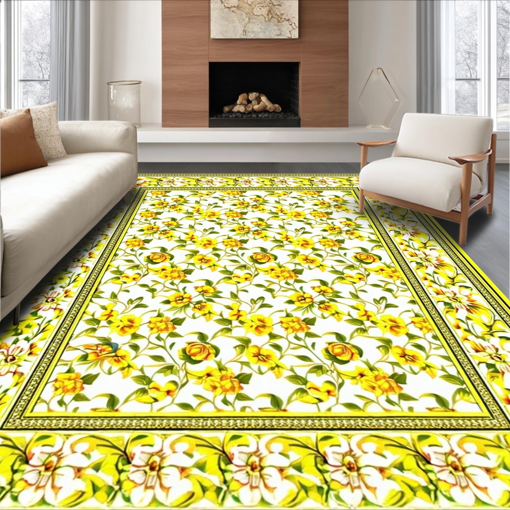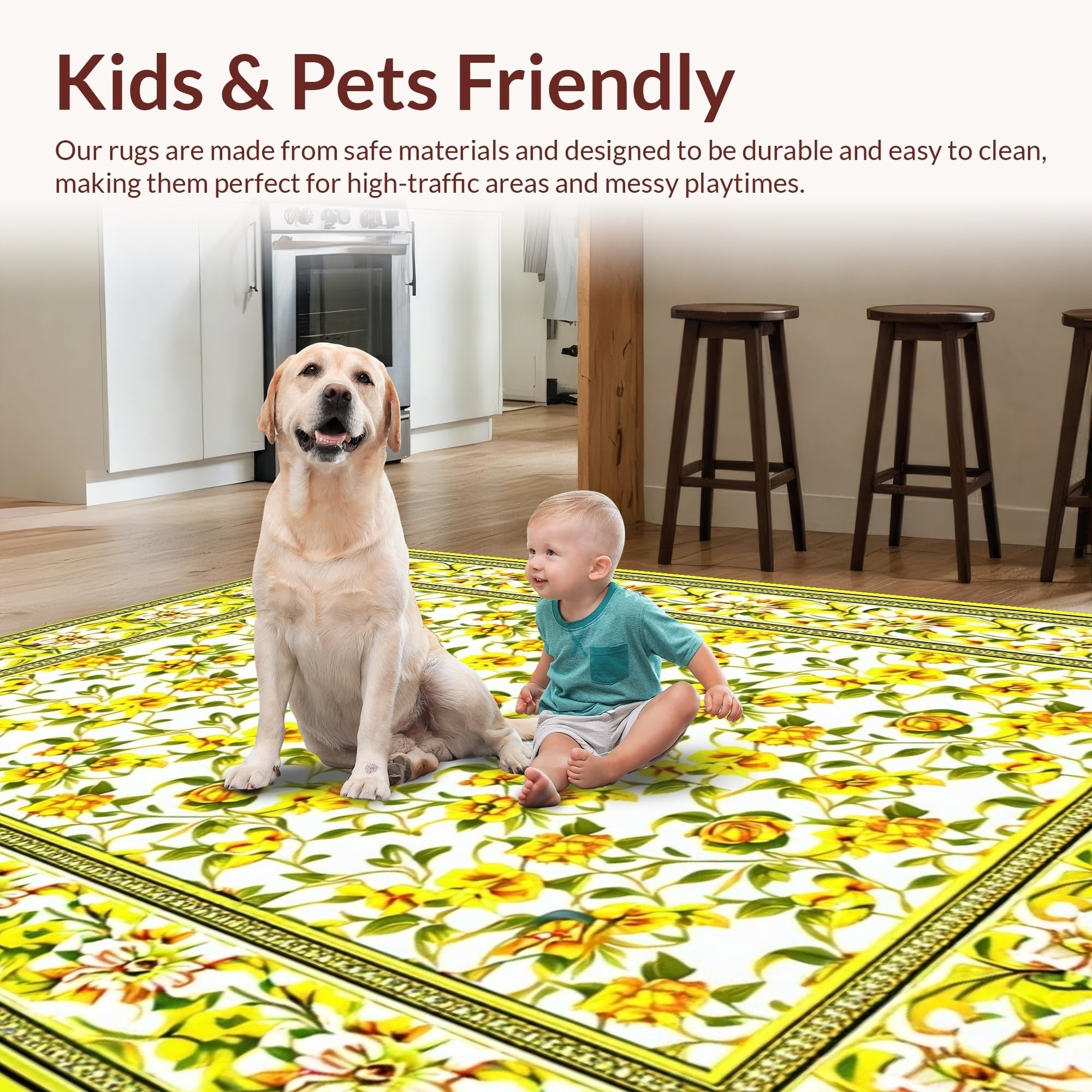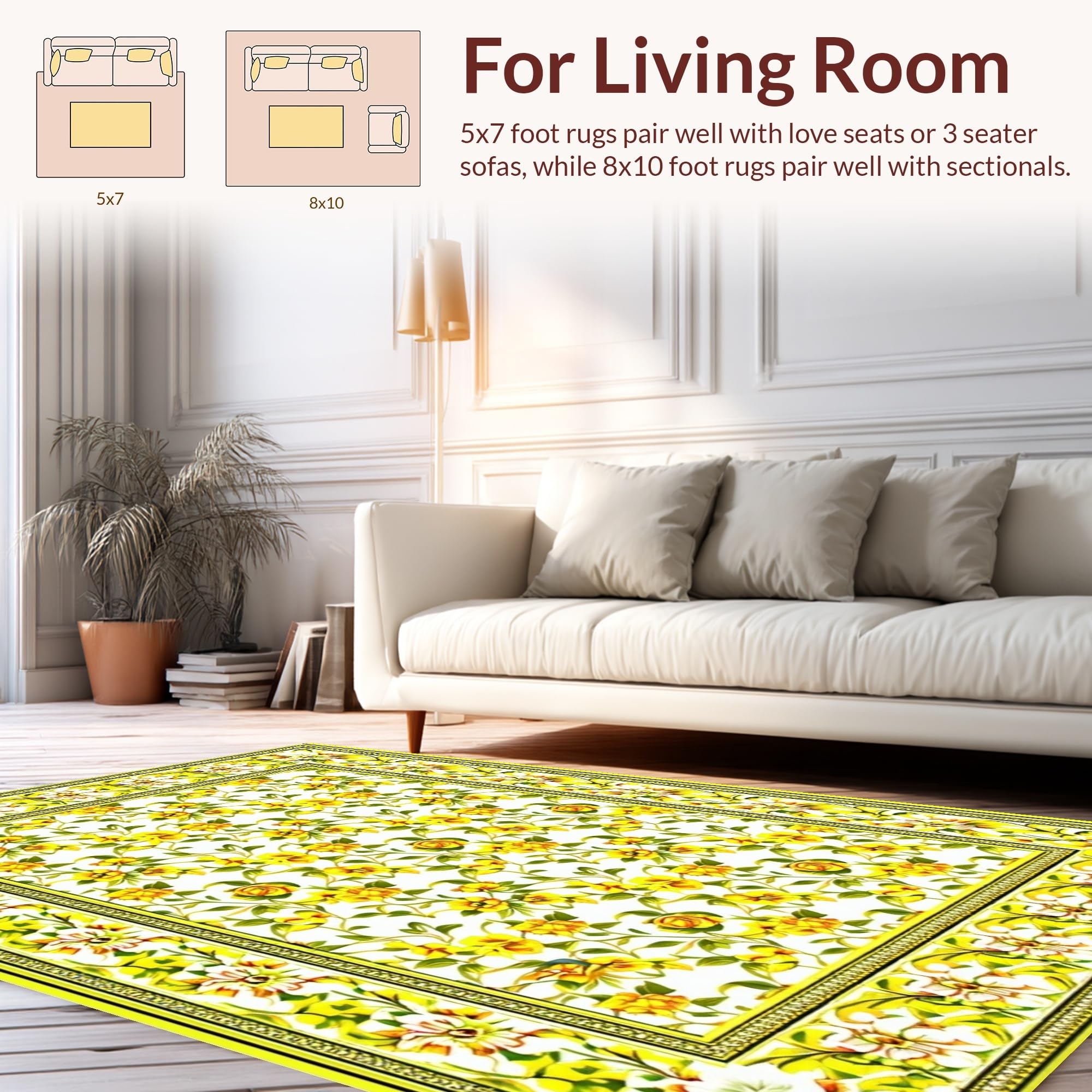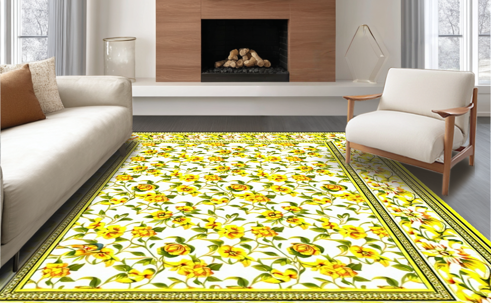 Ultra Soft Area Rug, Non Slip, Stain Resistant, Washable Area Rugs for Living Room, Bedroom, Charming Nature-inspired Border(Yellow) Overview:
