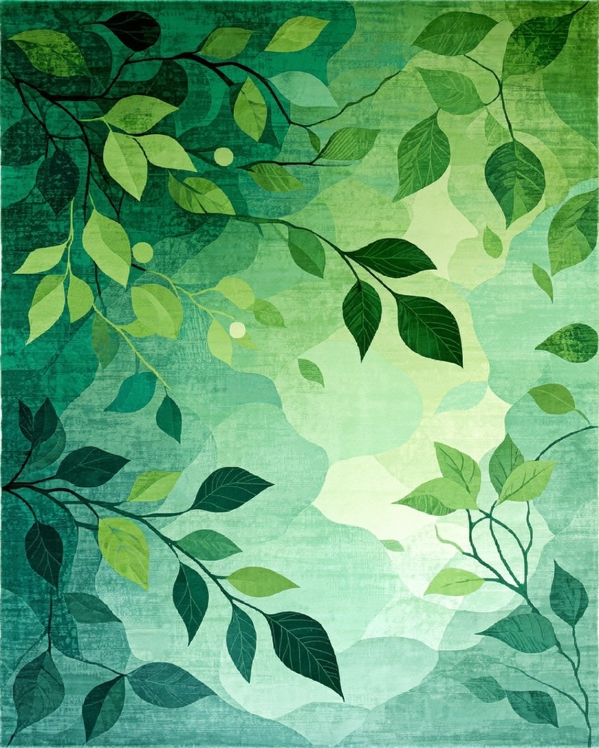 Charming Nature Inspired with Abstract Leaf Motifs and Gradient Effects(Green)