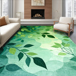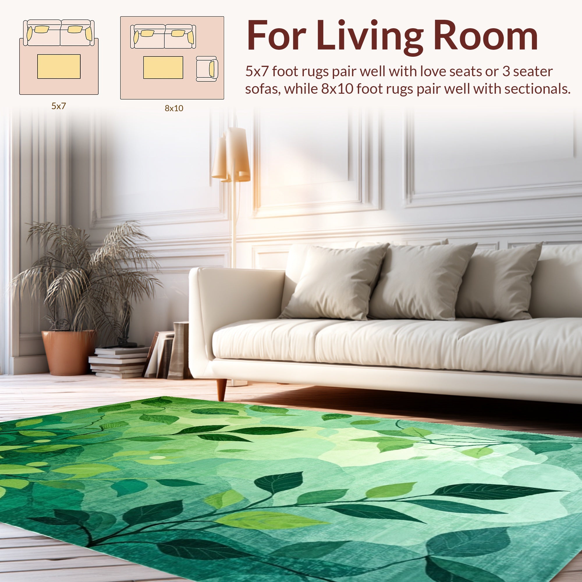 Flatwoven High Traffic Area Rug, Charming Nature Inspired with Abstract Leaf Motifs and Gradient Effects, Non Slip, Stain Resistant, Washable Area Rugs for Living Room, Bedroom (Green) Overview: