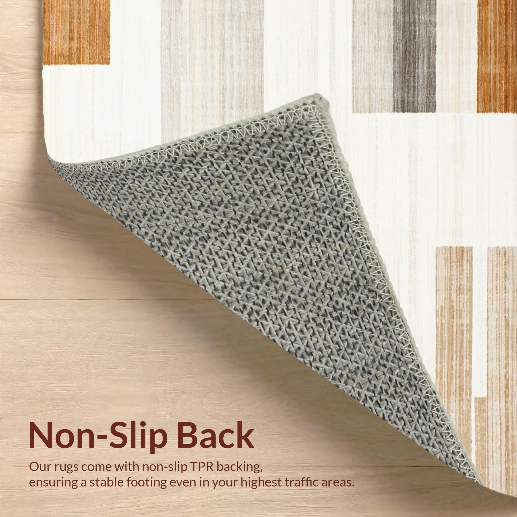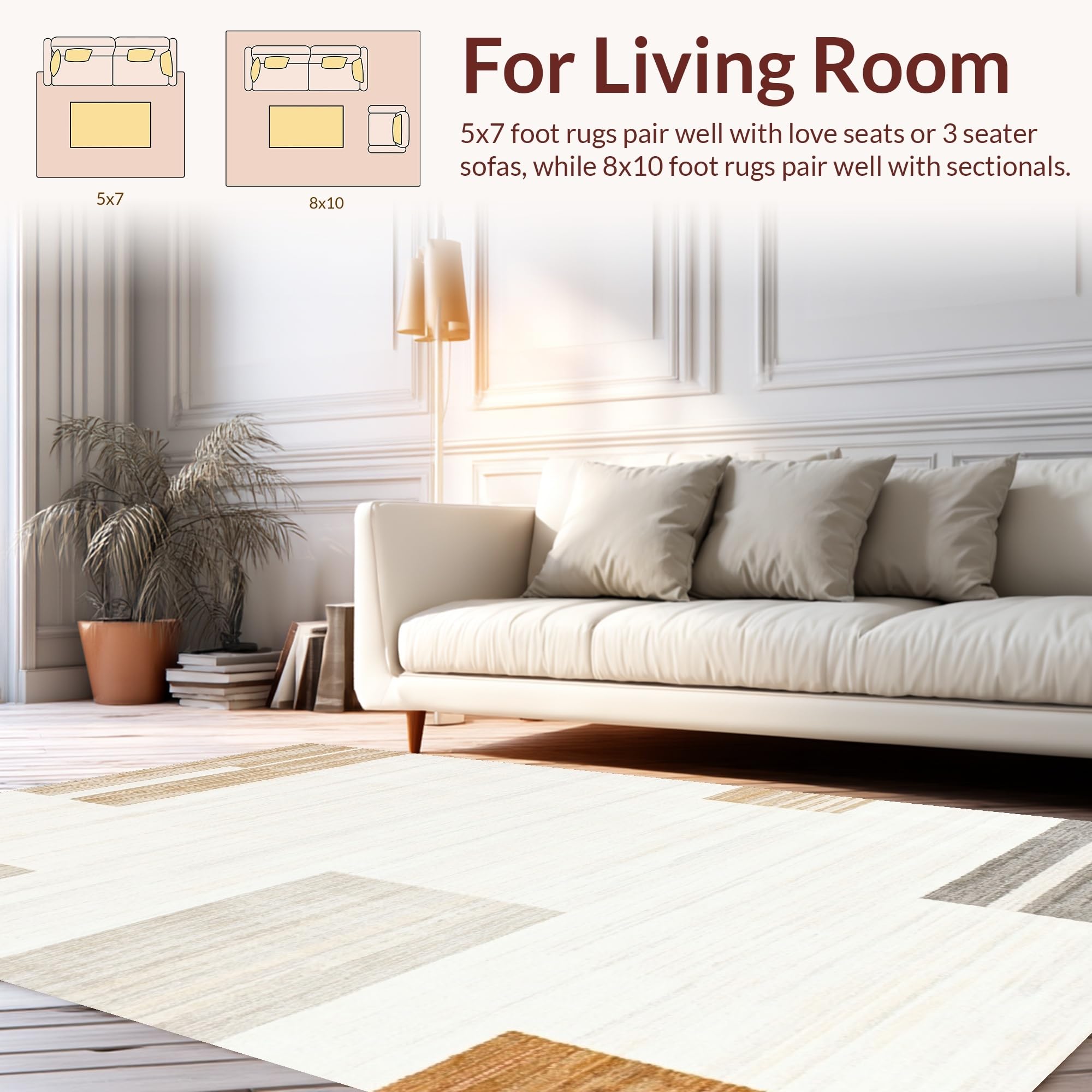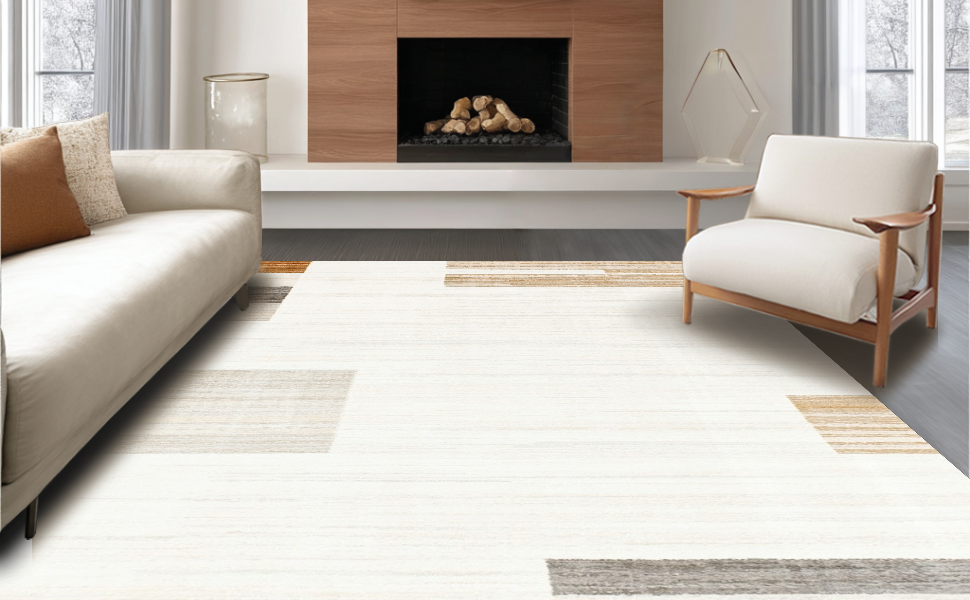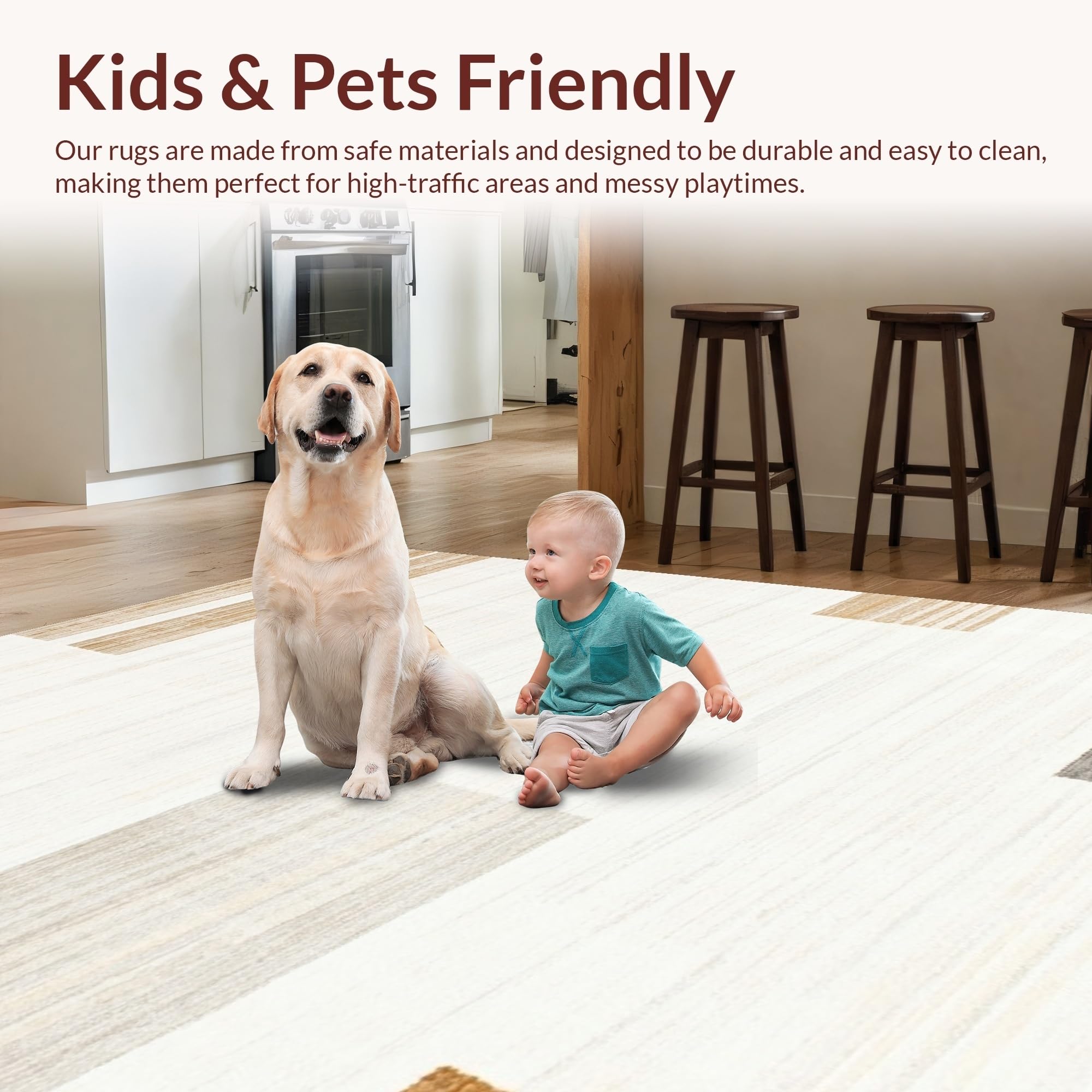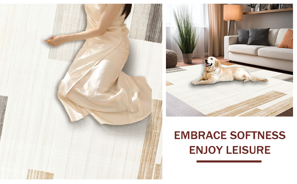 Ultra Soft Area Rug, Non Slip, Stain Resistant, Washable Area Rugs for Living Room, Bedroom, Charming Neutral Artistic Motif(Beige) Overview: