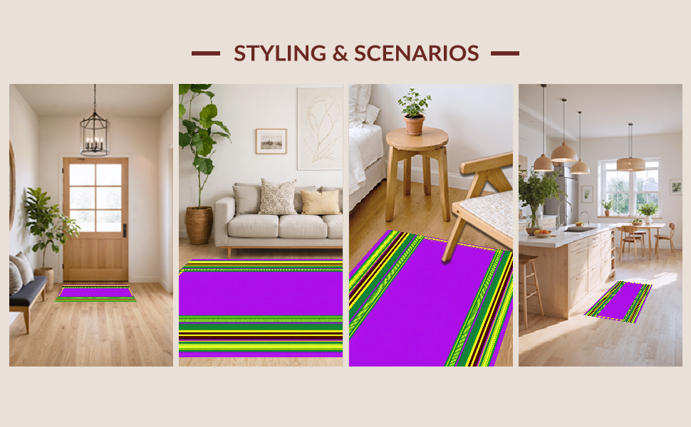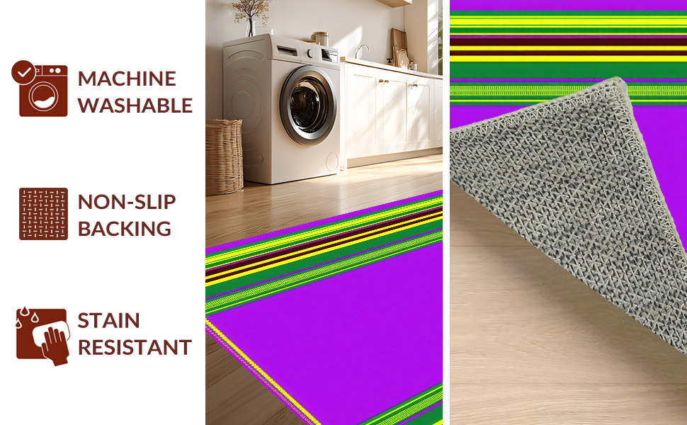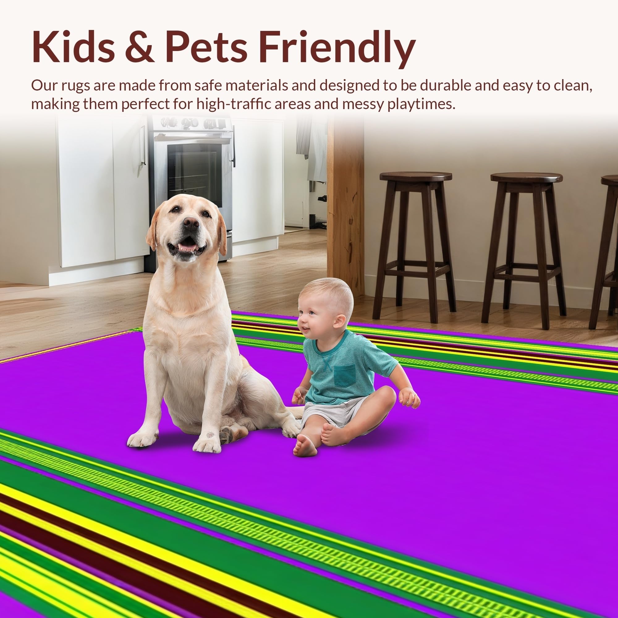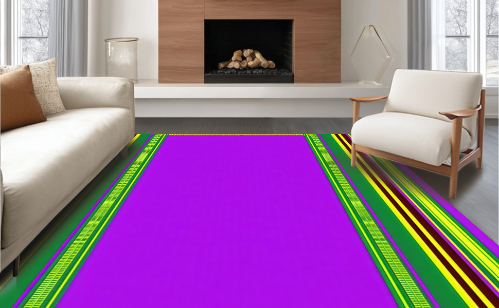 Ultra Soft Area Rug, Non Slip, Stain Resistant, Washable Area Rugs for Living Room, Bedroom, Charming New Orleans Celebration Look(Purple) Overview: