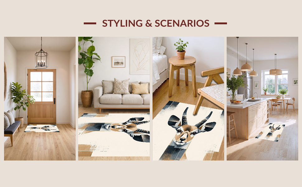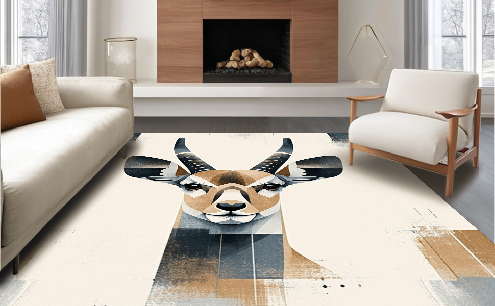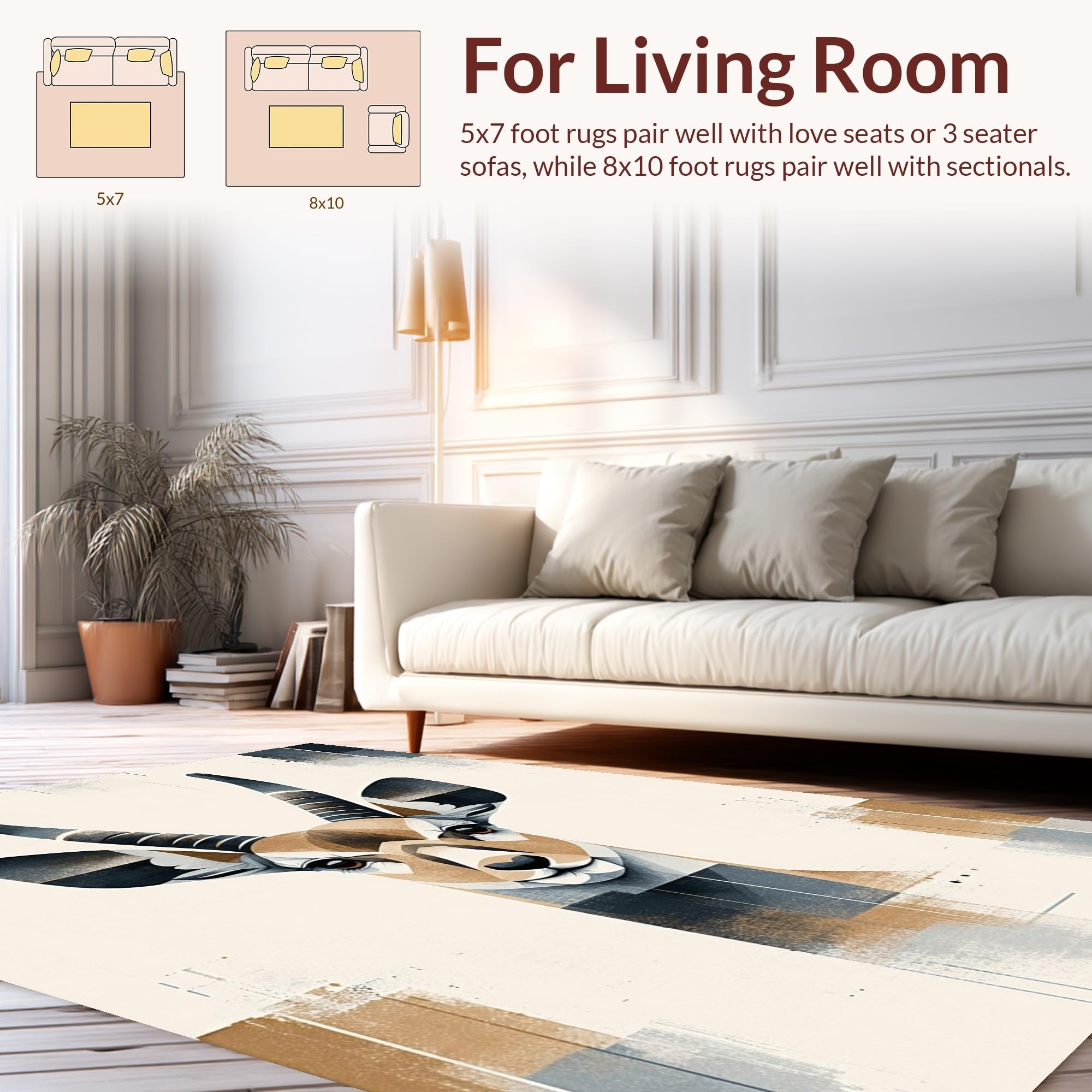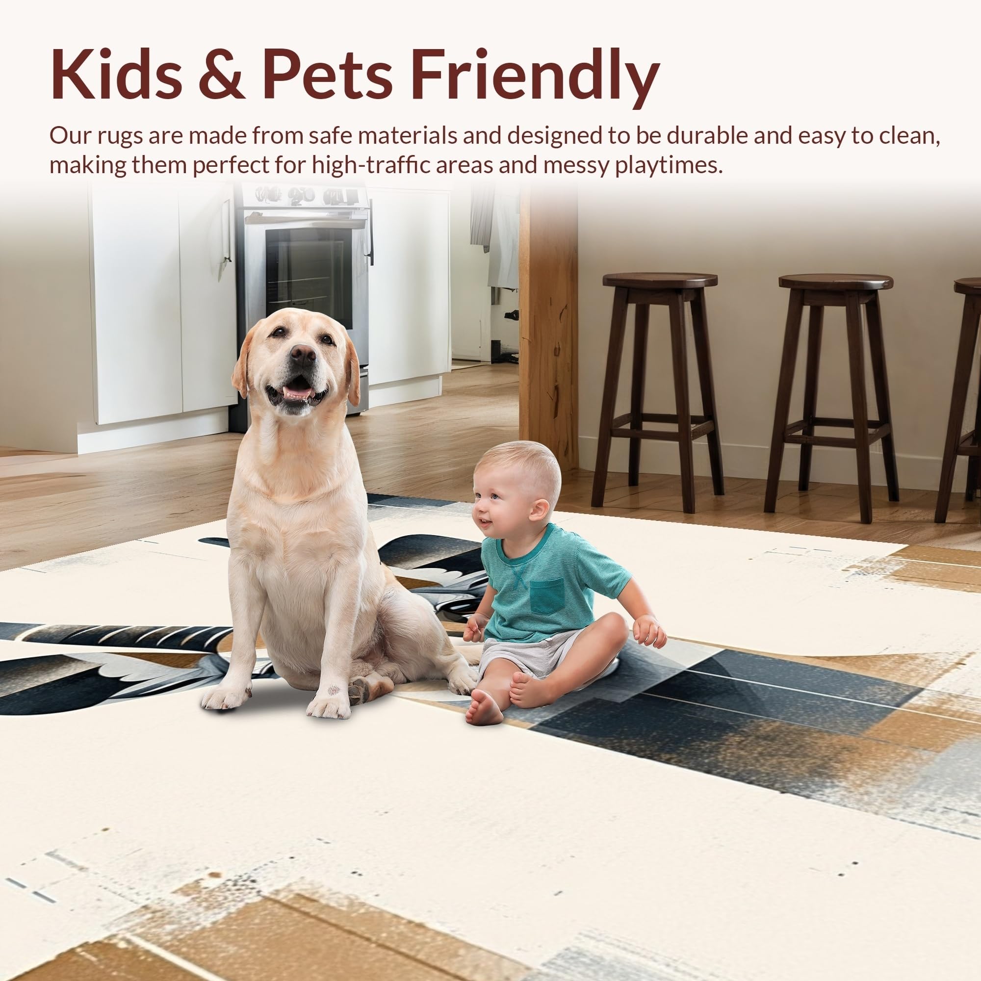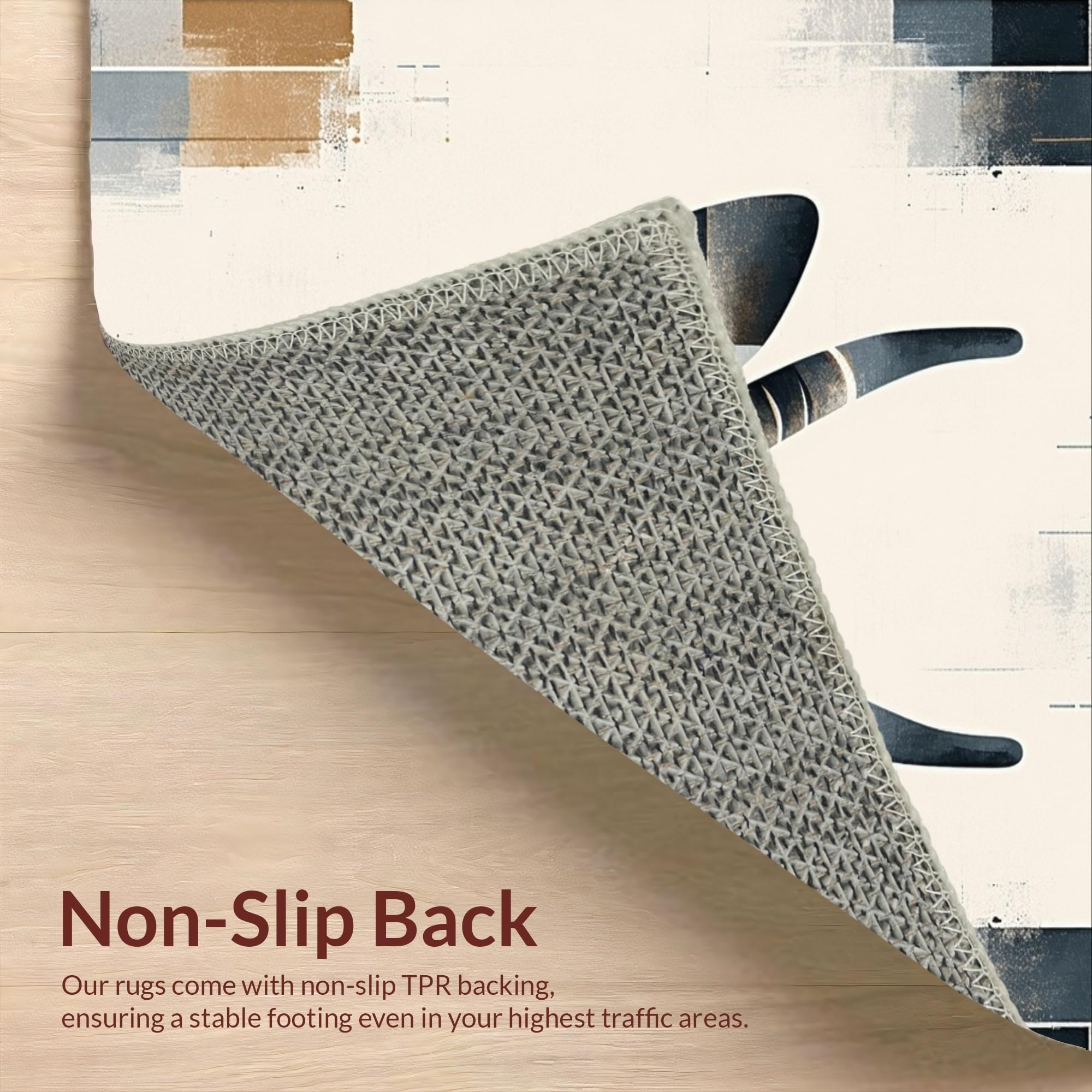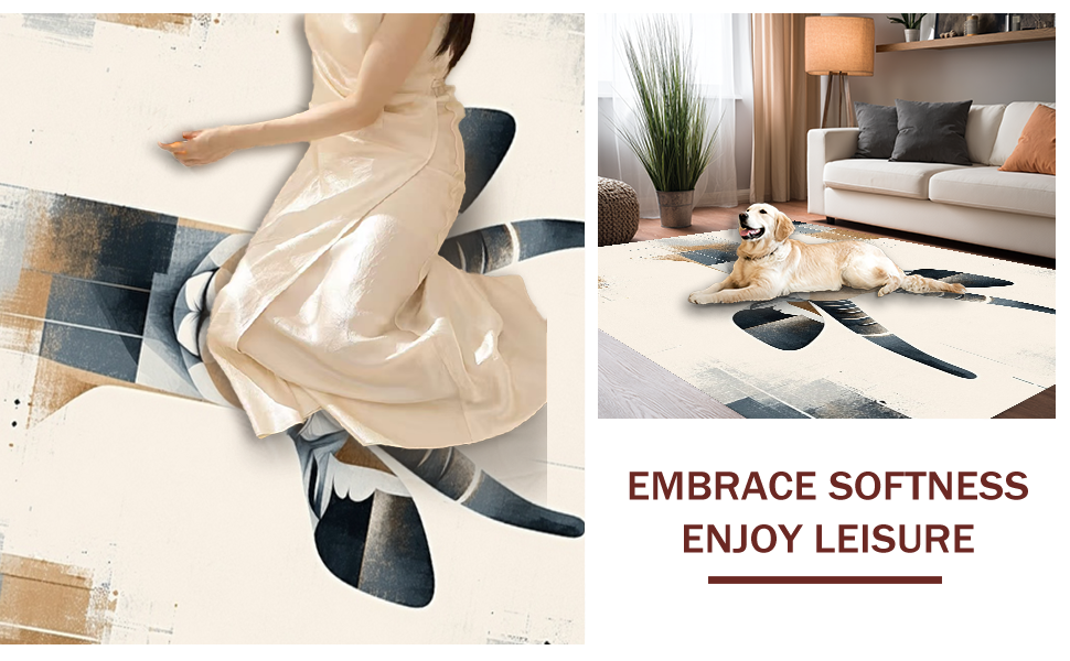 Ultra Soft Area Rug, Non Slip, Stain Resistant, Washable Area Rugs for Living Room, Bedroom, Charming Organic Print Inspiration(Beige) Overview: