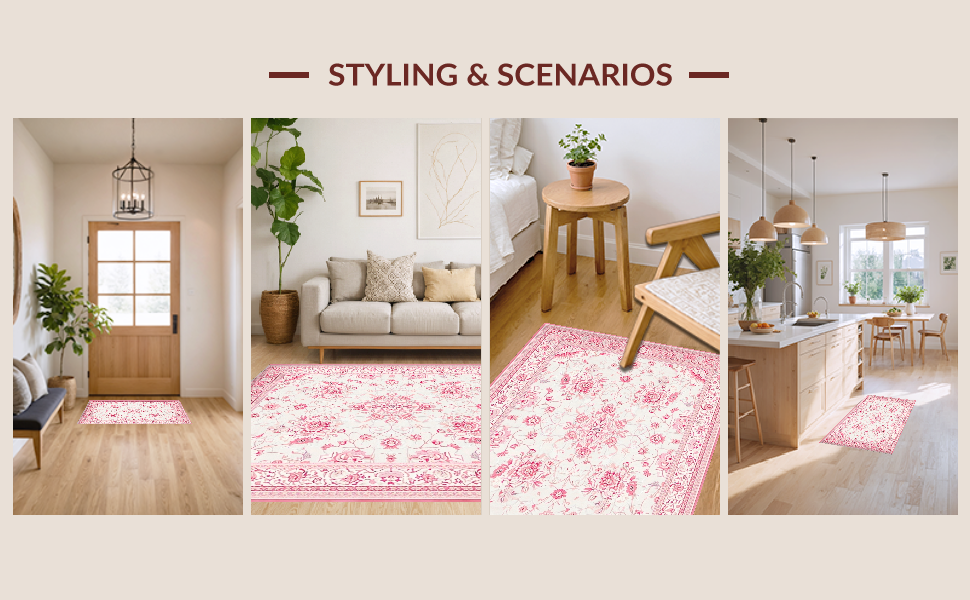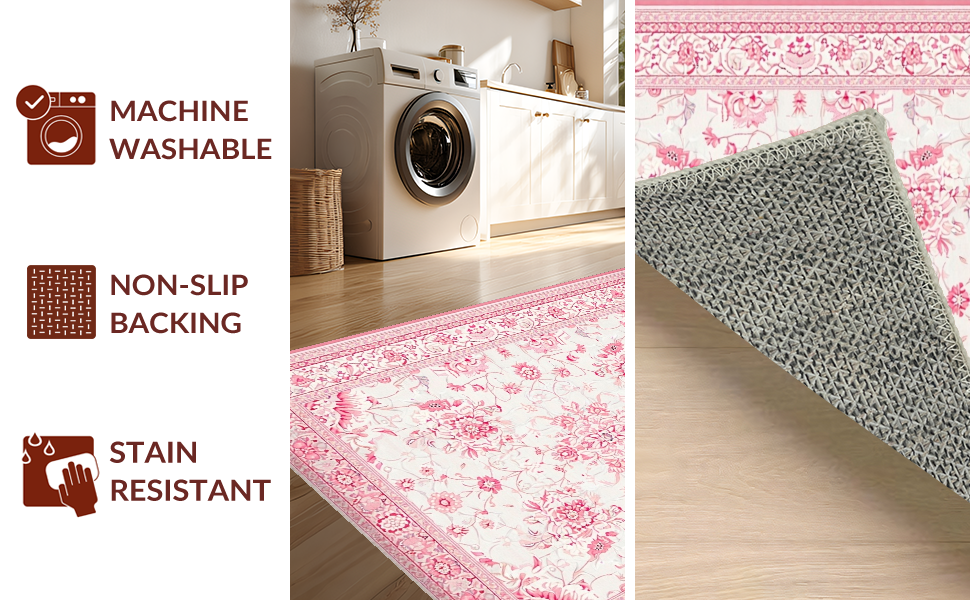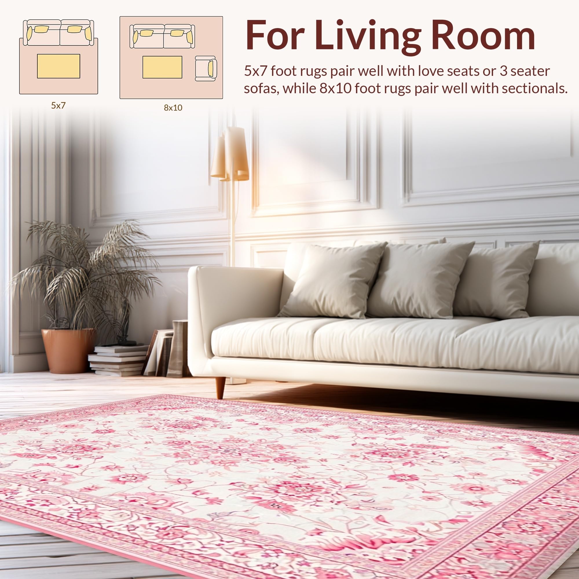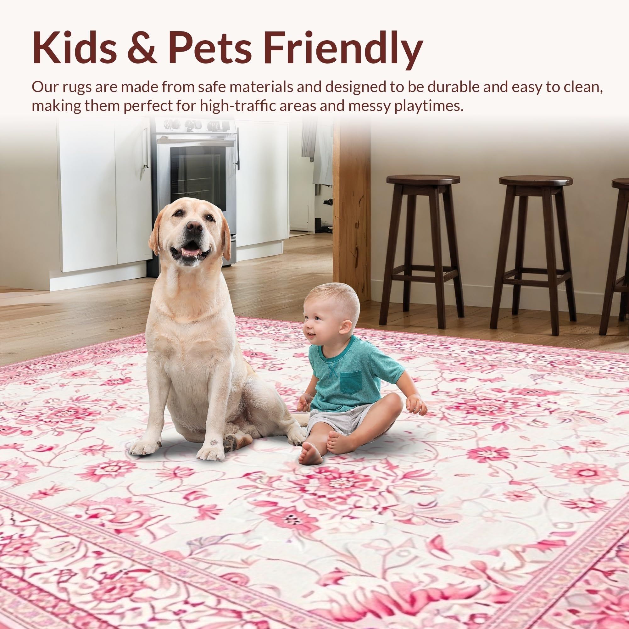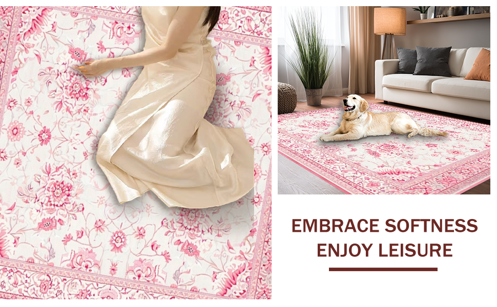 Ultra Soft Area Rug, Non Slip, Stain Resistant, Washable Area Rugs for Living Room, Bedroom, Charming Pastel Botanical Display(Pink) Overview: