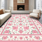 Flatwoven High Traffic Area Rug, Charming Pastel Floral Accents, Non Slip, Stain Resistant, Washable Area Rugs for Living Room, Bedroom (Ivory) Overview: