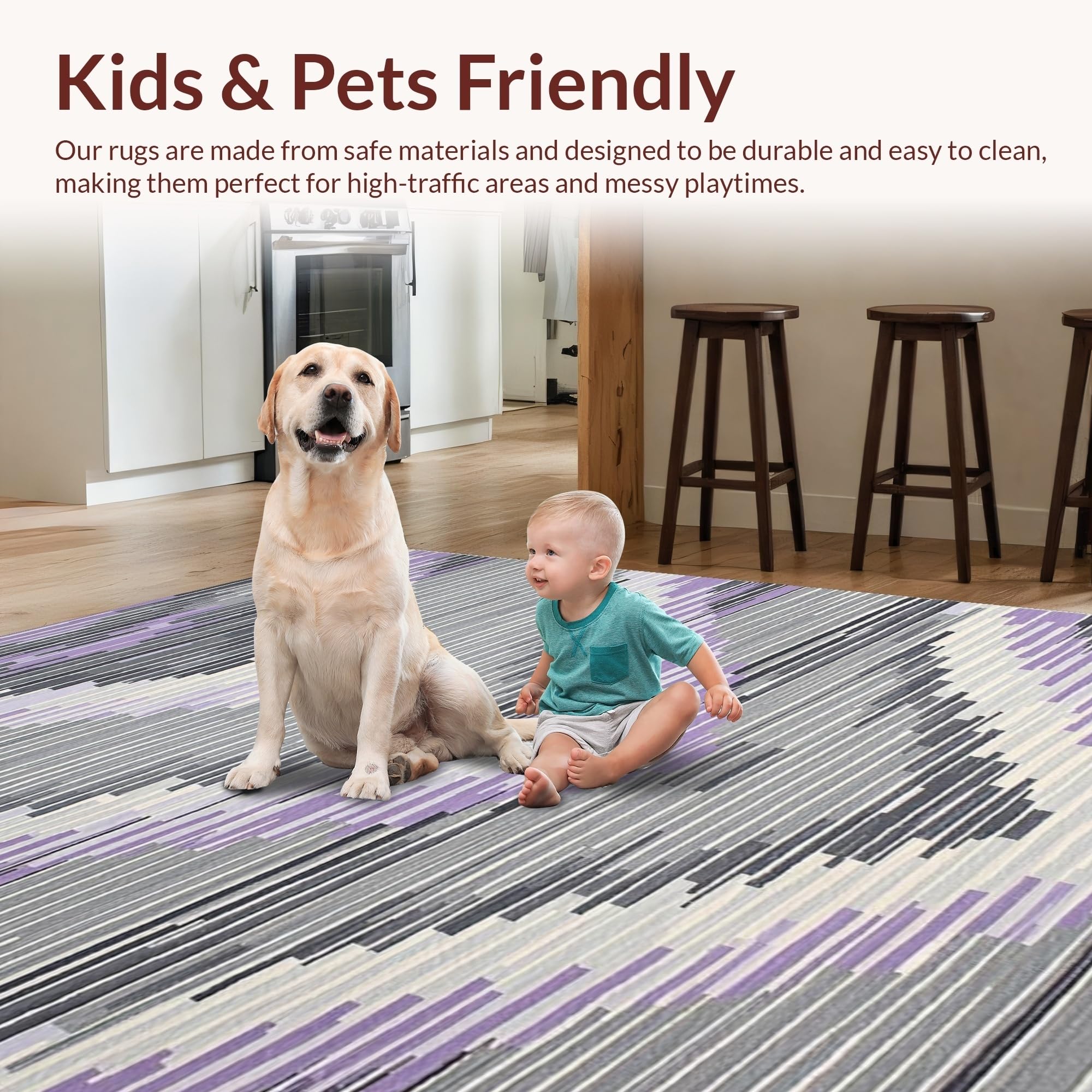 Ultra Soft Area Rug, Non Slip, Stain Resistant, Washable Area Rugs for Living Room, Bedroom, Charming Pastel Geometric Inspiration(Gray) Overview: