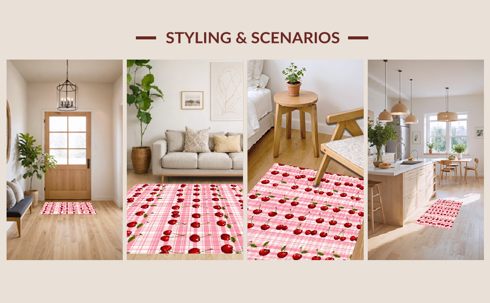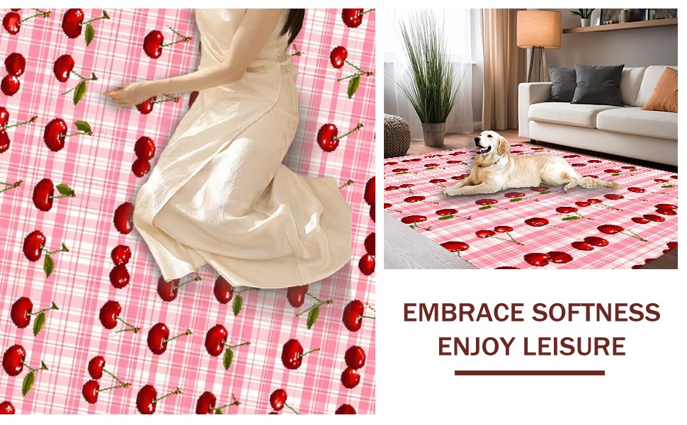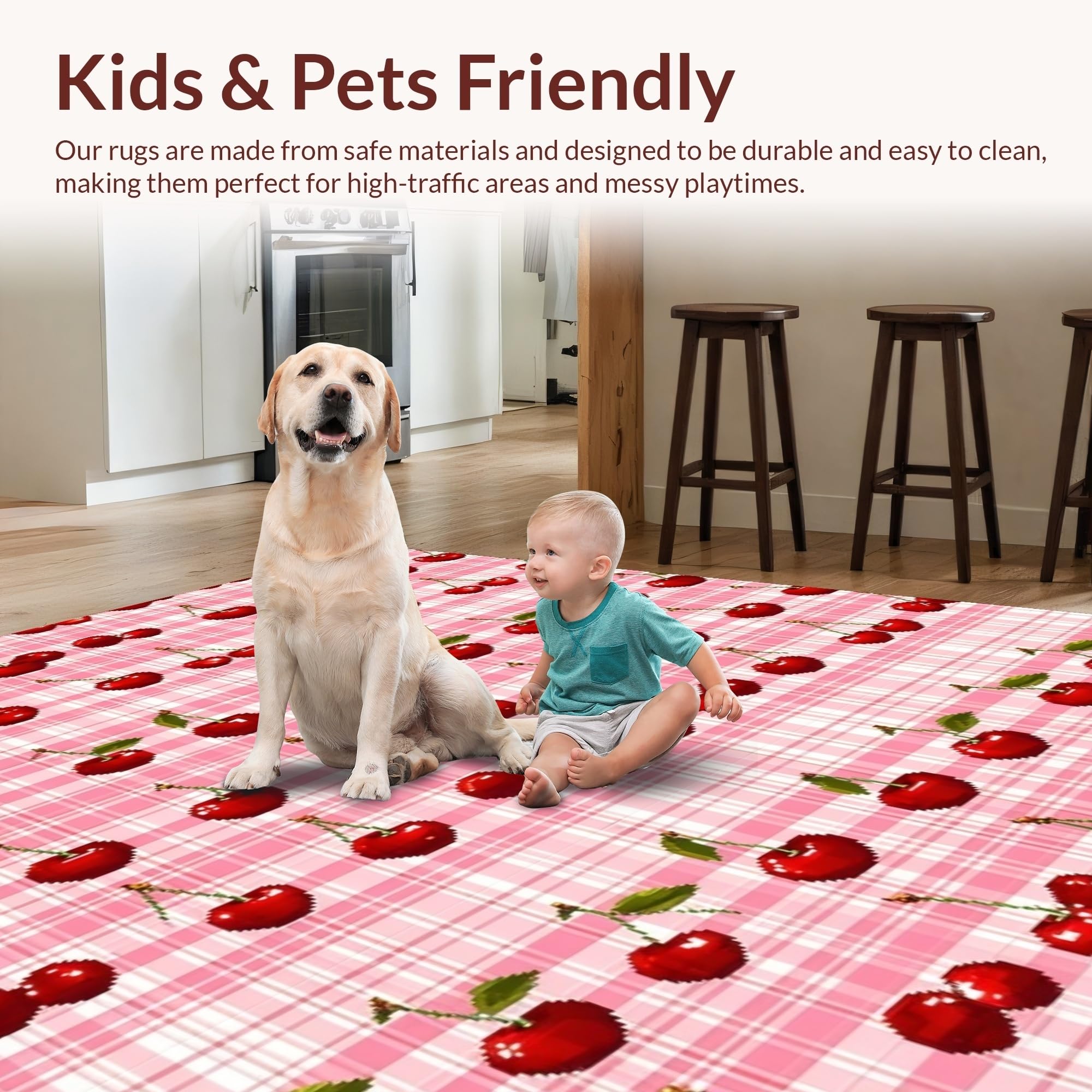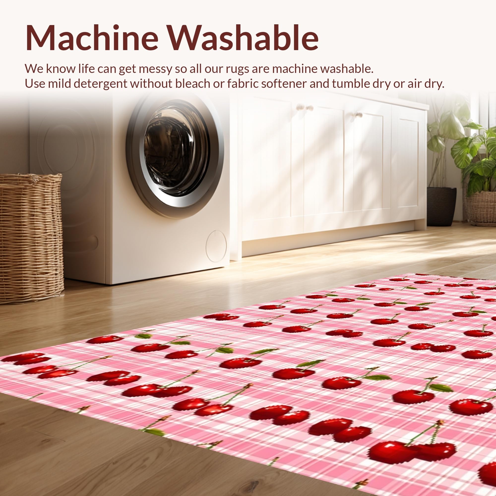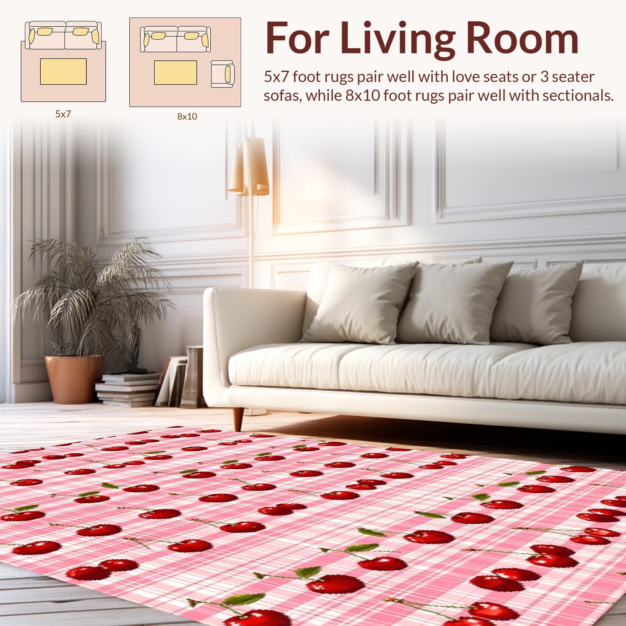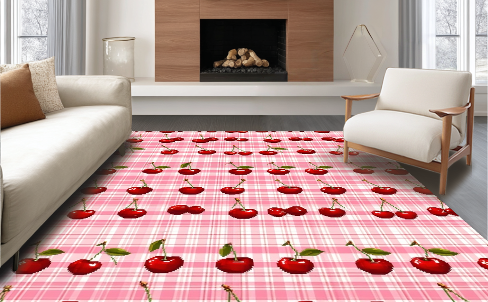 Ultra Soft Area Rug, Non Slip, Stain Resistant, Washable Area Rugs for Living Room, Bedroom, Charming Pink Fruit Aesthetic(Red) Overview: