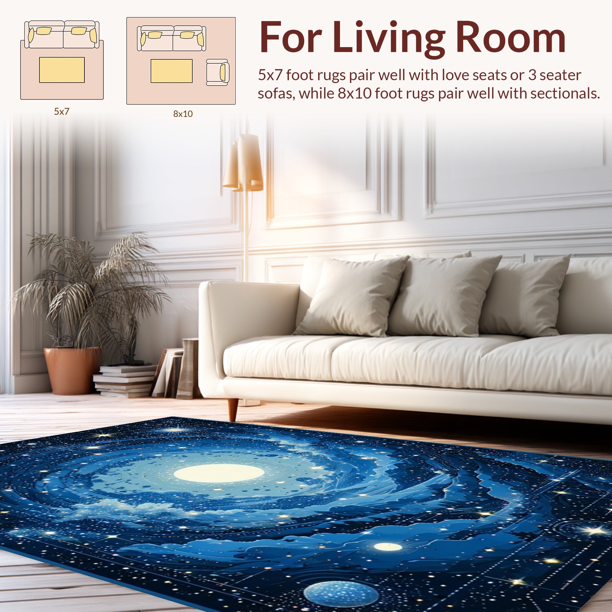 Flatwoven High Traffic Area Rug, Charming Planetary Exploration Vibe, Non Slip, Stain Resistant, Washable Area Rugs for Living Room, Bedroom (Blue) Overview: