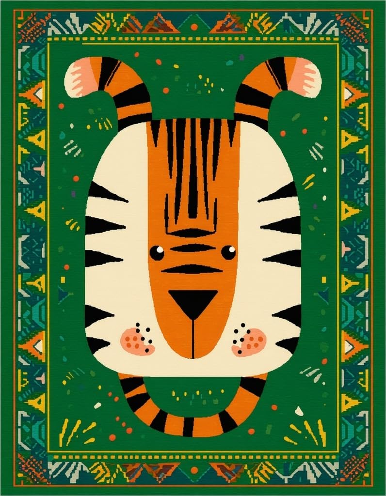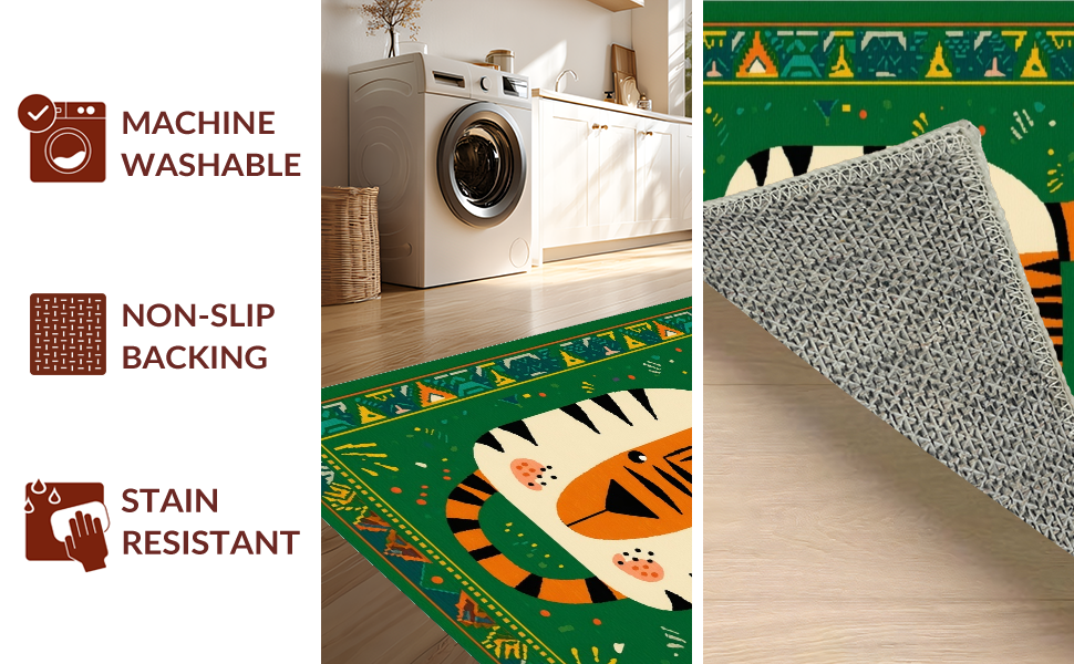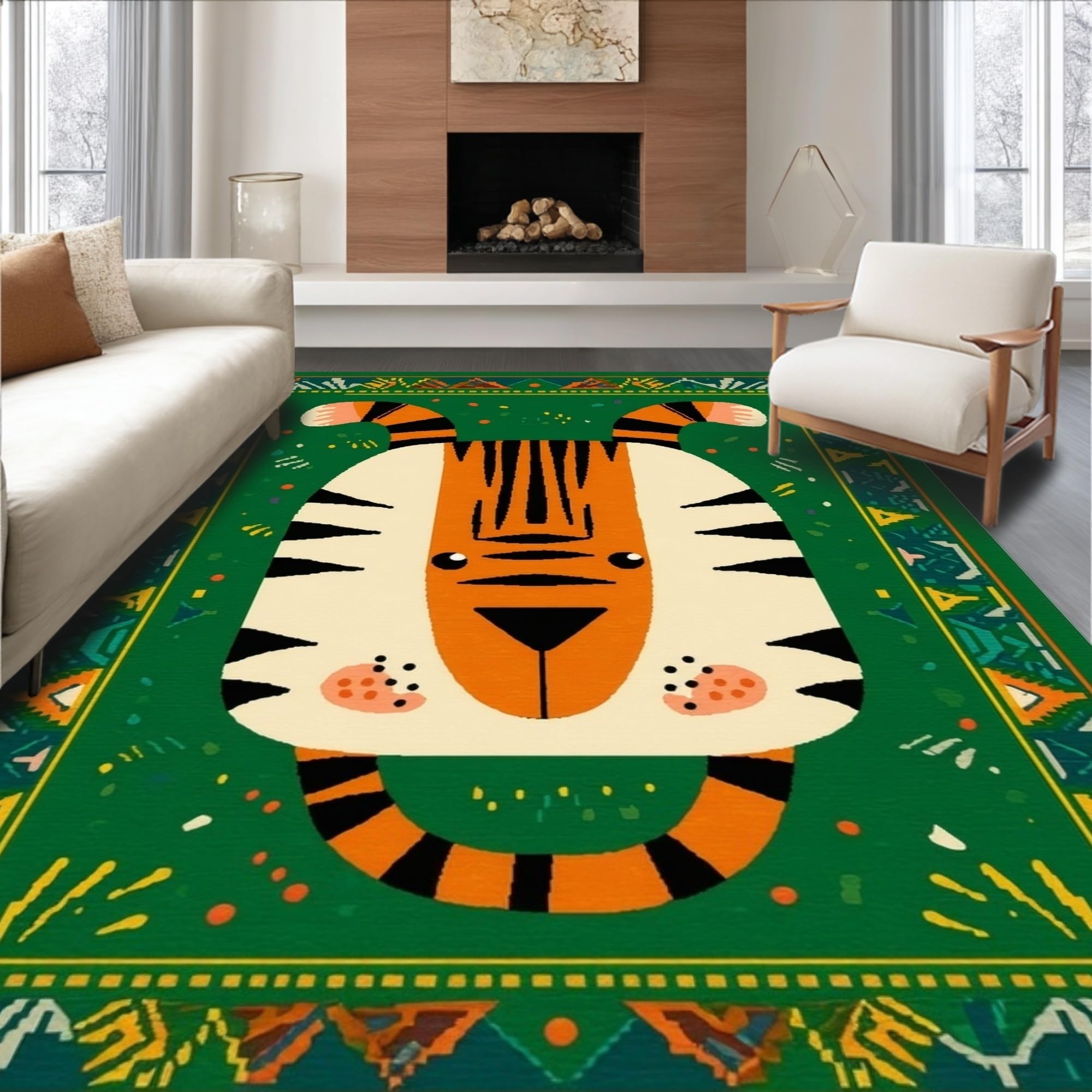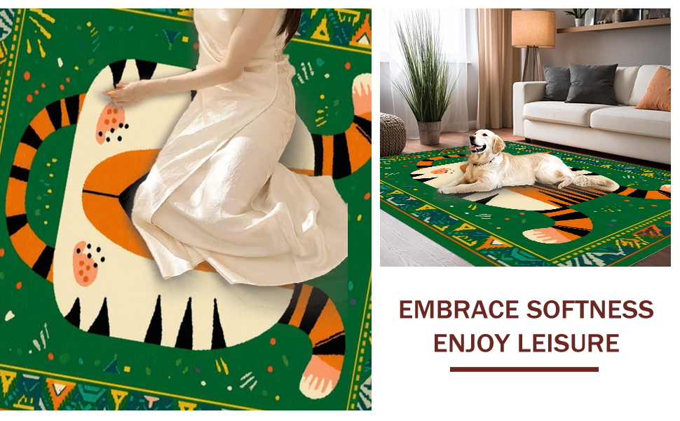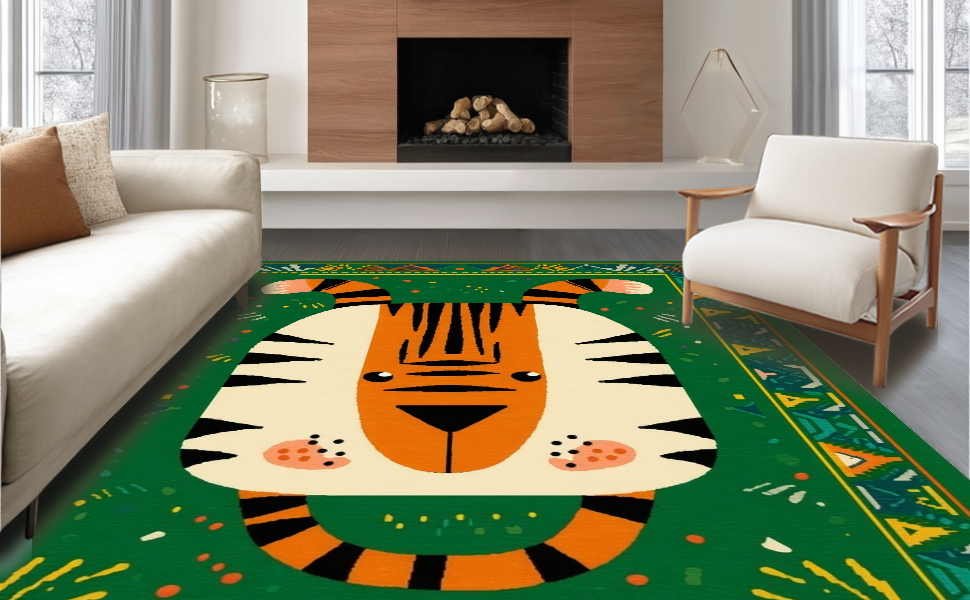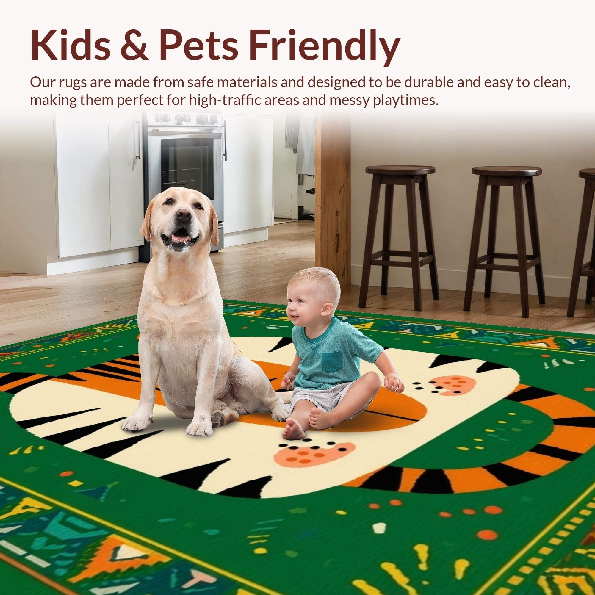 Ultra Soft Area Rug, Non Slip, Stain Resistant, Washable Area Rugs for Living Room, Bedroom, Charming Playful Creature Motif(Green) Overview: