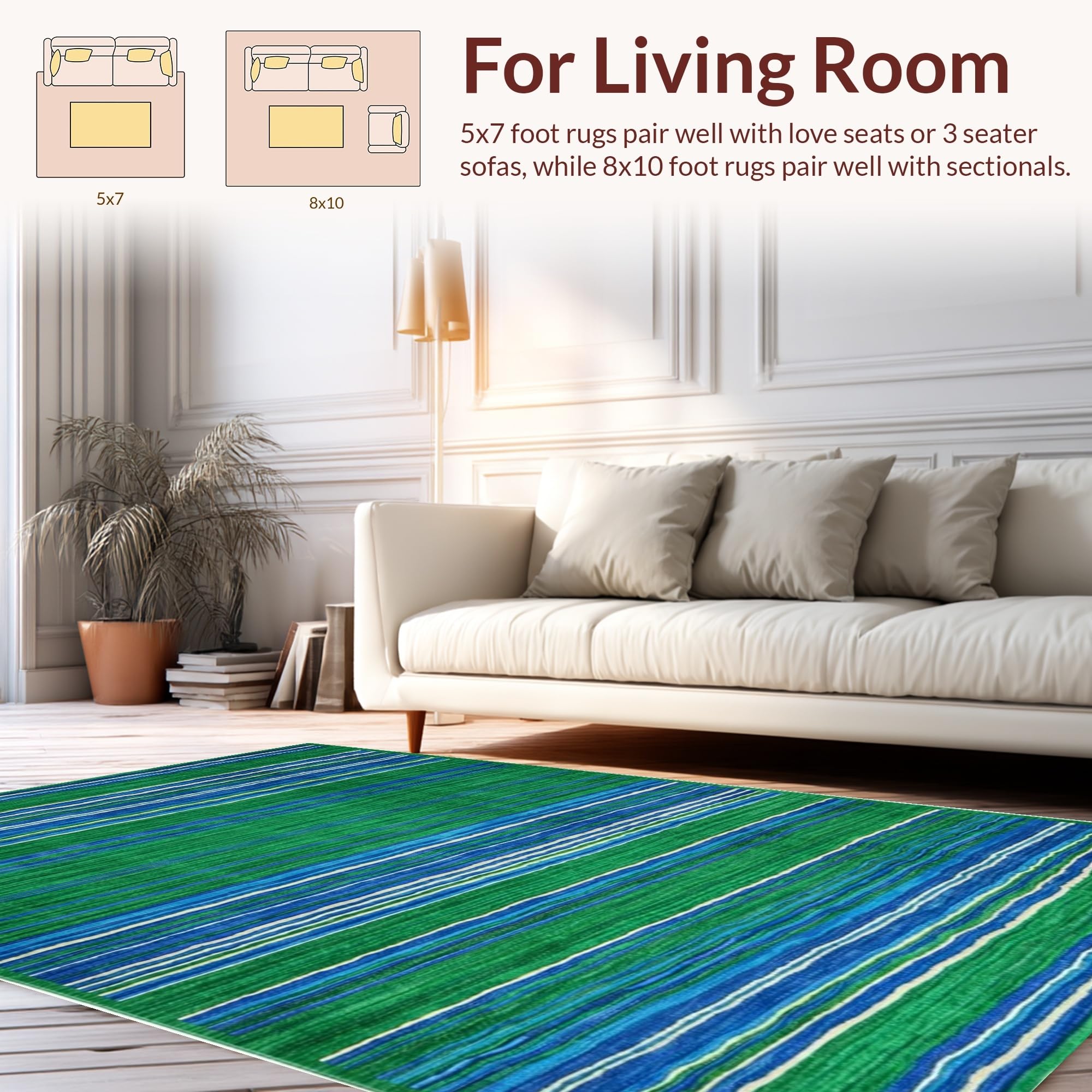 Ultra Soft Area Rug, Non Slip, Stain Resistant, Washable Area Rugs for Living Room, Bedroom, Charming Playful Fishing Pattern(Green) Overview: