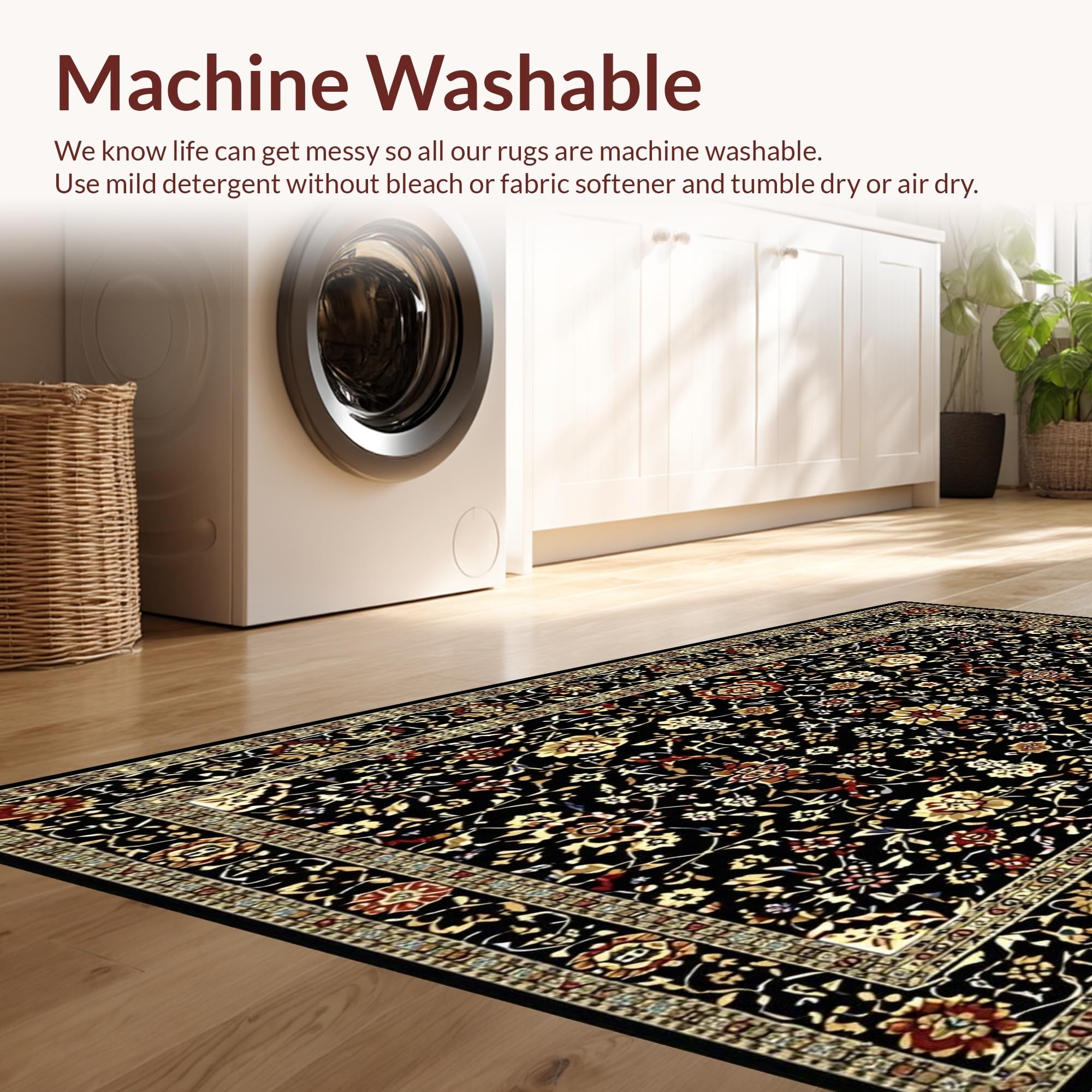 - Machine Washable: Our rugs can be easily thrown in the wash machine.
