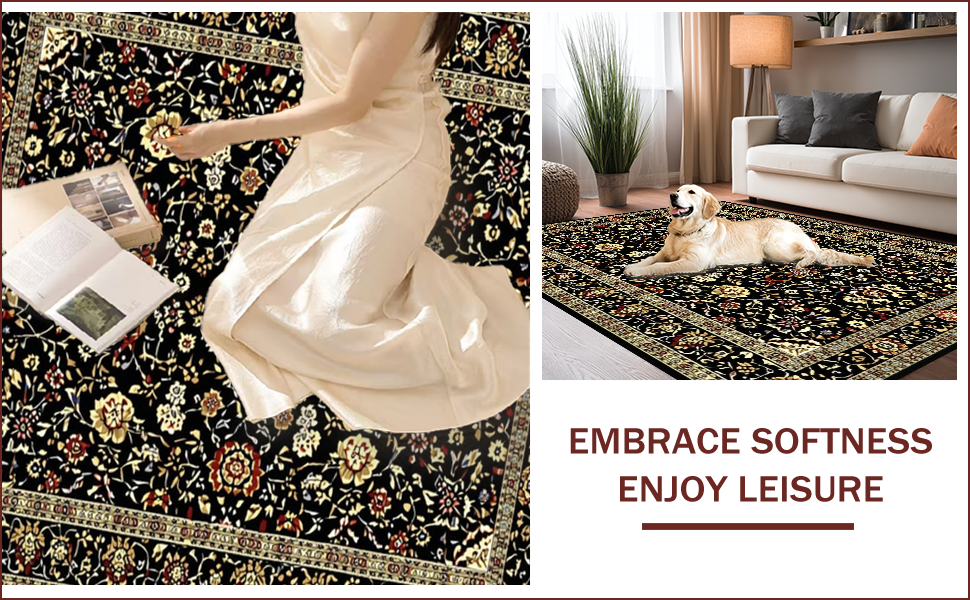 Ultra Soft Area Rug, Non Slip, Stain Resistant, Washable Area Rugs for Living Room, Bedroom, Charming Rustic Braided Motif(Black) Overview: